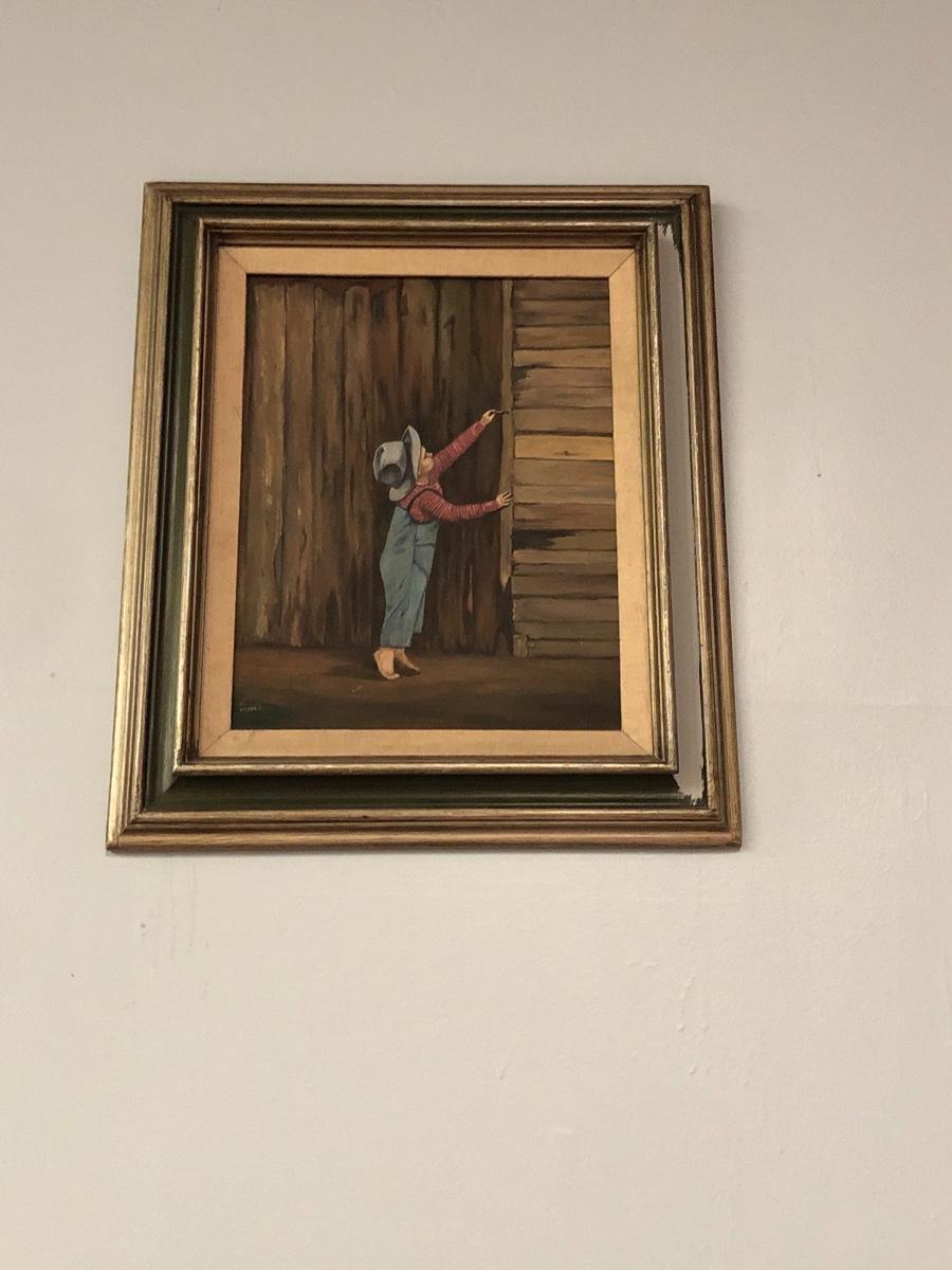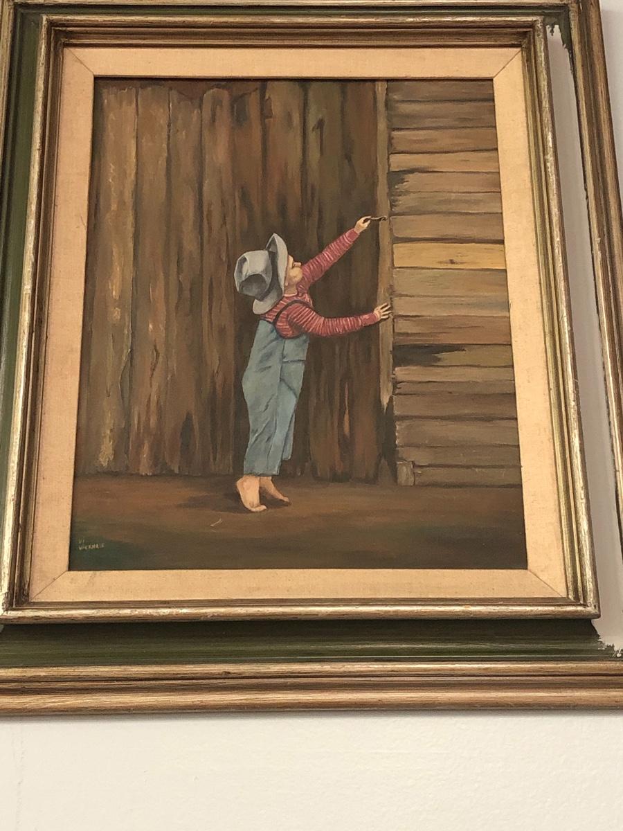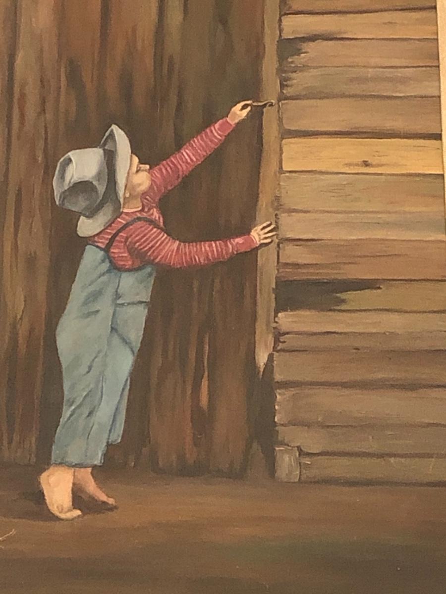 Vintage original art of a boy and a fence