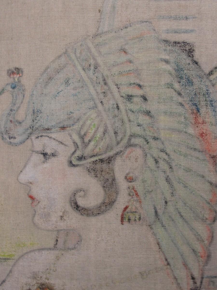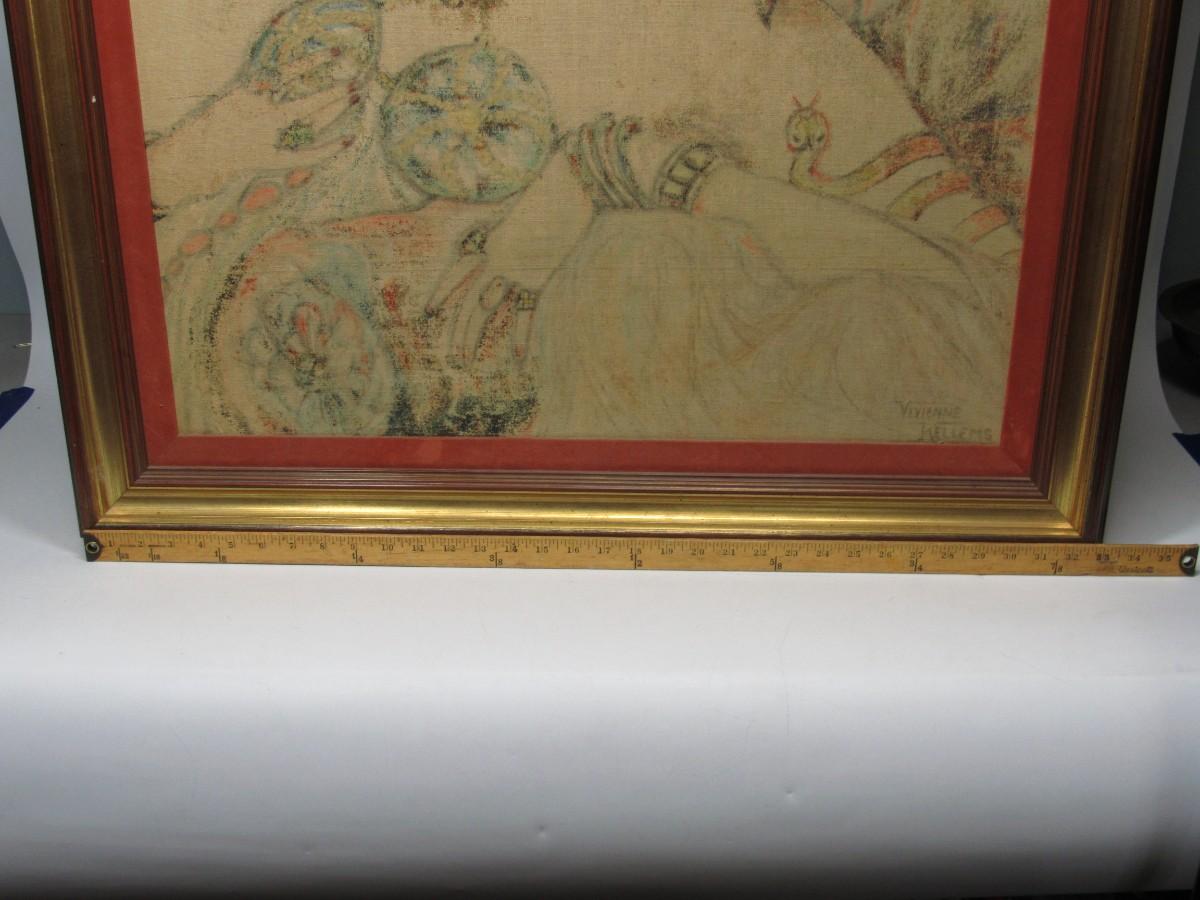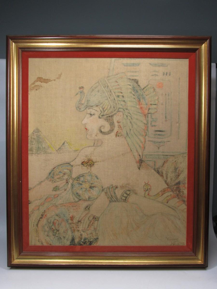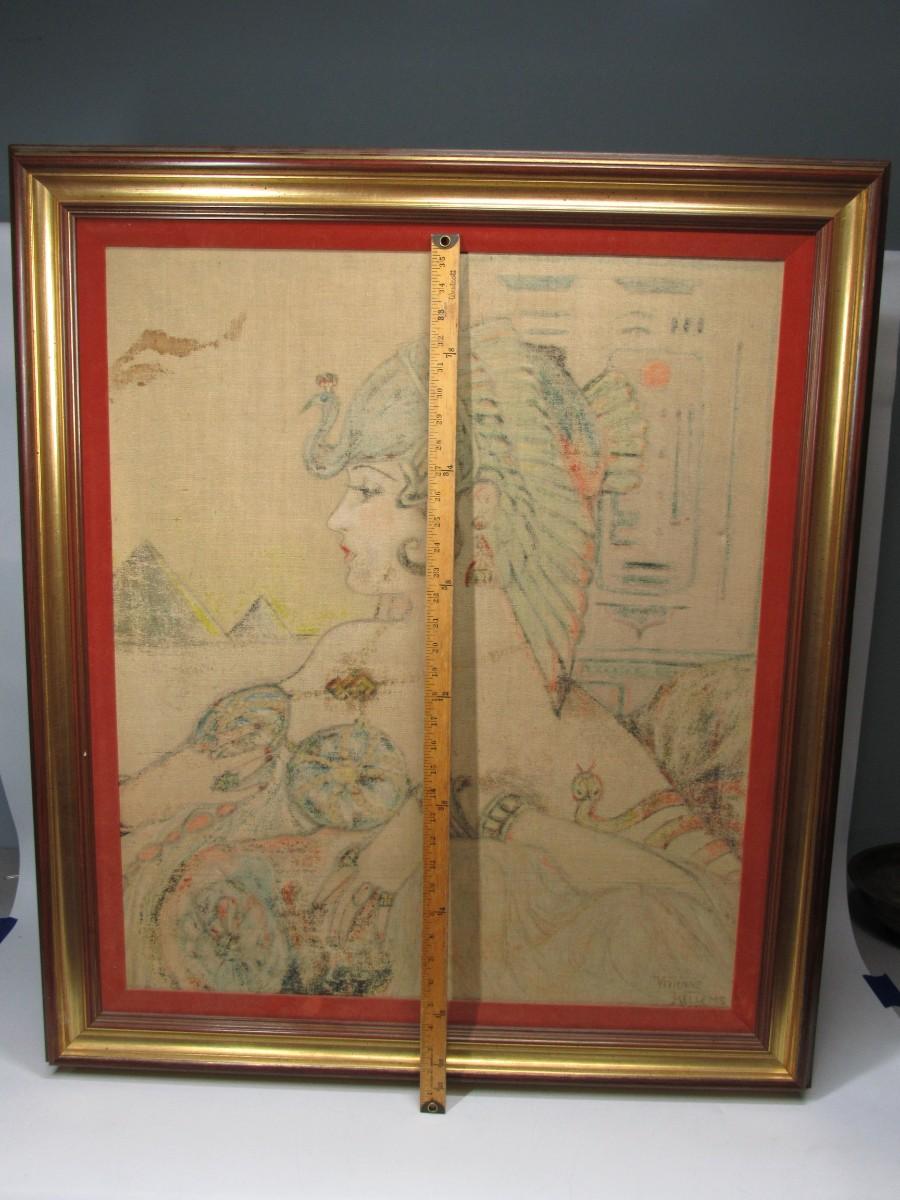 Vintage Original Artwork Art Nouveau Style Egyptian Goddess Faded Framed Painting Signed Vivian Kellem