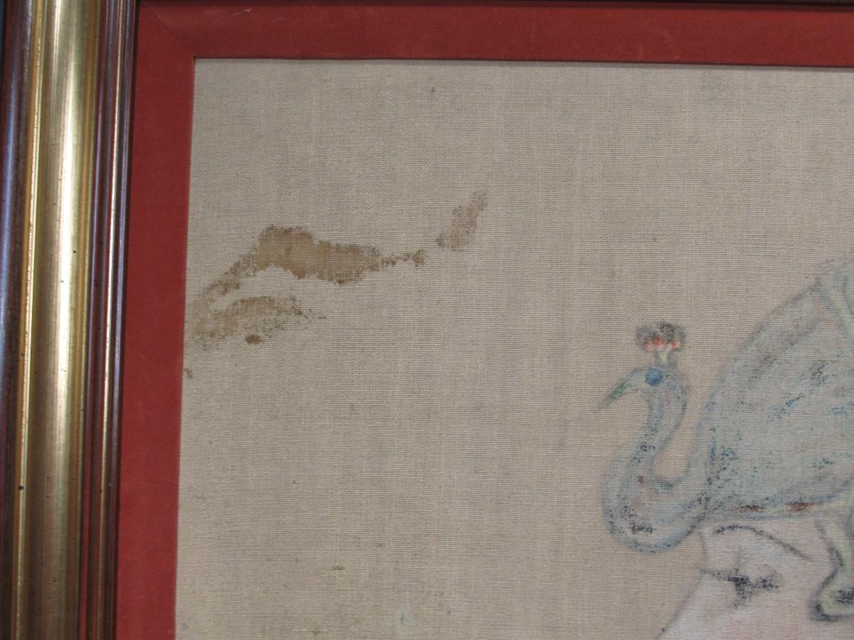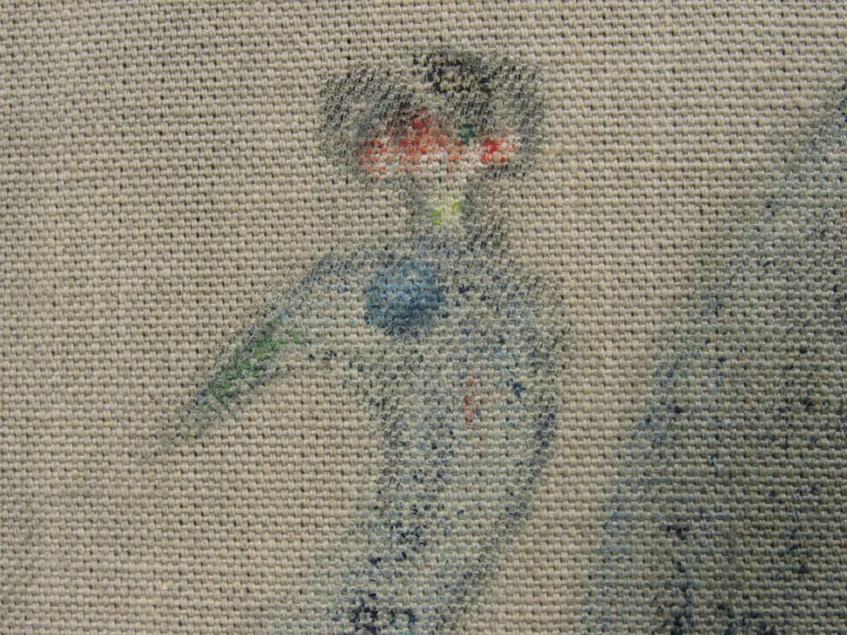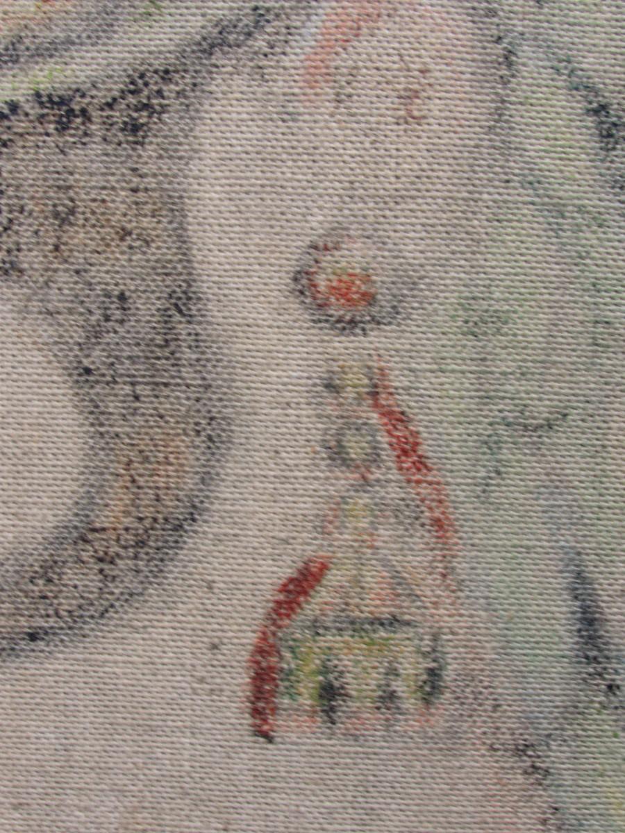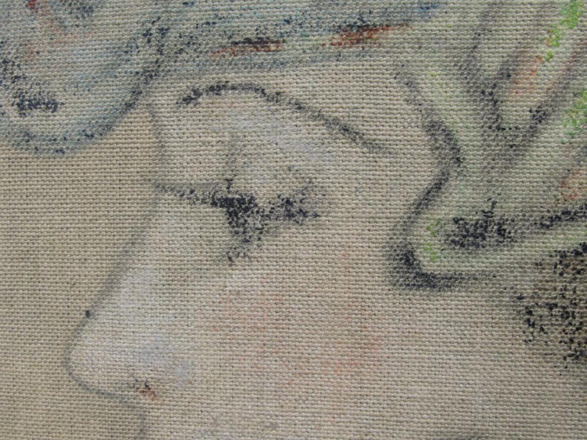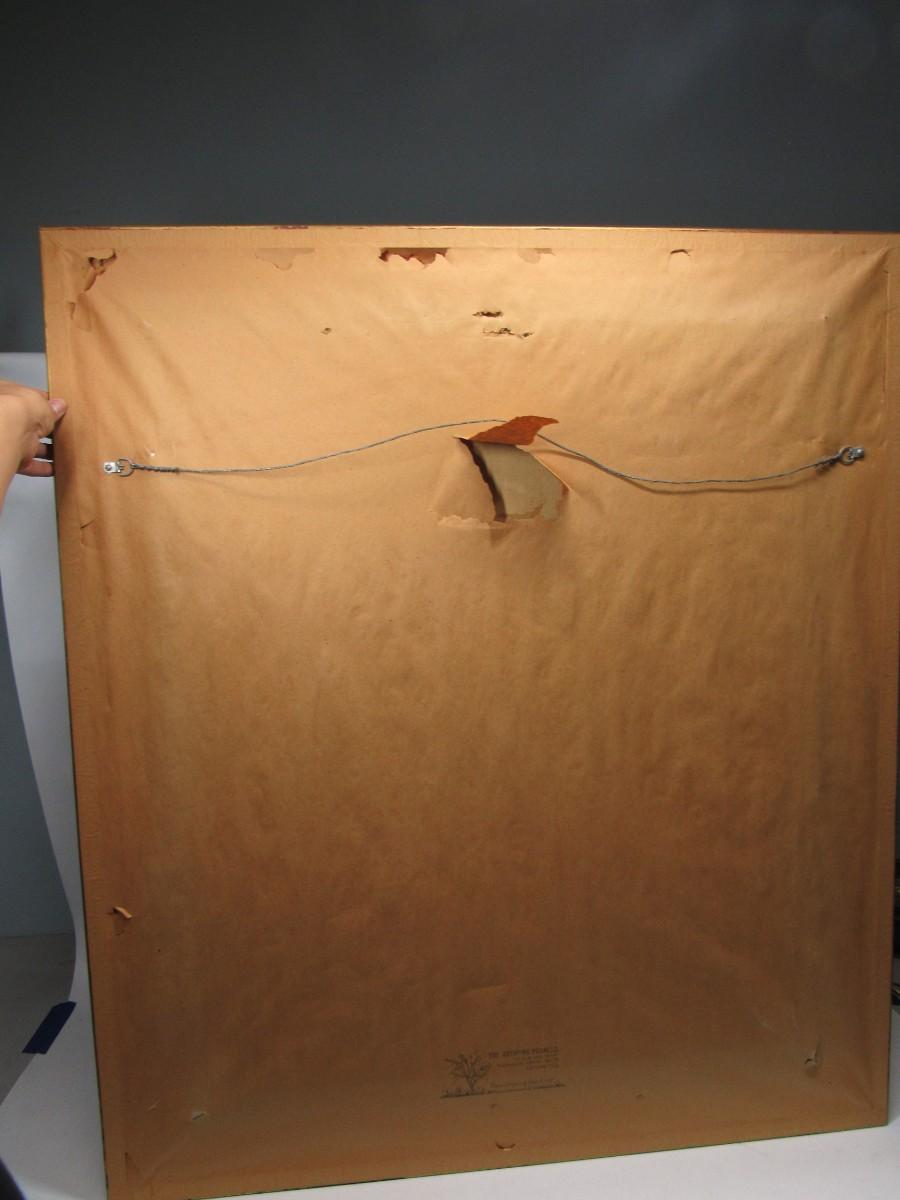 There is fading to the painting, but it adds to the aesthetic of the overall piece. Check pictures for more details and for sizing. The artist name is on the right bottom side of the canvas.