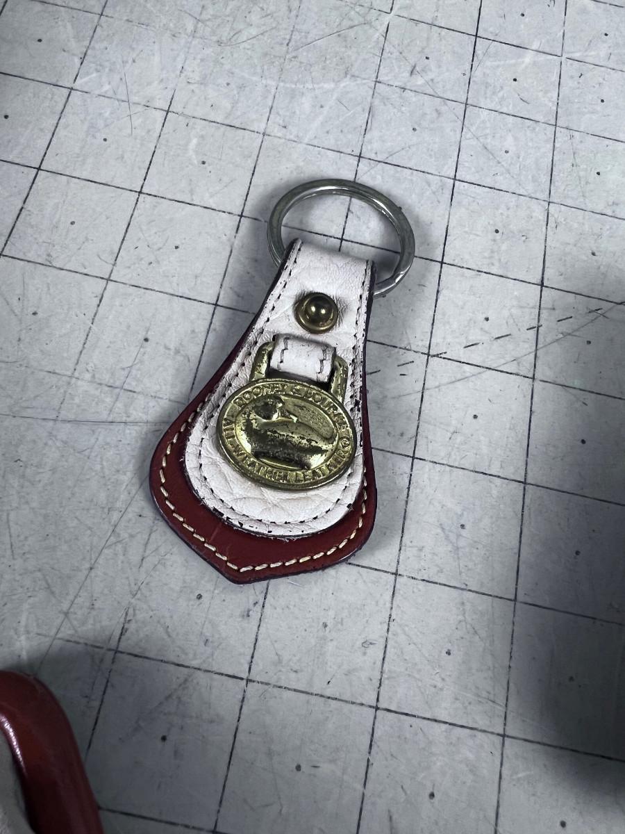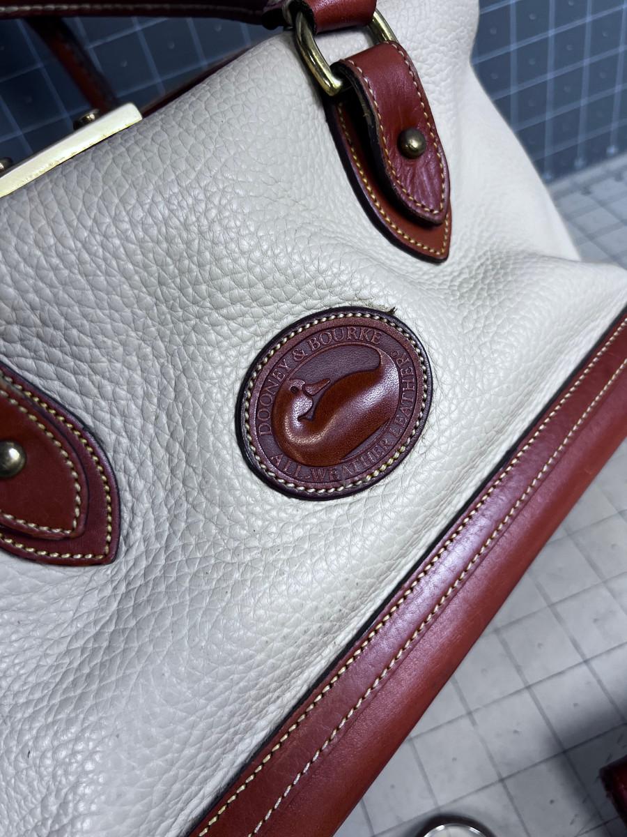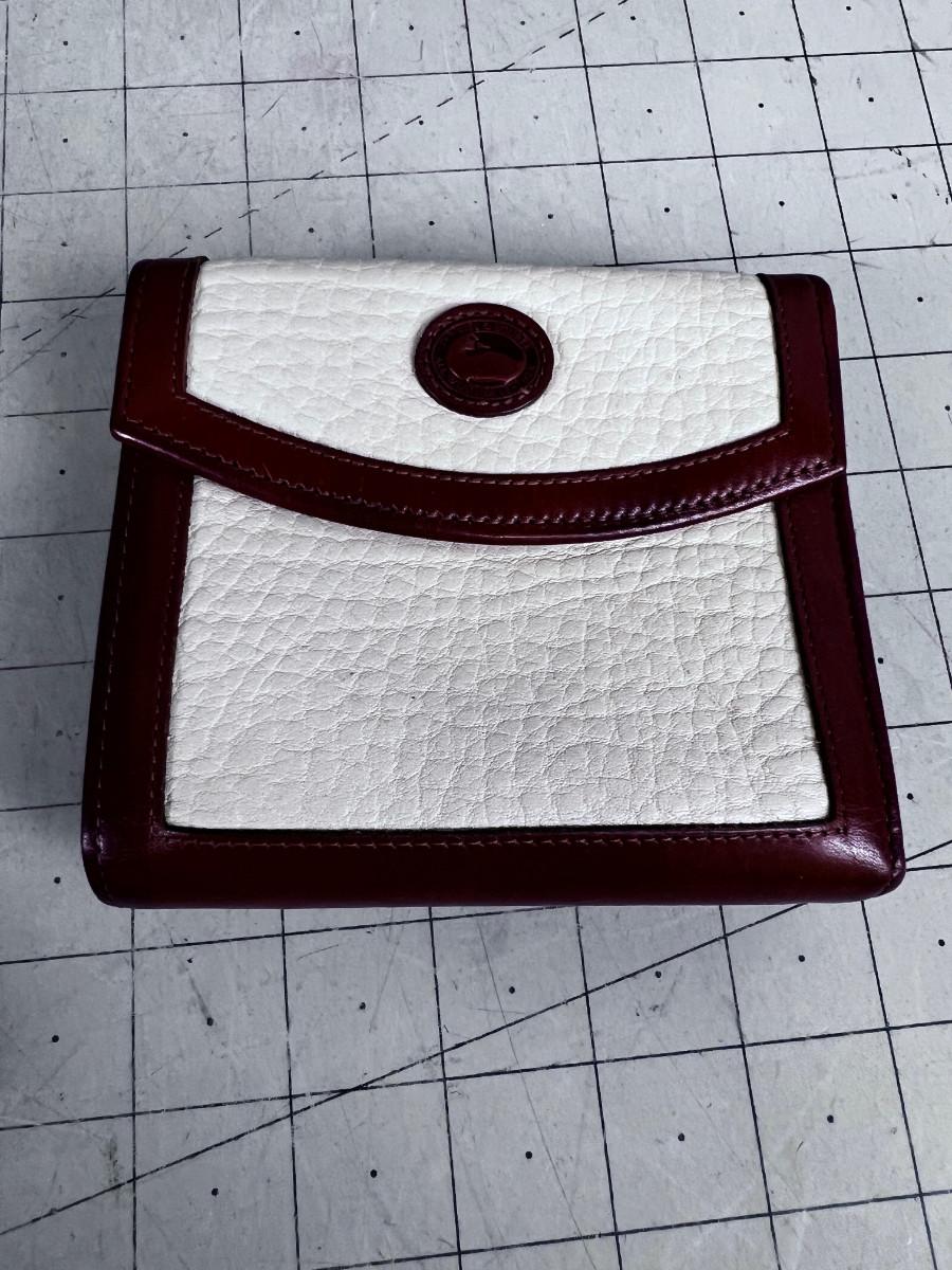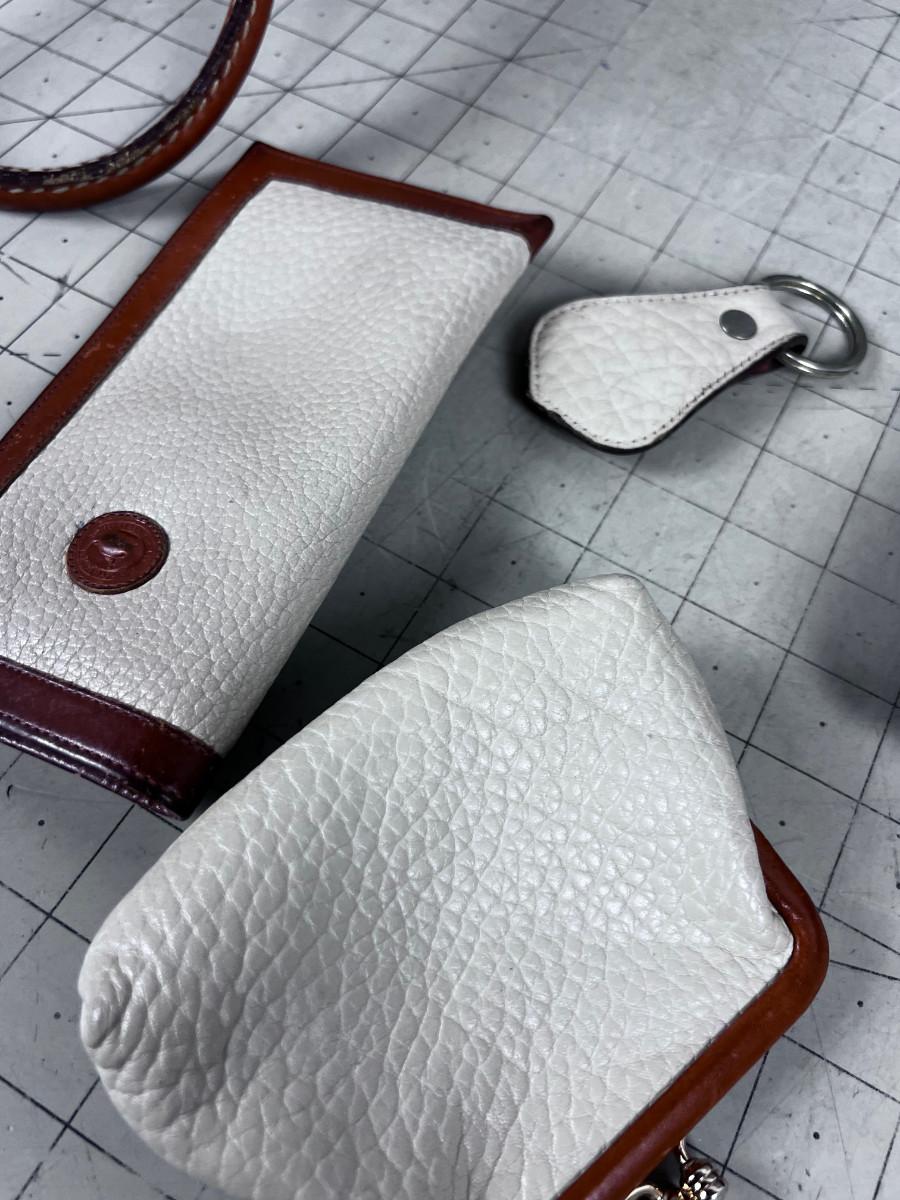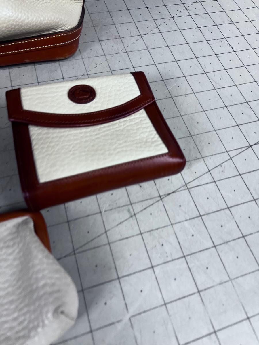 VINTAGE Original Dooney & Bourke, Bone With Tan Edge + Coin Purse, Key Chain, Wallet and Glass Case. WOW!!!