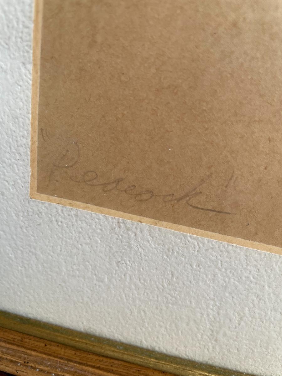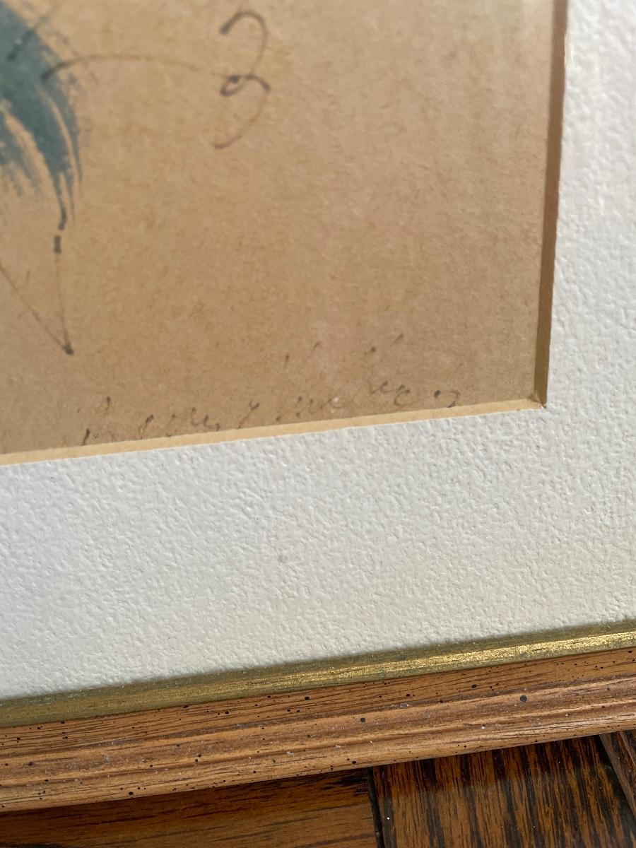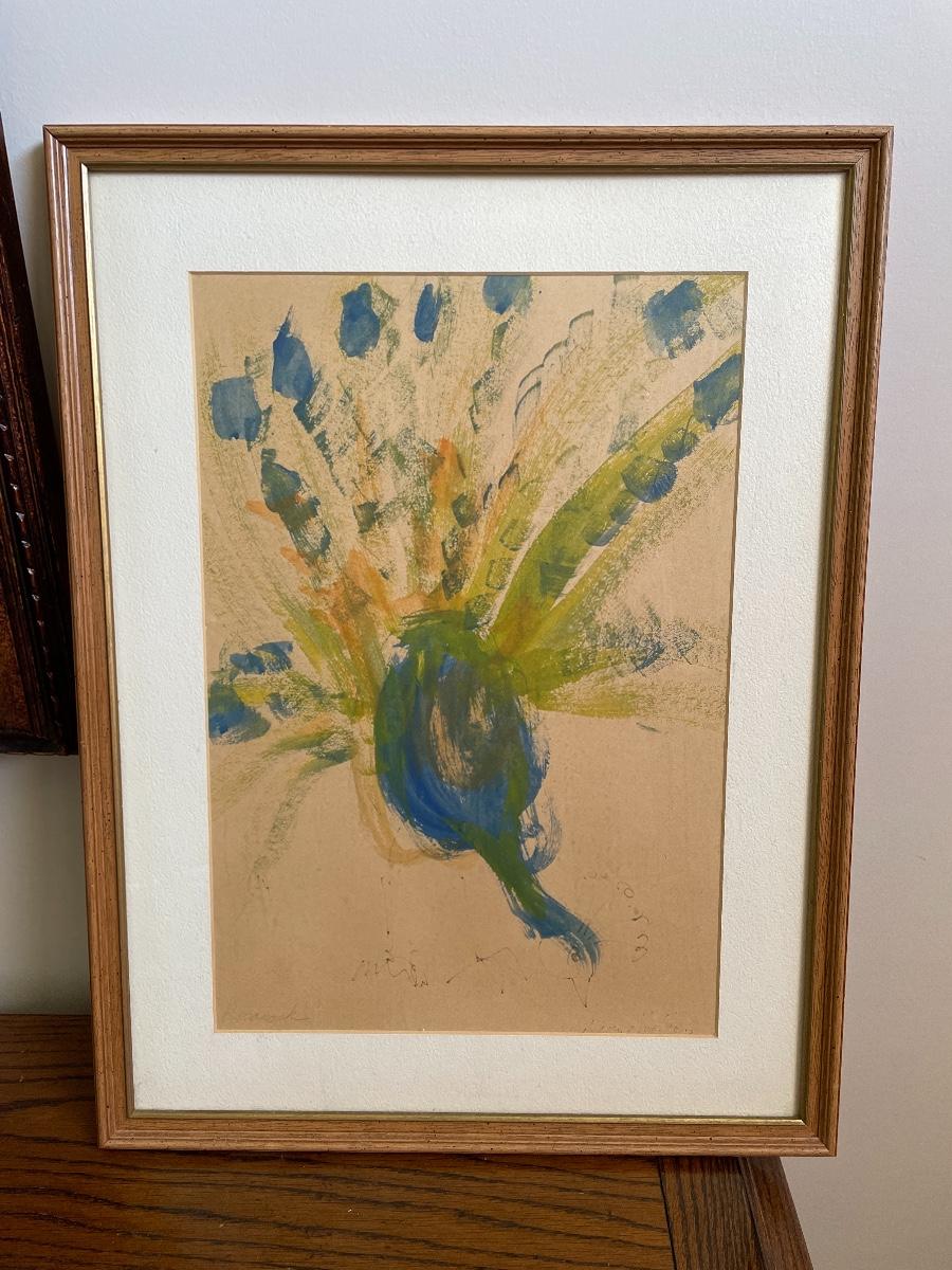 #52 Vintage Original Framed Art Drawing PEACOCK