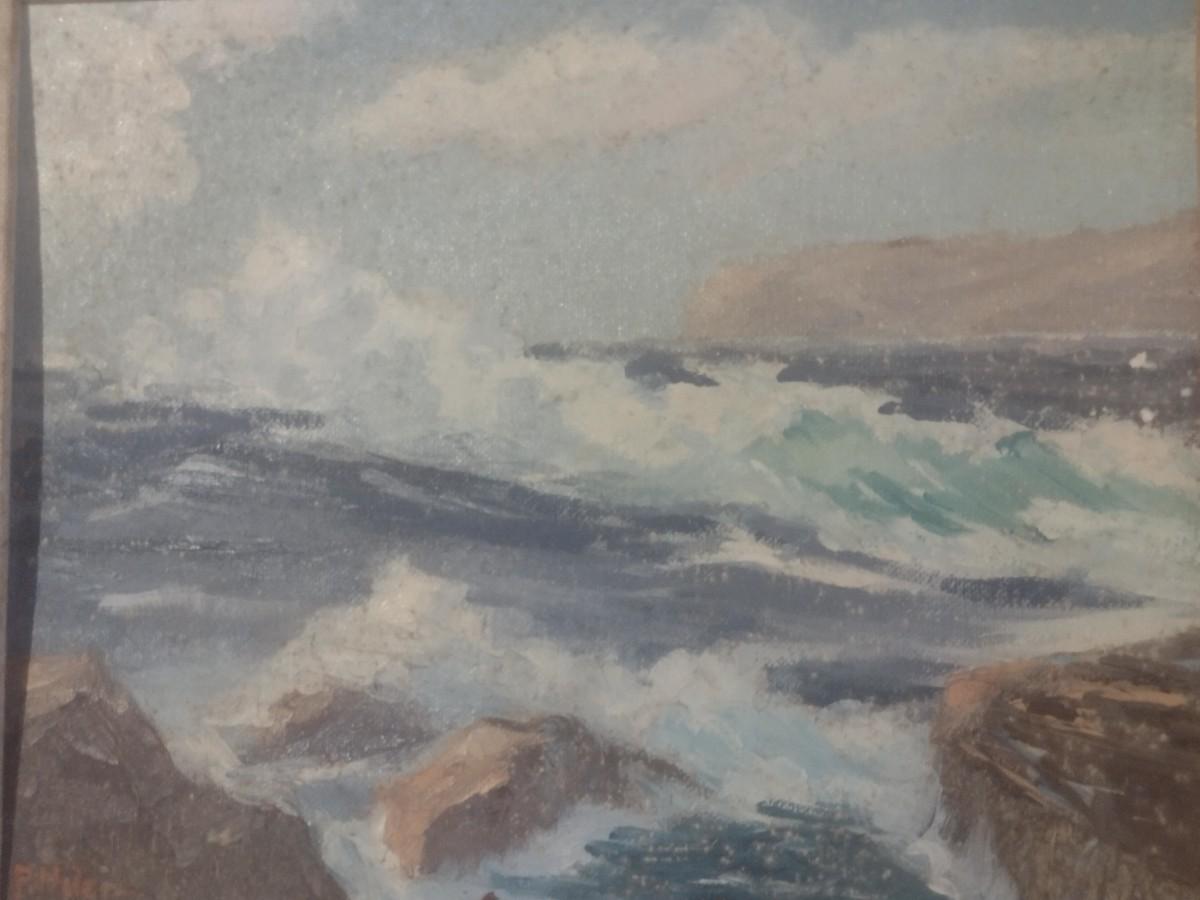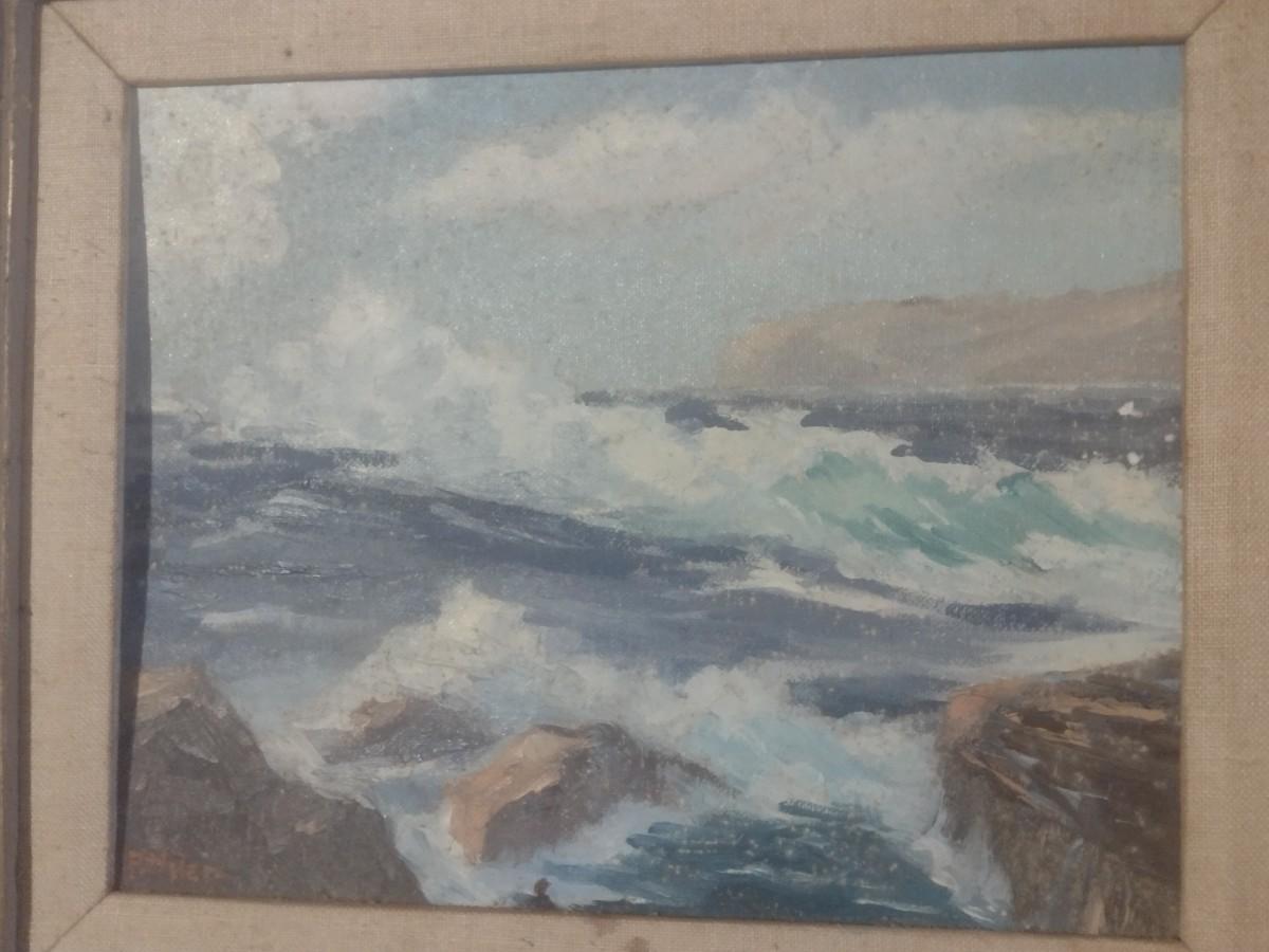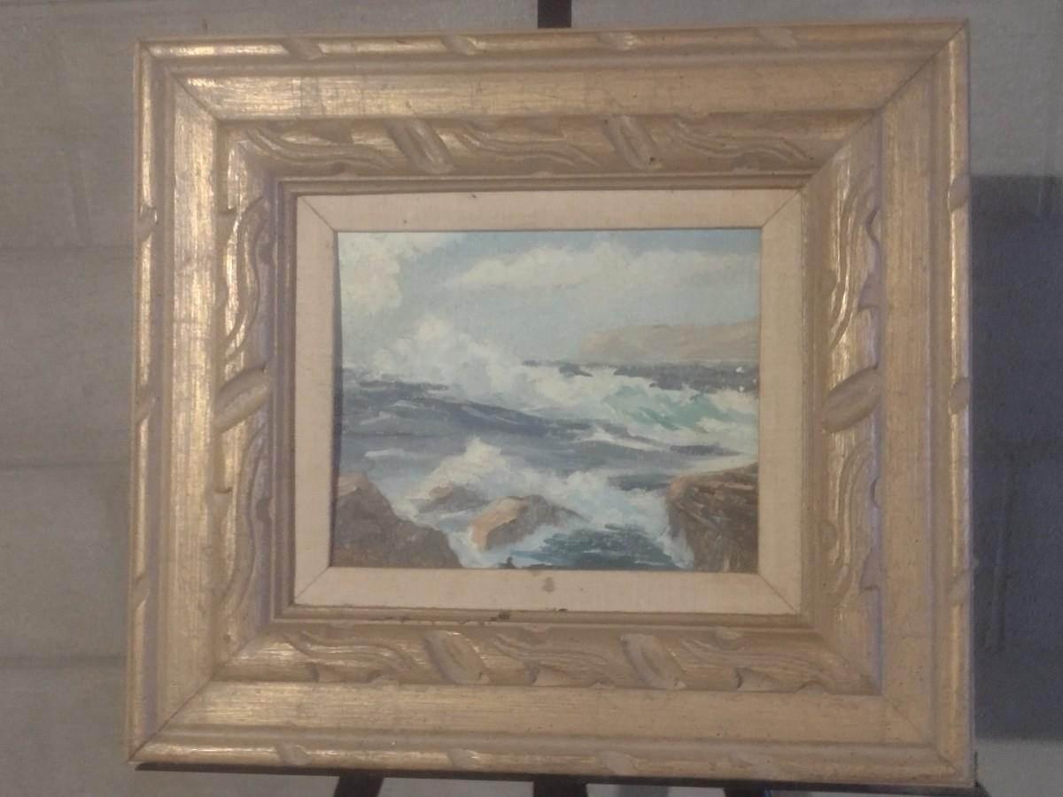 Vintage Original Framed Art Original Crashing Waves by Pauline Hiler
