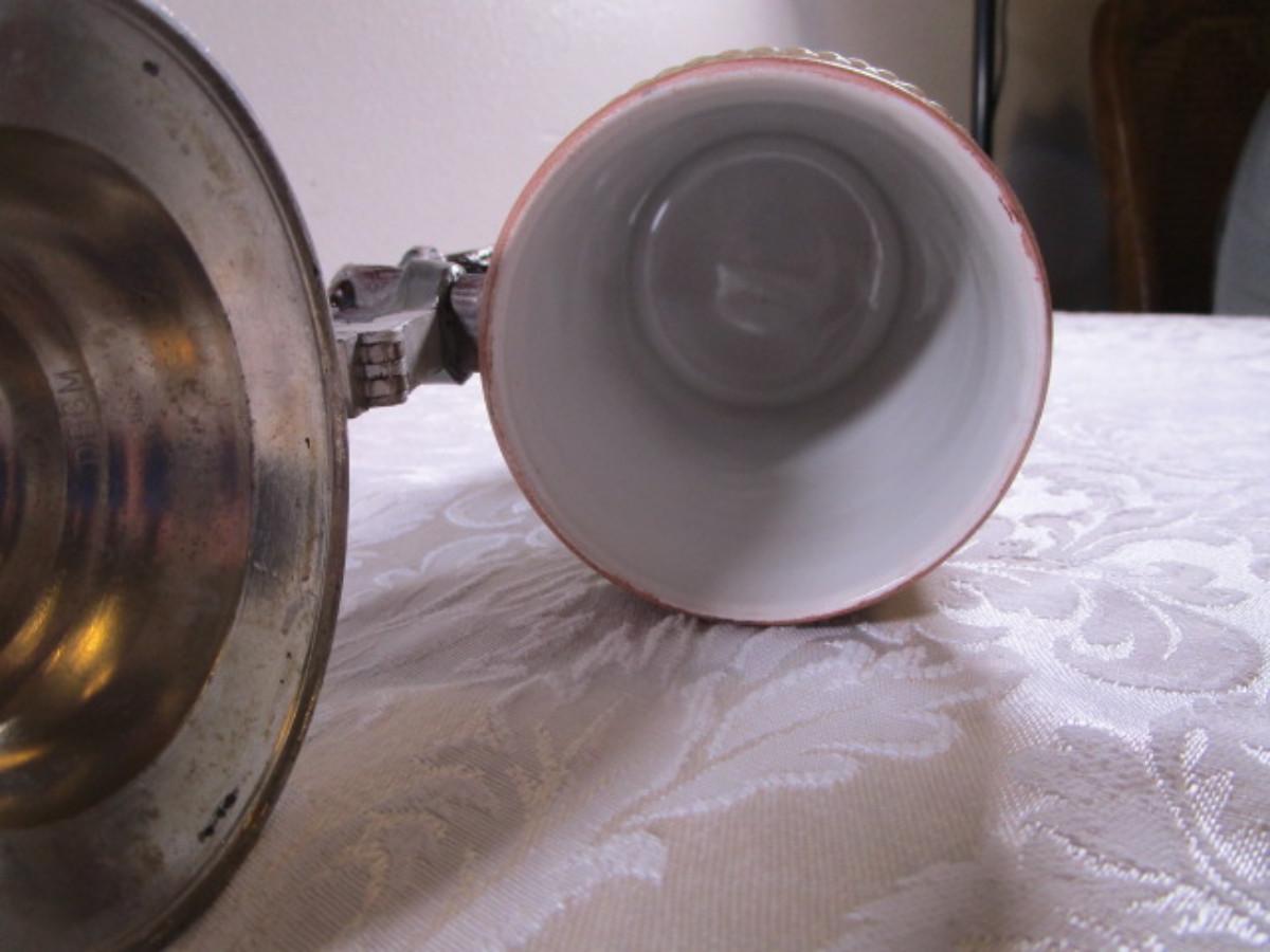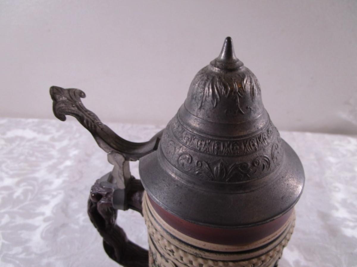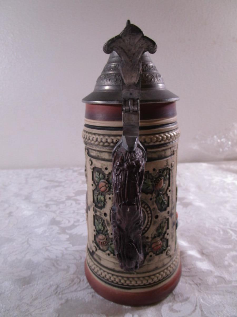 Excellent condition. Inscription says "Bring Me a Beer, Bring Me a Beer or I'll Fall Over" in German, 9-5/8" tall x 4" across