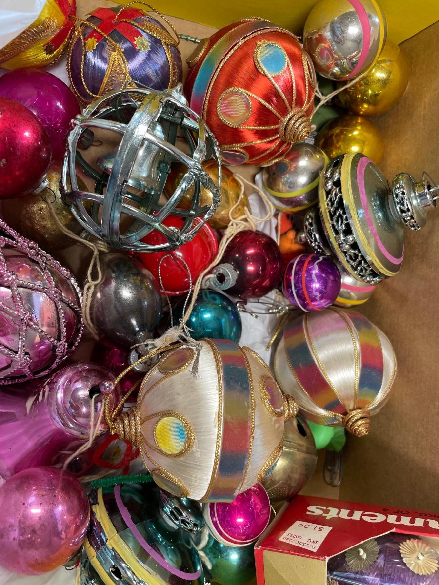 Vintage ornaments & 2’ santa