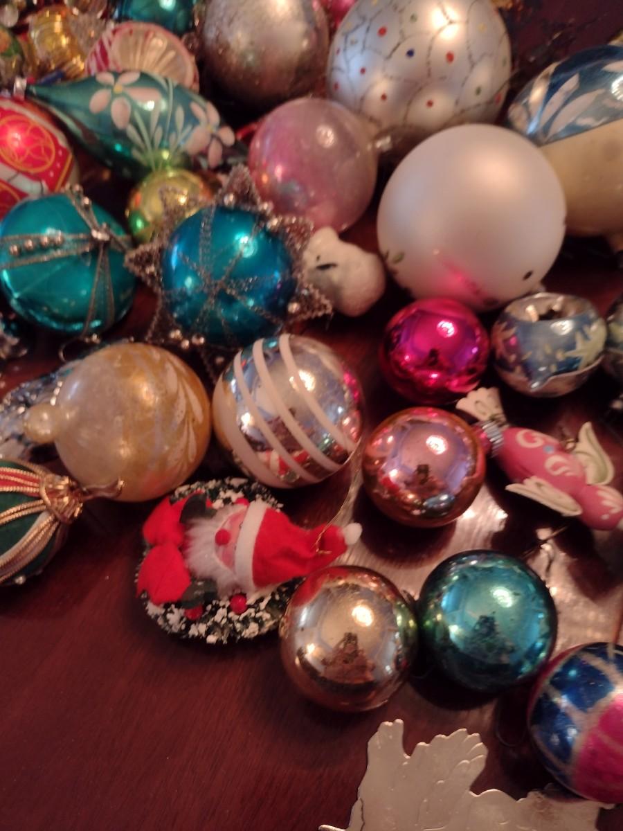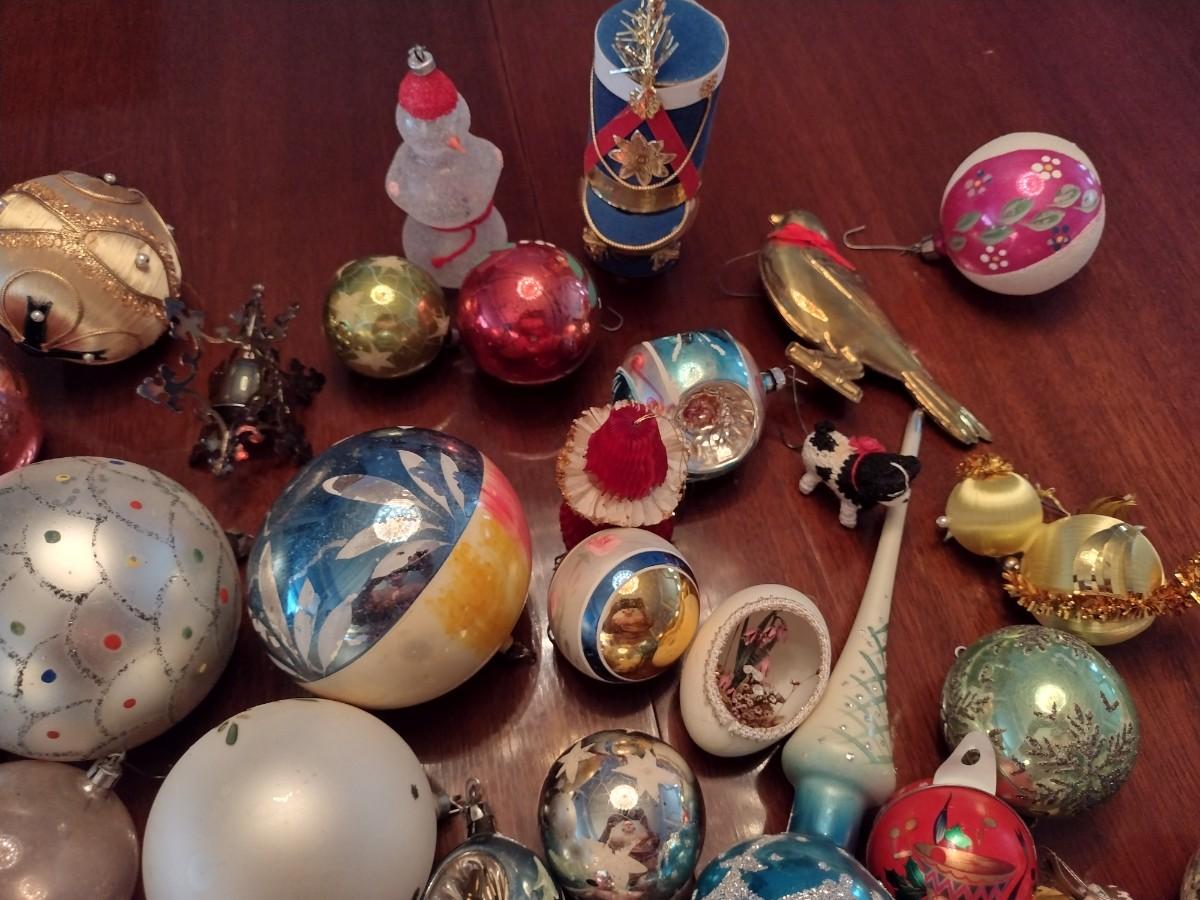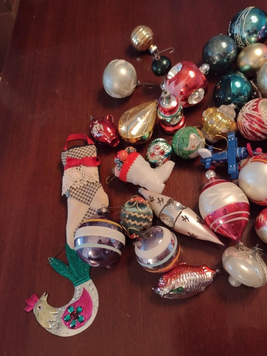Vintage Ornaments- Box #1. Vintage tree topper included.
