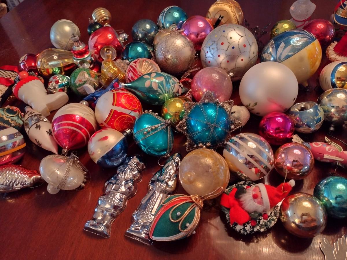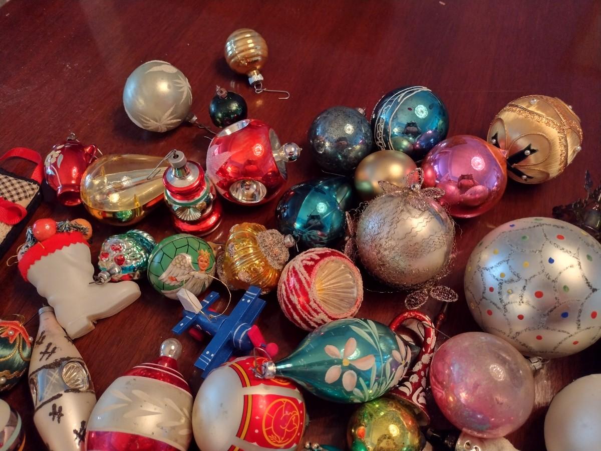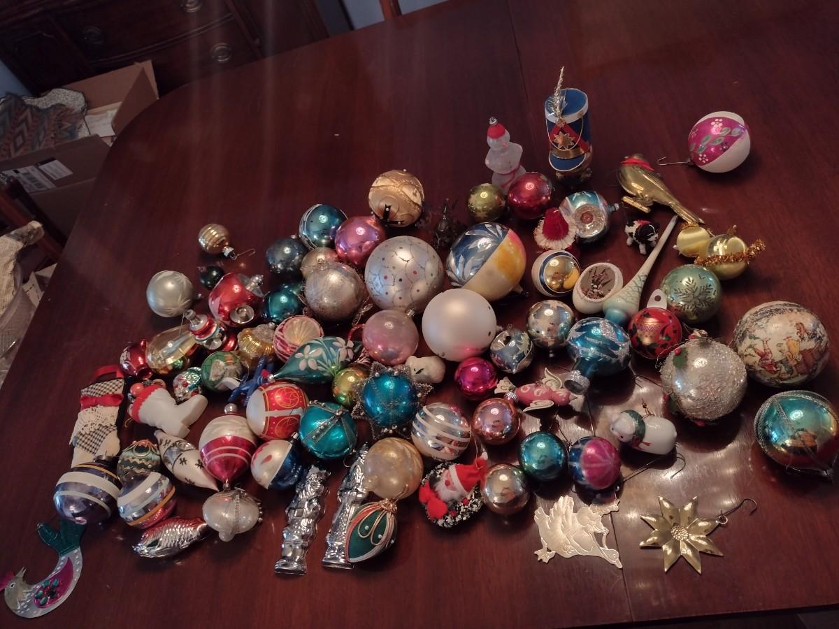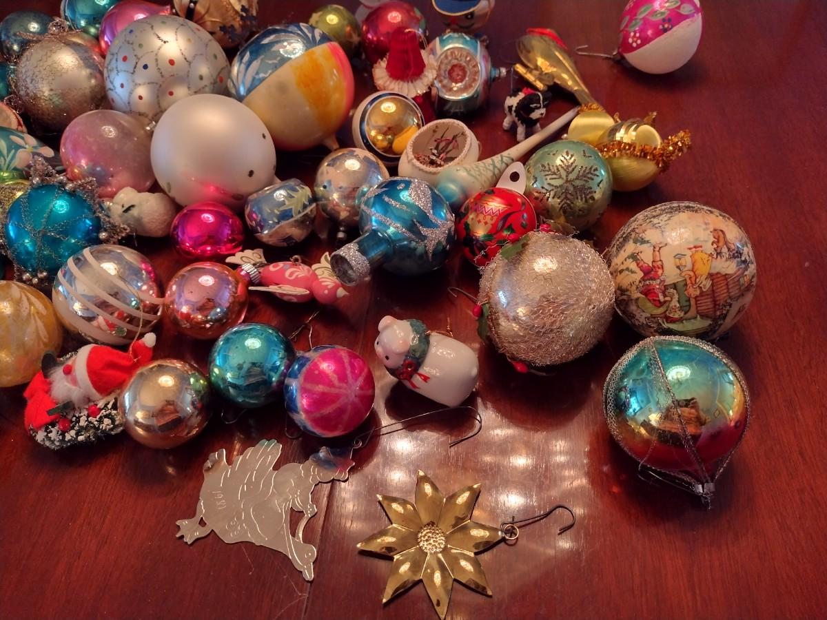Vintage Ornaments- Box #1. Vintage tree topper included.