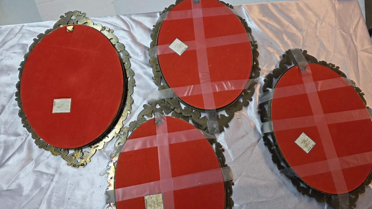 Vintage Ornate Brass Oval Wall Frames (Set of 4) – Italian-Style Prints – Gallery Wall Décor