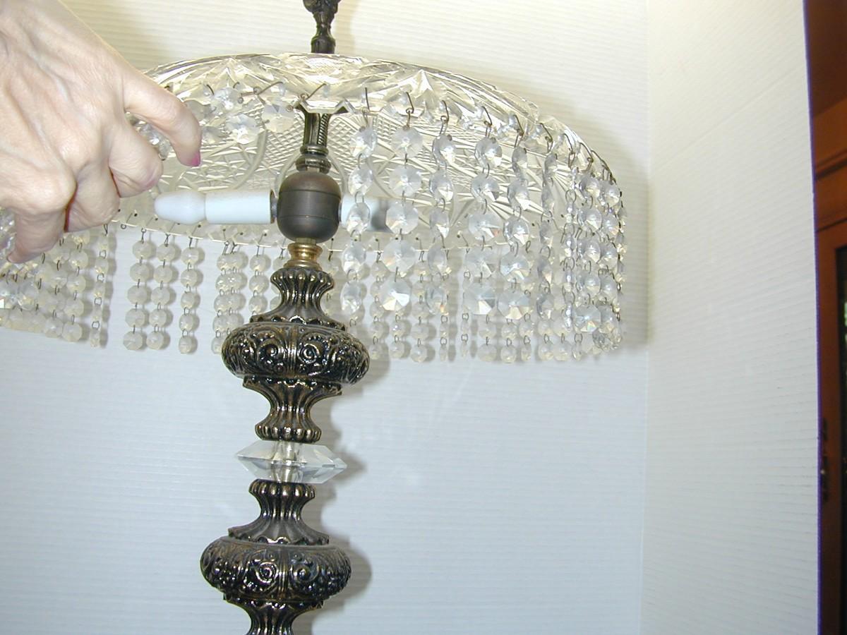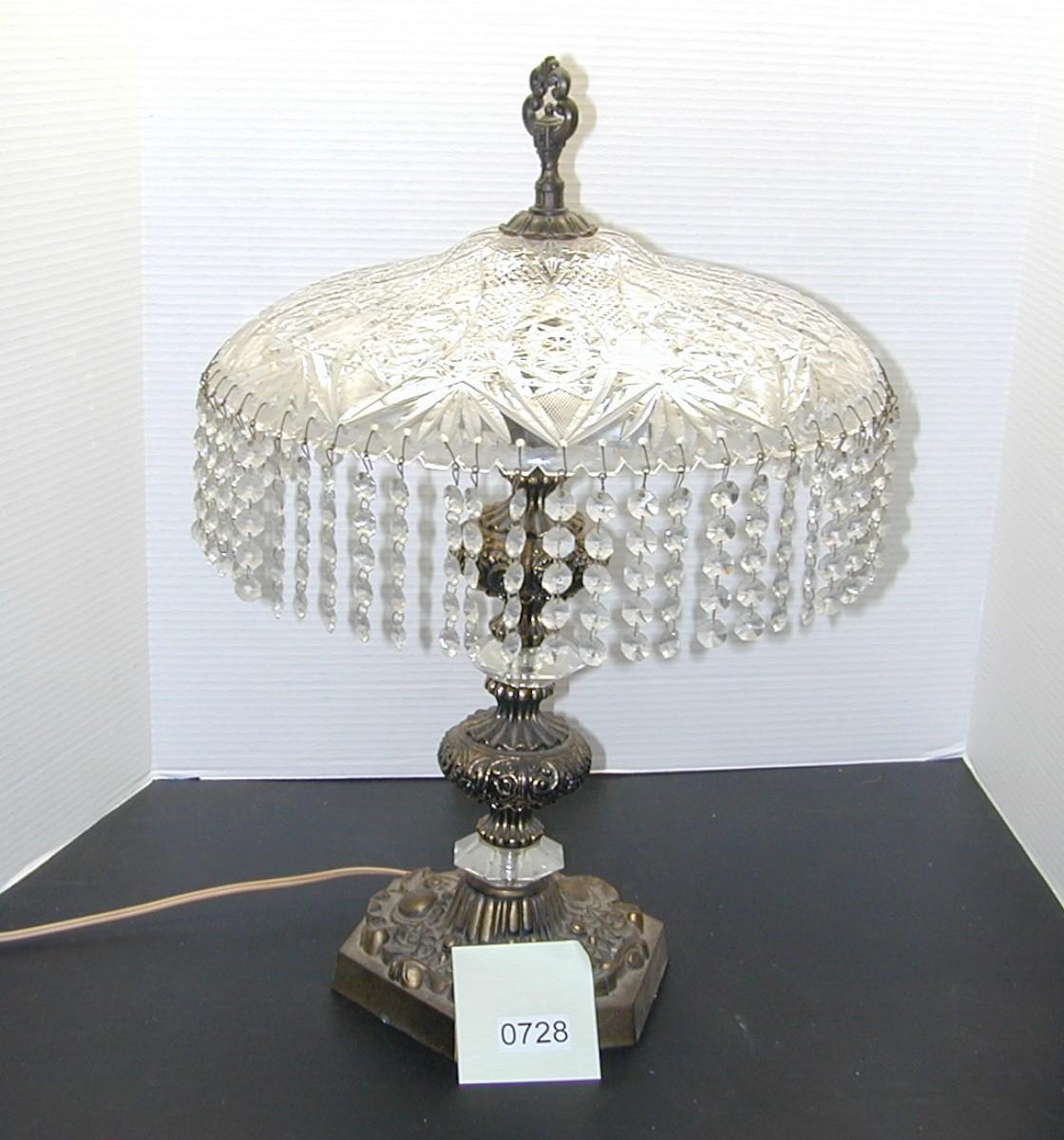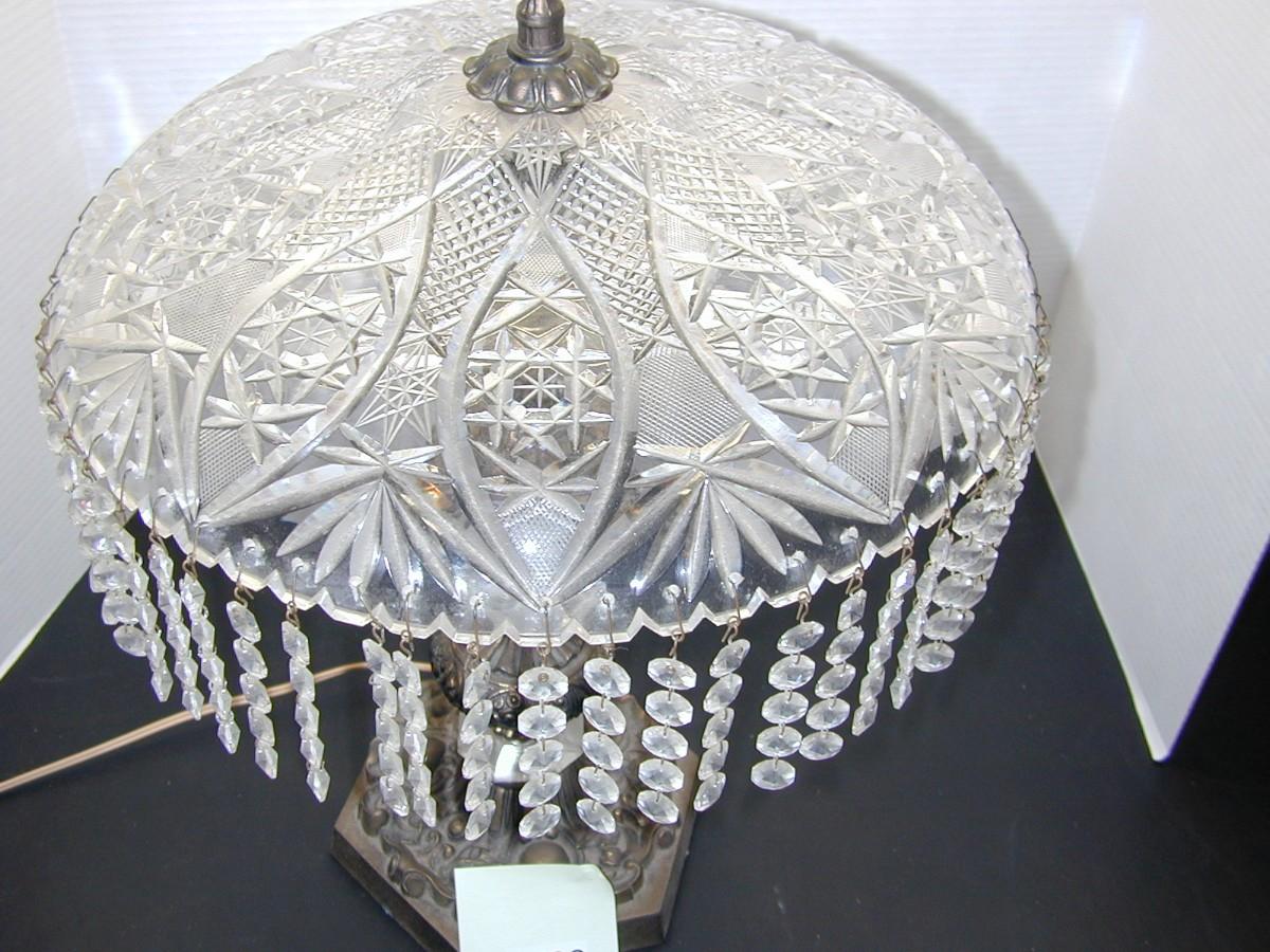 Vintage Ornate Pressed Glass Dripping with Crystals Table Lamp - Lot 728