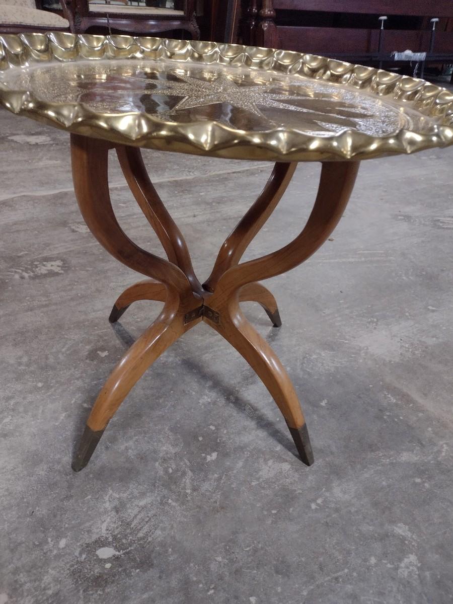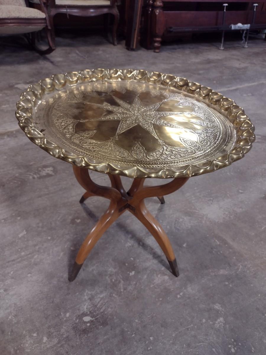 Vintage Brass Butler Tray with Wood Stand 22"