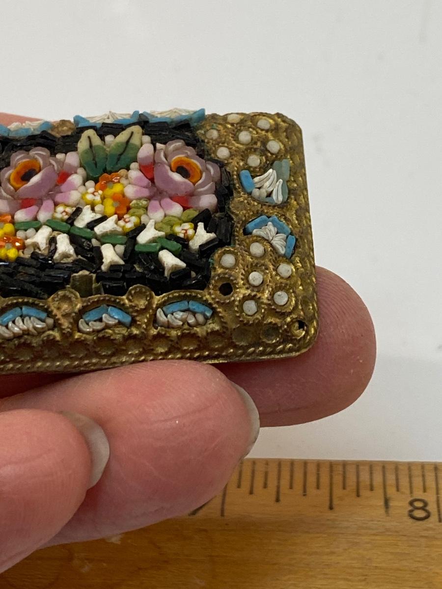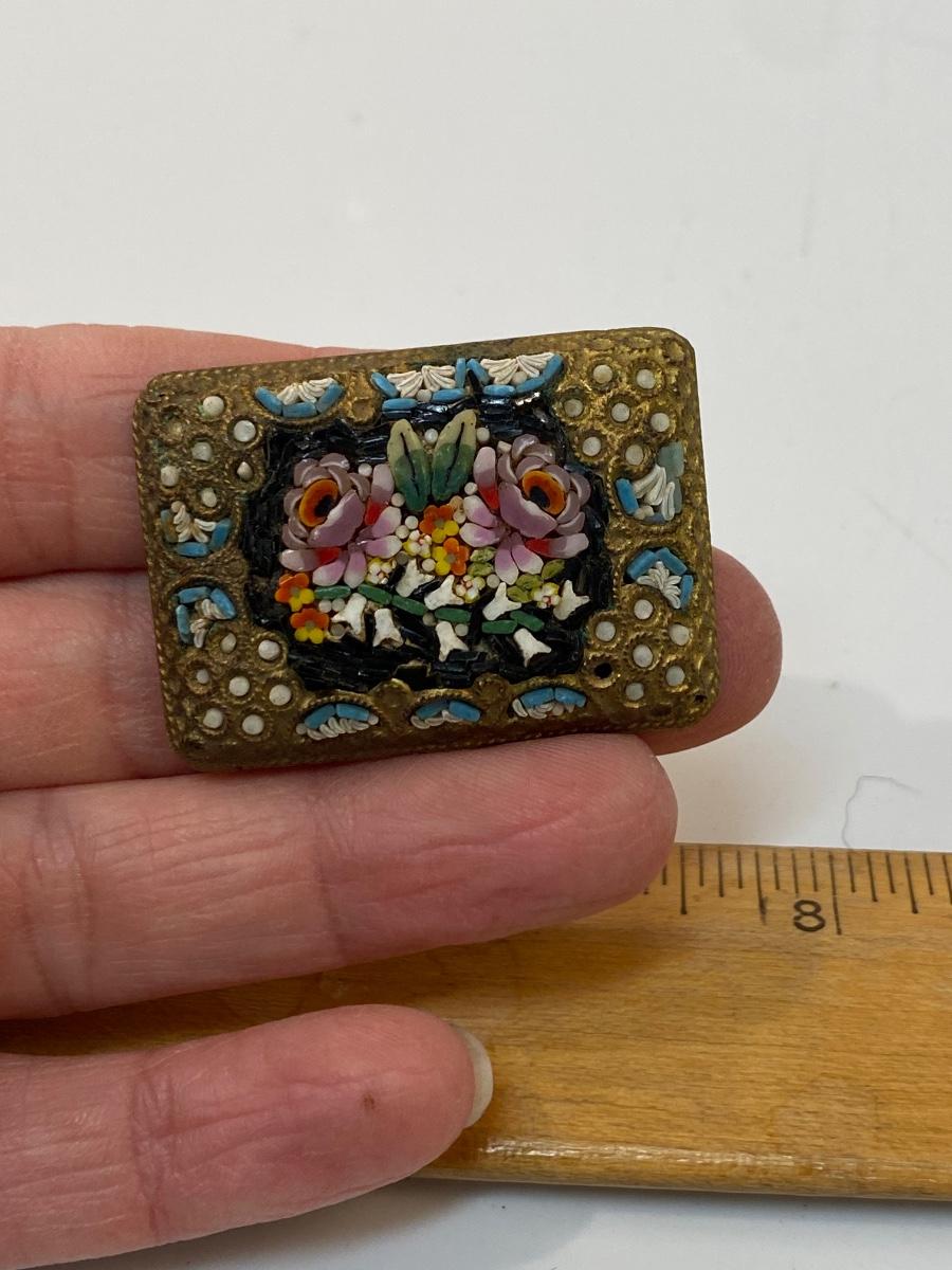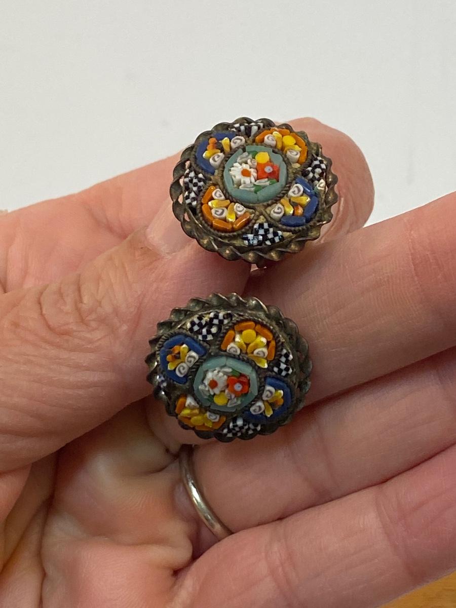 Vintage Ornate Stone Mosaic Inlaid Flower Button Earrings & Pin Made in Italy. Highly detailed ornate stone inlaid pieces. Made in Italy. Screw back earrings. The pin is missing one stone dot, see photo.