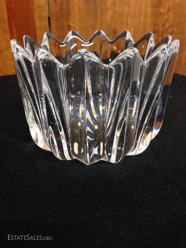 Bowl has the Orrefor marking and is 6 1/4 x 4 1/2. Please view photos at full screen size for best detail.