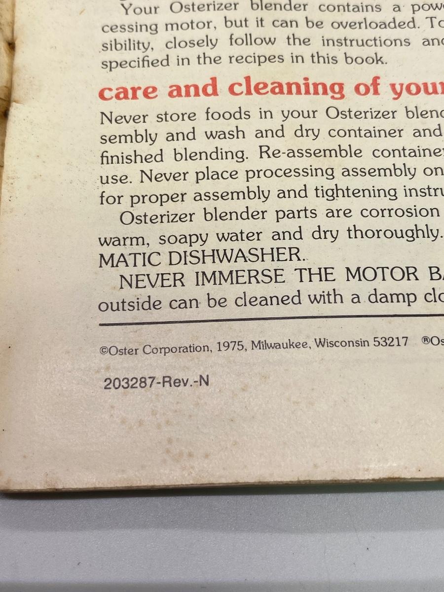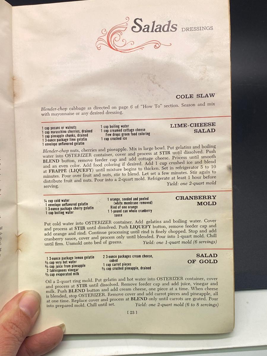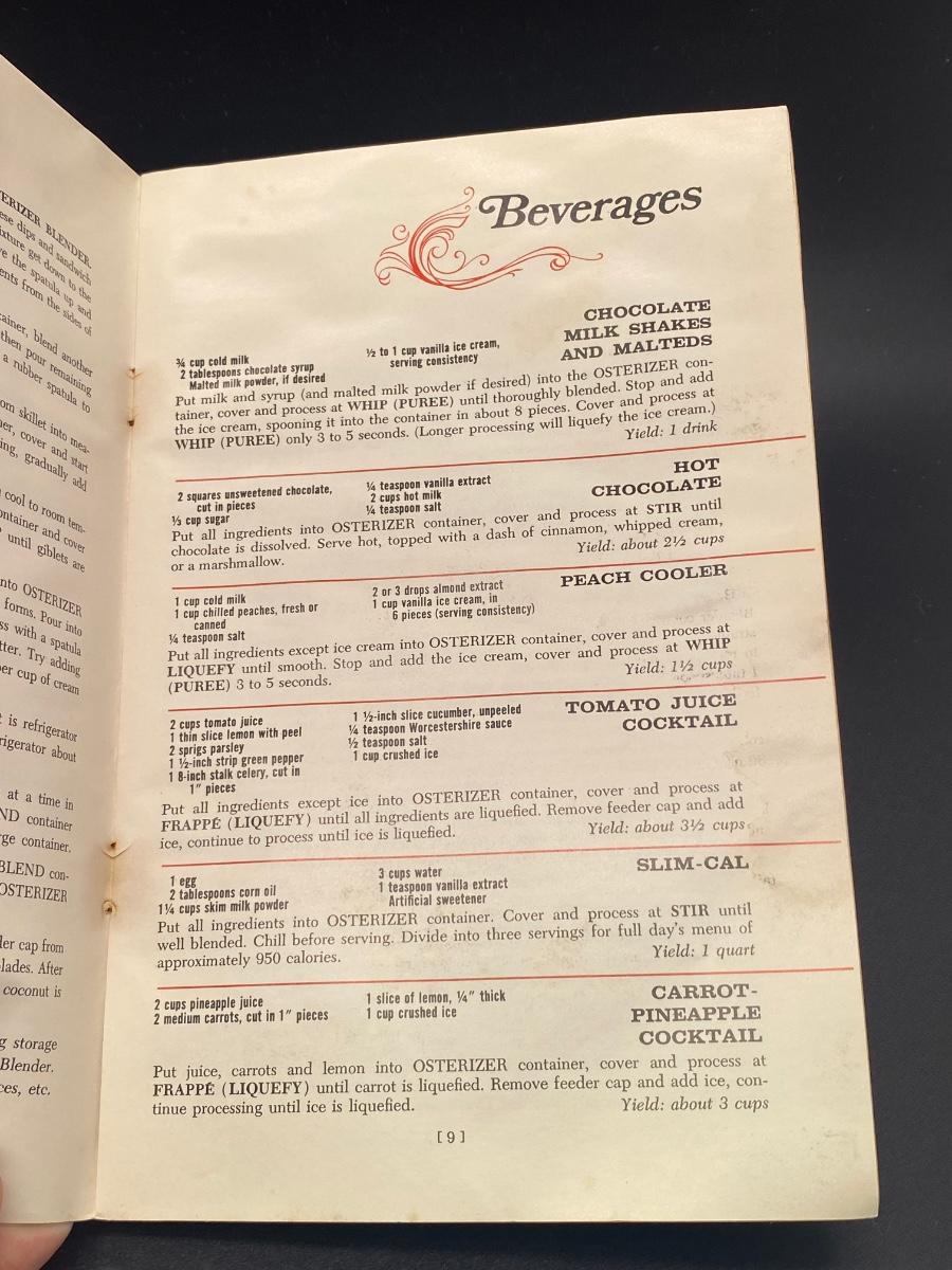 Vintage Osterizer Blender Spin Cookery Cookbook Booklet. In fair vintage conditions, has been used. Some pages were slightly stuck together, they come apart easy with careful effort. Contains a wide range of recipes.