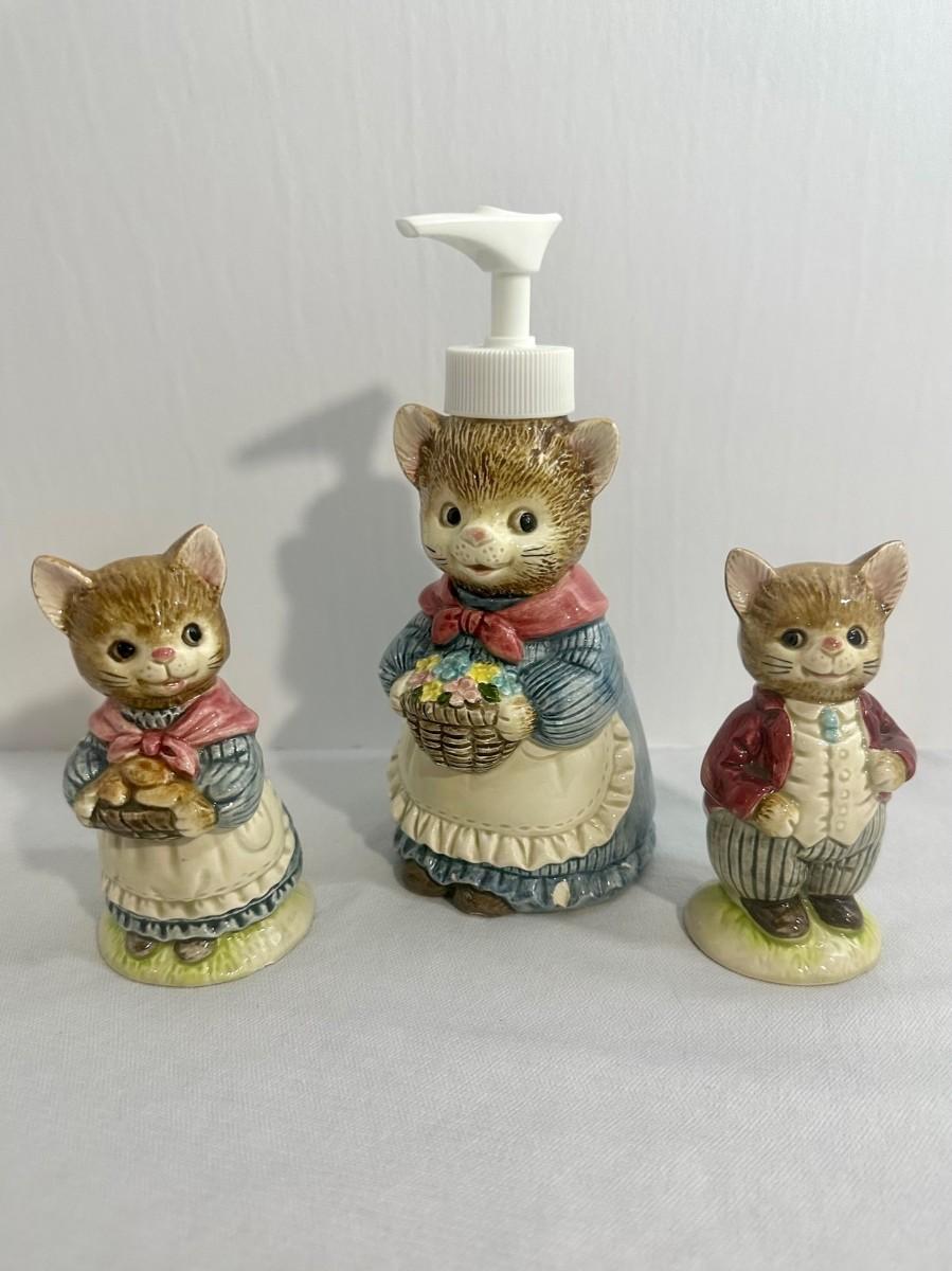Vintage Otagiri Cat Family - Ceramic Salt & Pepper Shakers & Soap Dispenser