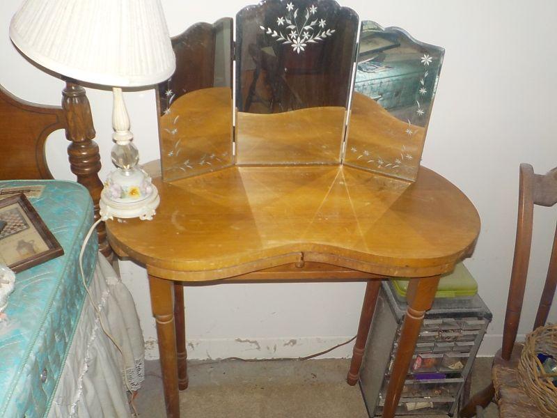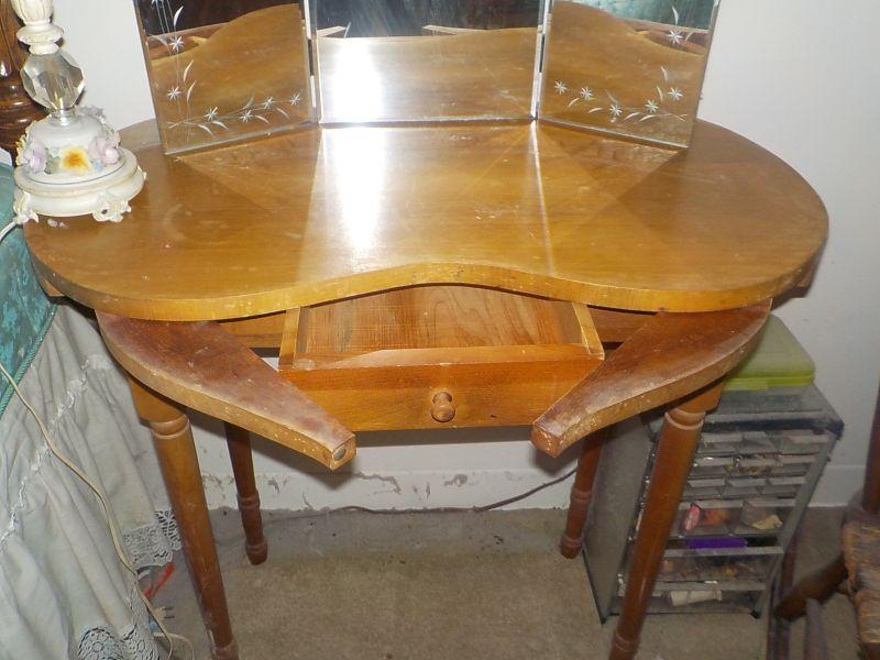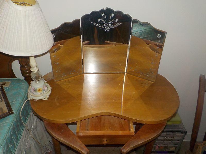 Vintage oval 1920's vanity bureau with 3 side mirror.