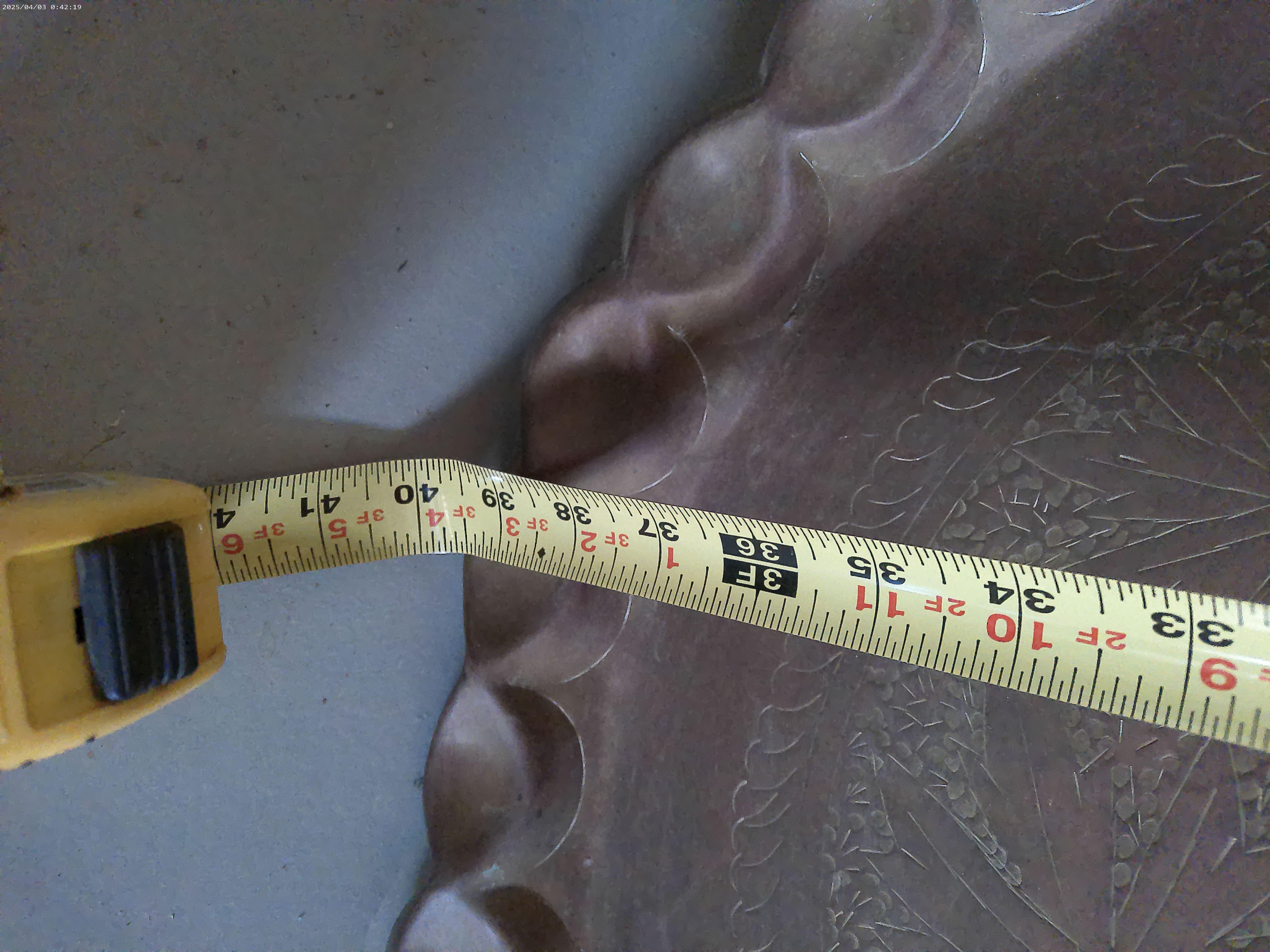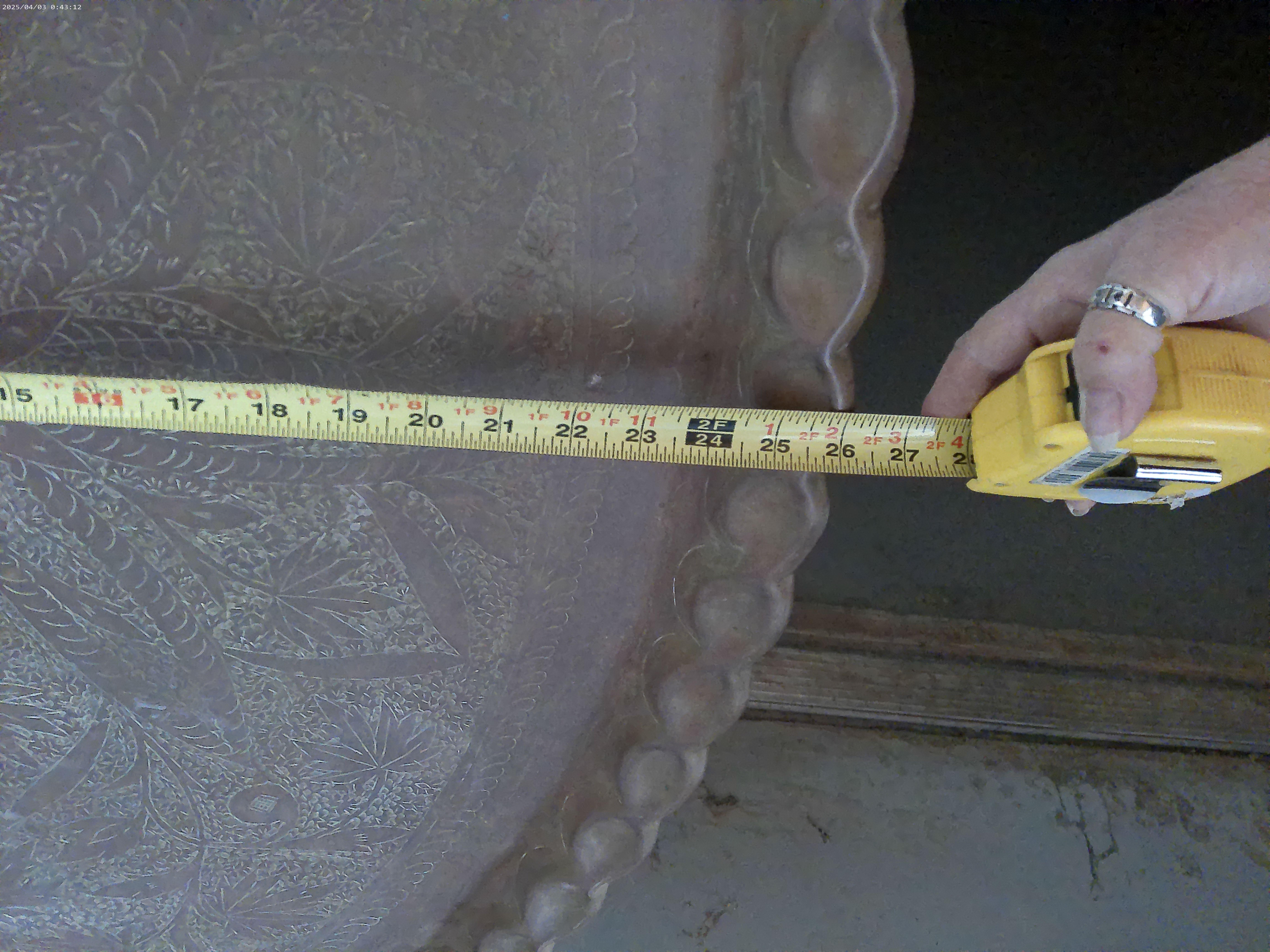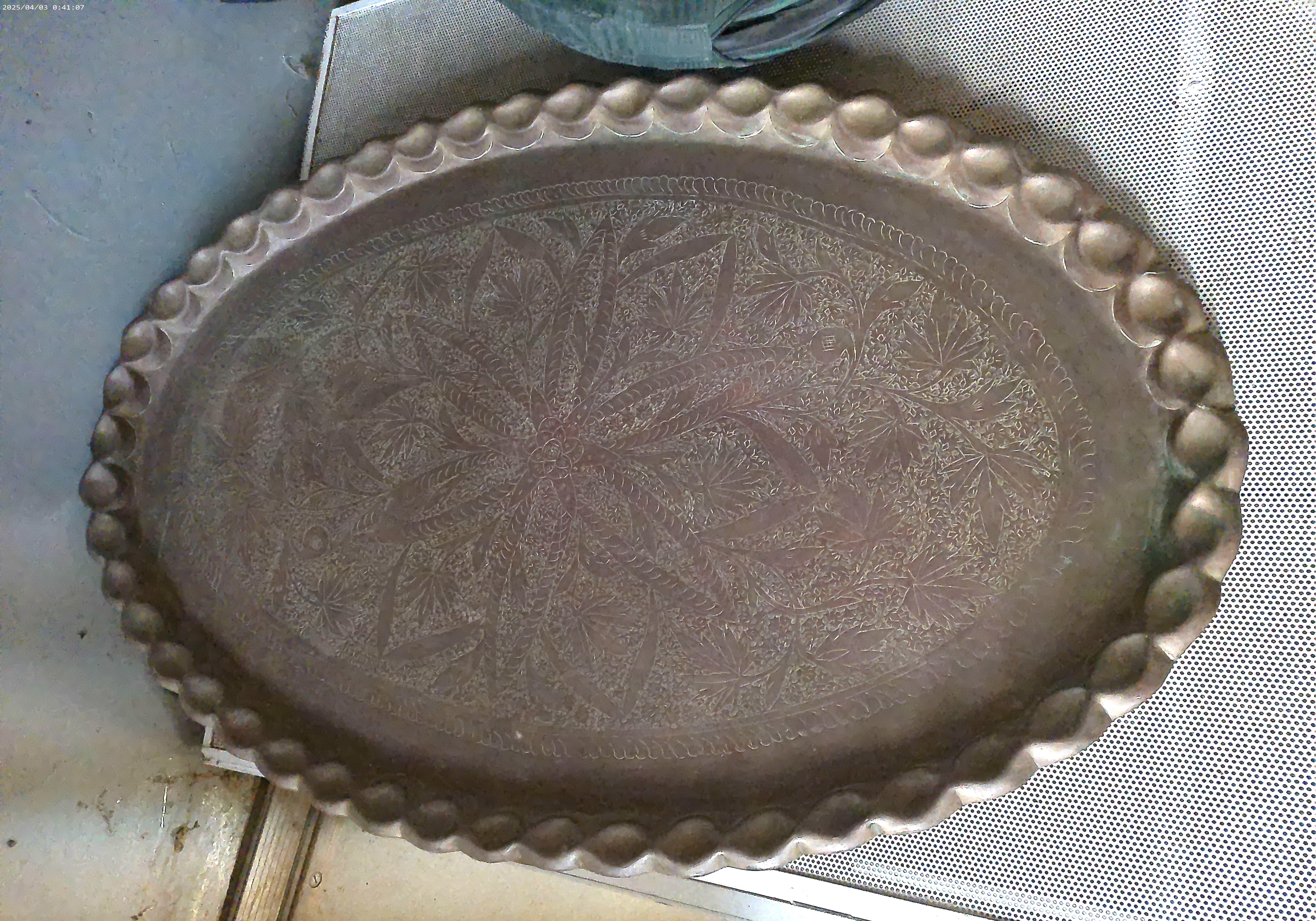 Vintage Oval Brass Tray or Tabletop with scalloped edge and etched design. solid brass, Middle Easten style, in good shape no dents no scratches . 40" x 26"