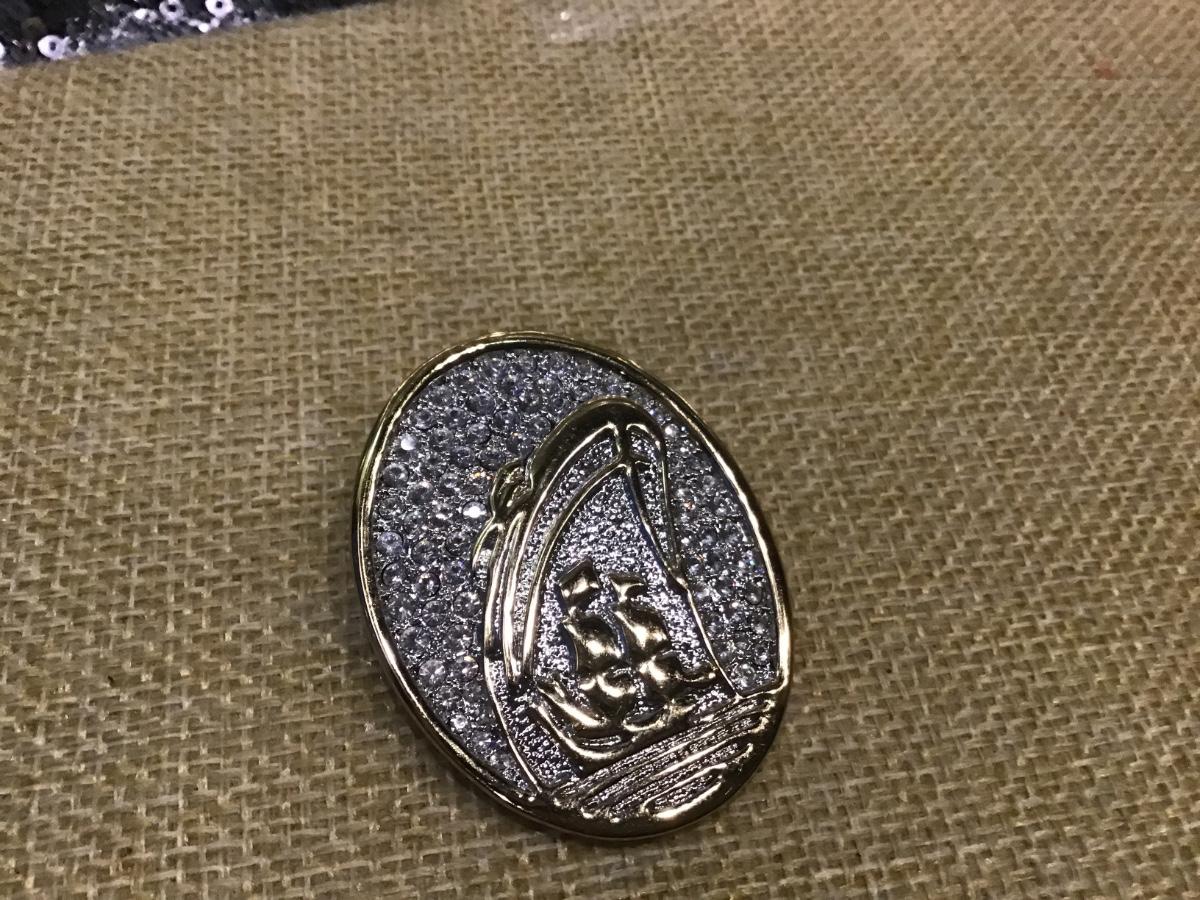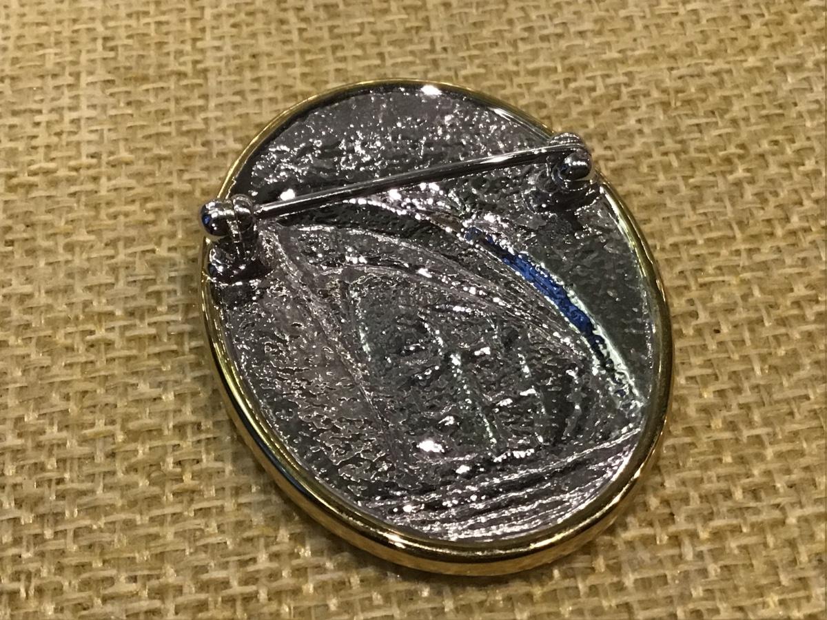 Vintage Oval Rhinestone Covered Brooch Ocean Liner ships Tall Sail Boat