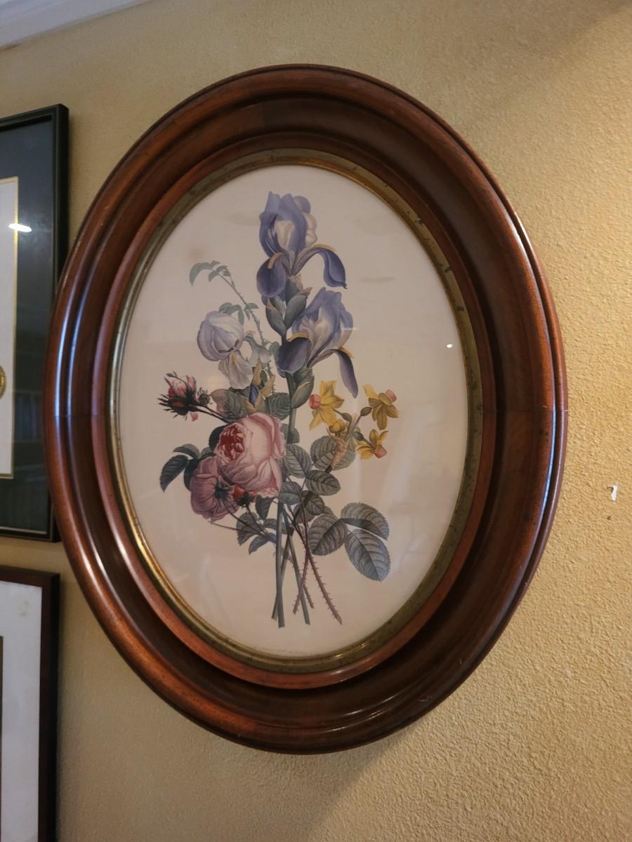 Vintage Oval Wood Frame Artwork
