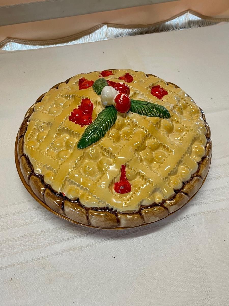 Vintage Over and Back Lattice Cherry Pie Keeper Baking Dish