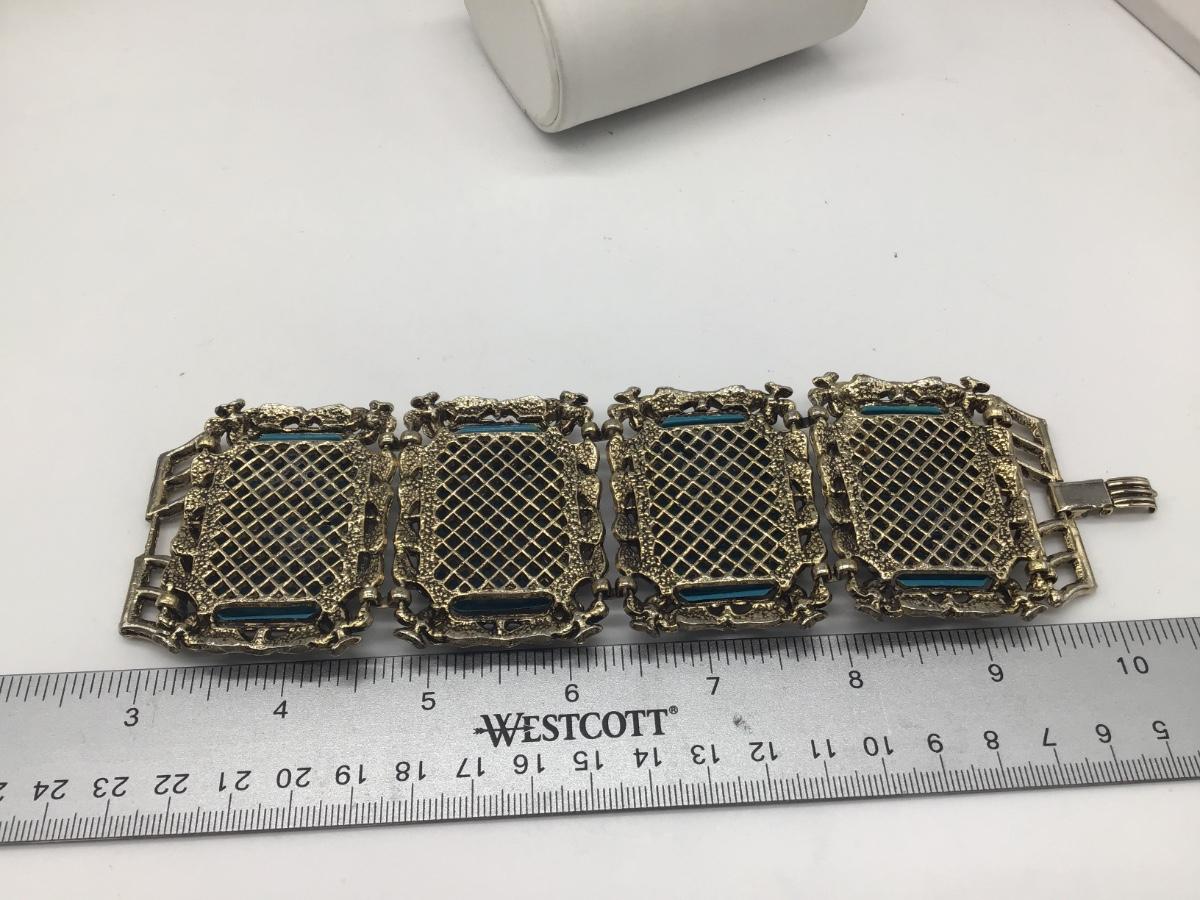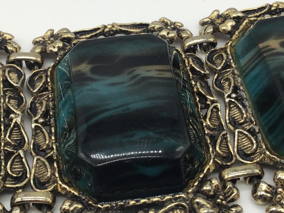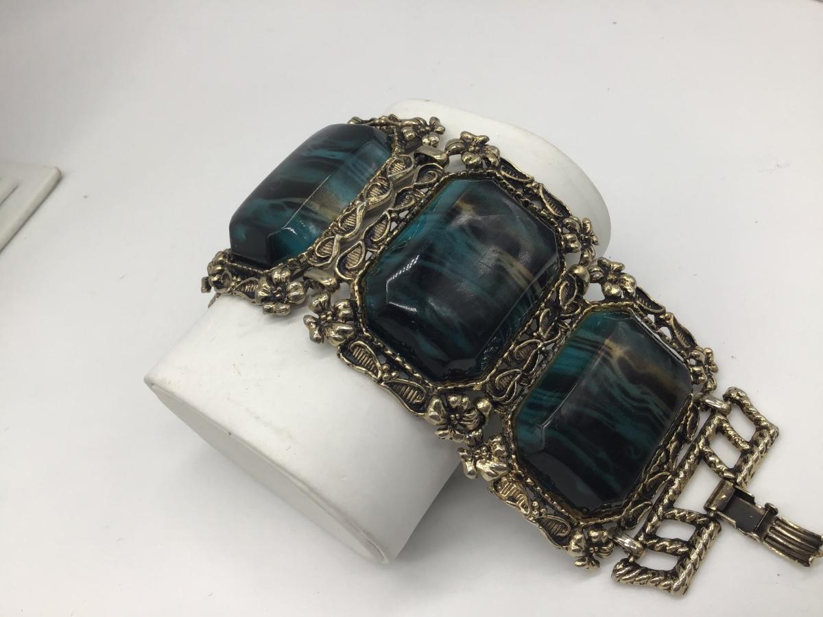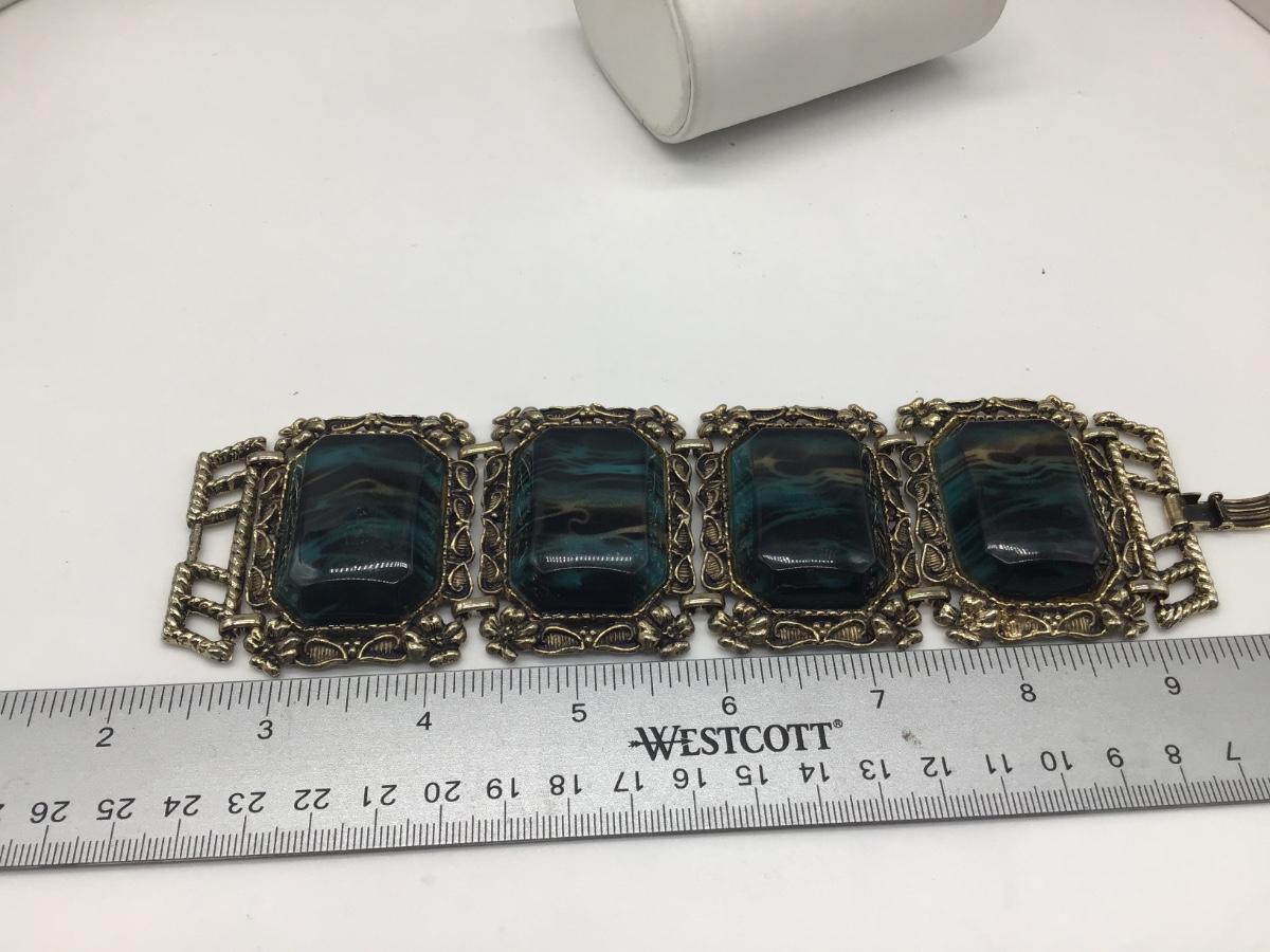 VINTAGE OVERSIZED LINK BRACELET SWIRL CELLULOID PANELS