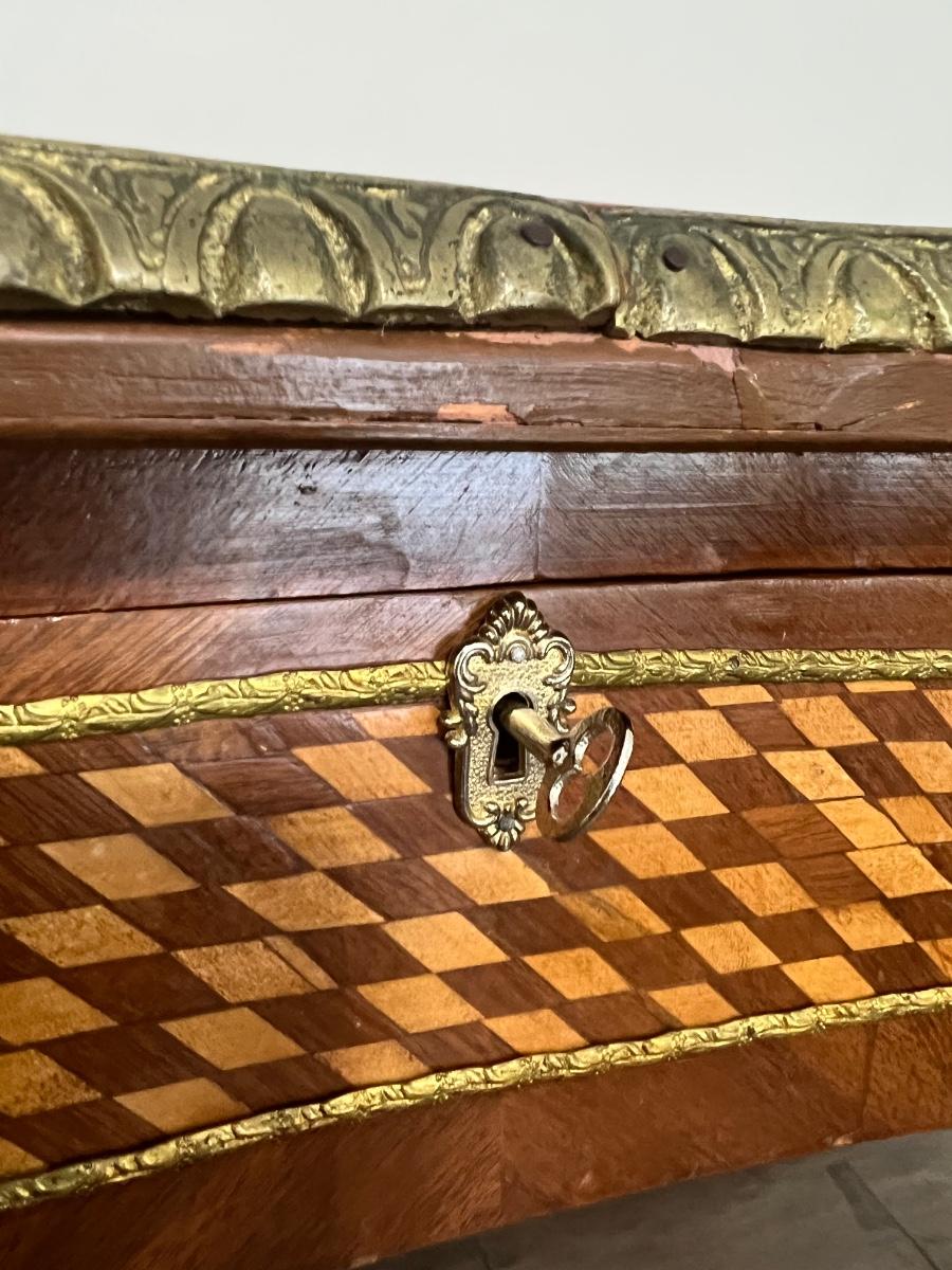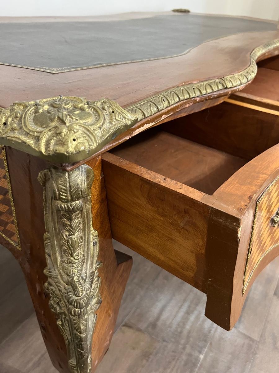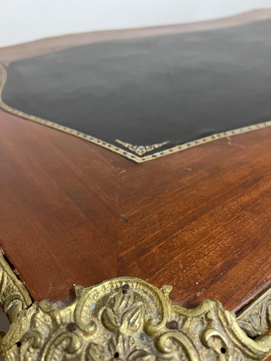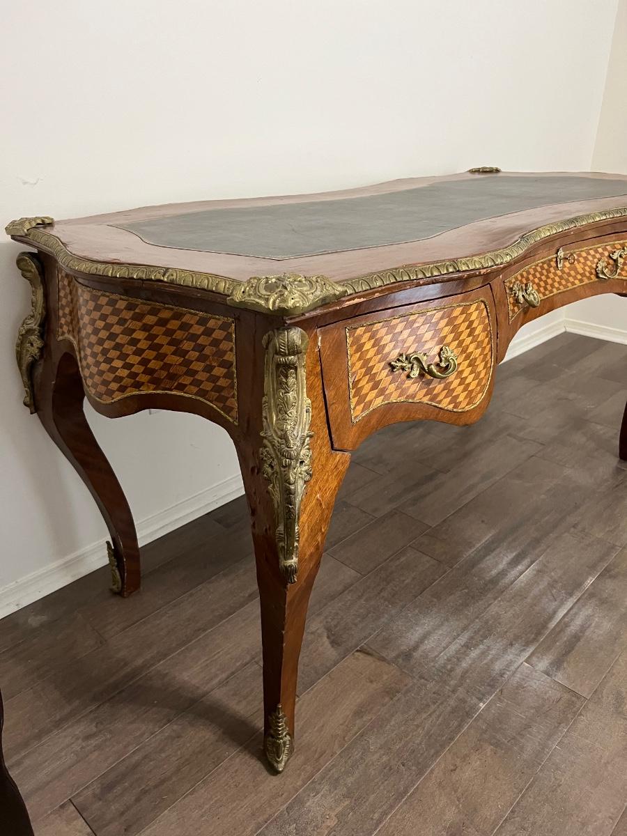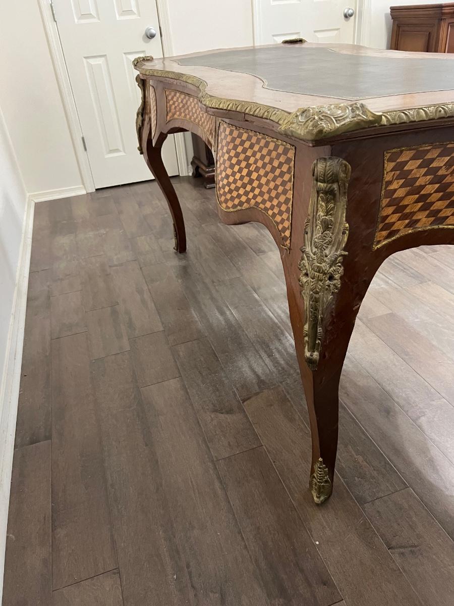 Vintage Oversized Inlaid Wood & Brass Writers Desk &  Chair *Read Details