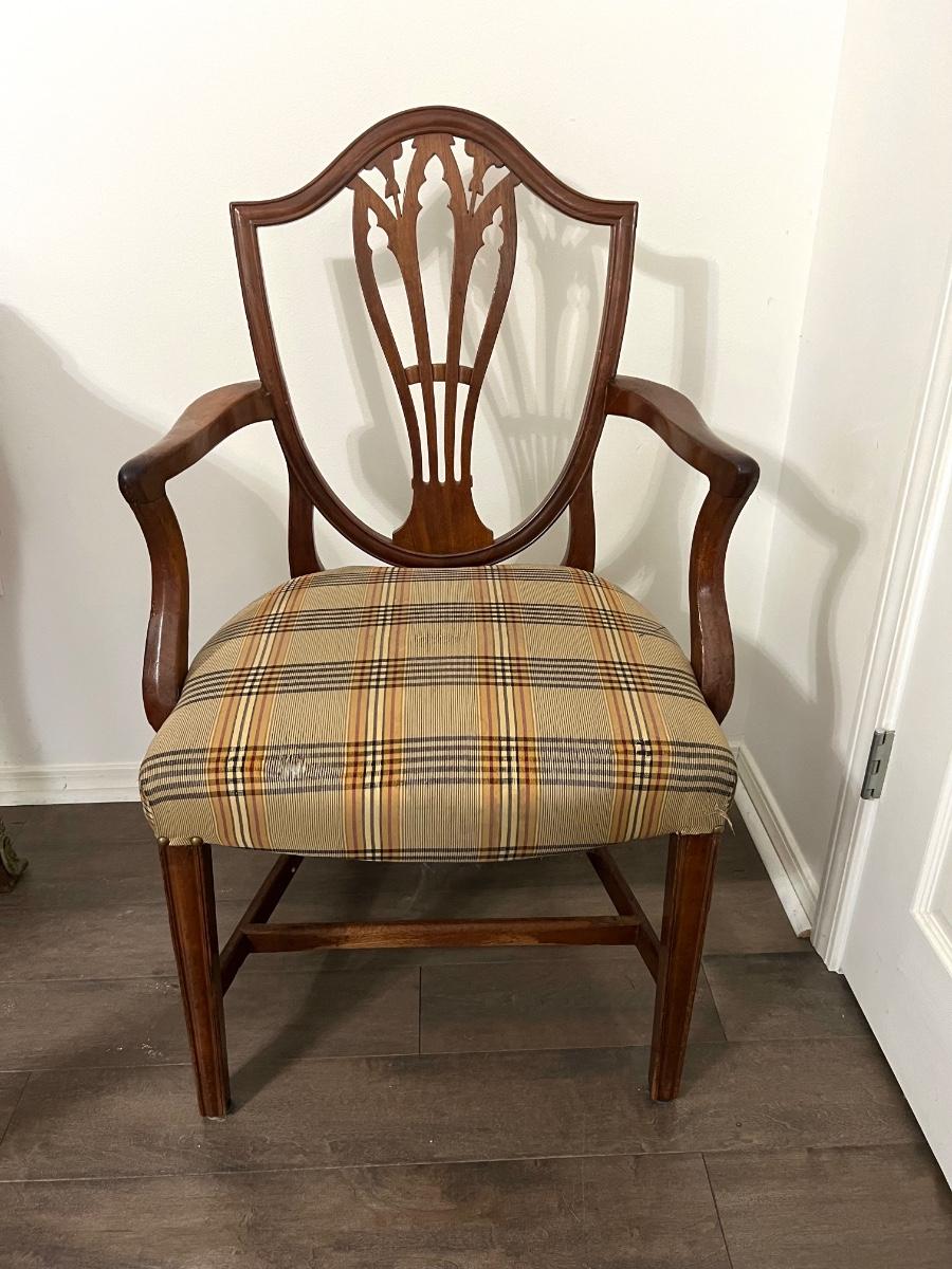 HEAVY, SOLID Wood & Brass Oversized Writers desk. You will need two strong people to load. Drawers work as they should. This middle drawer does lock. Measures 34 inches tall, 67 inches wide and 32 inches deep. Desk has some minor blemishes, see pictures. Chair seat does have some unraveling, See pictures.