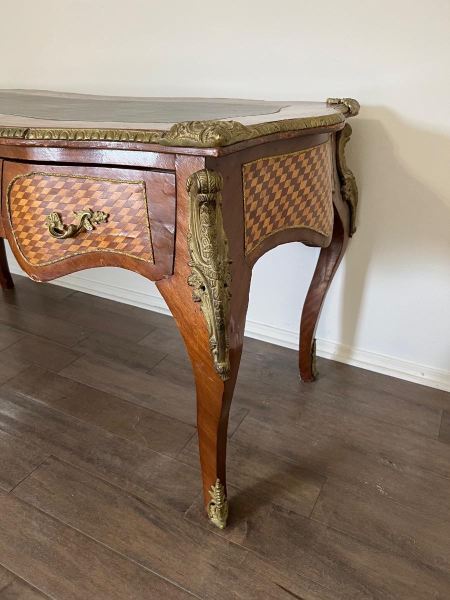 Vintage Oversized Inlaid Wood & Brass Writers Desk & Chair *Read Details