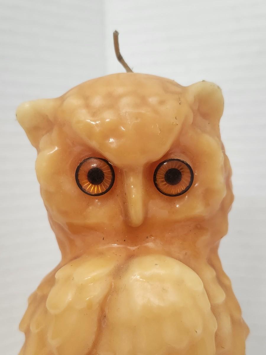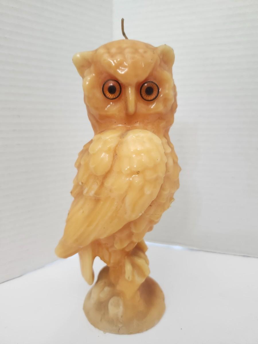 Vintage Owl Candle Molded Wax Figure with Glass Eyes Decorative Halloween Gothic Decor