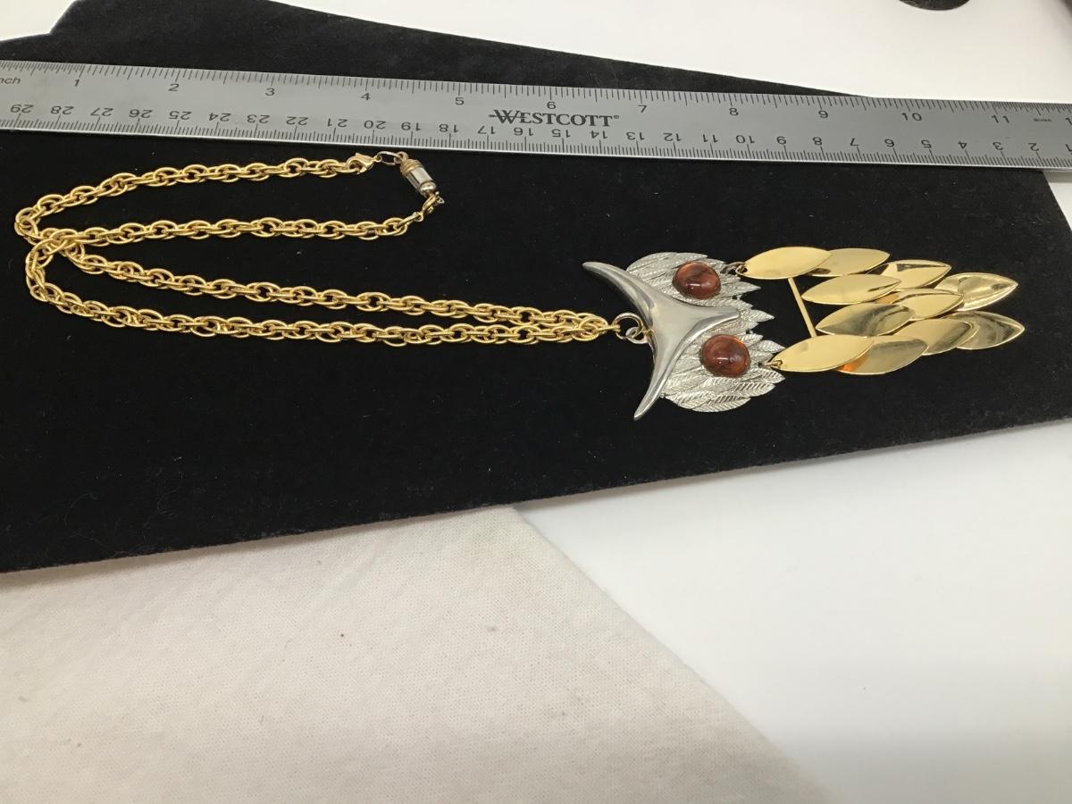 Vintage owl, necklace, gold, toned