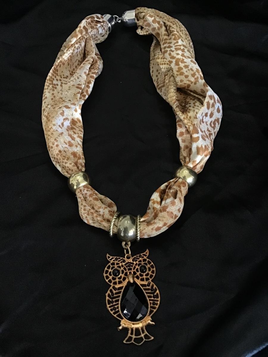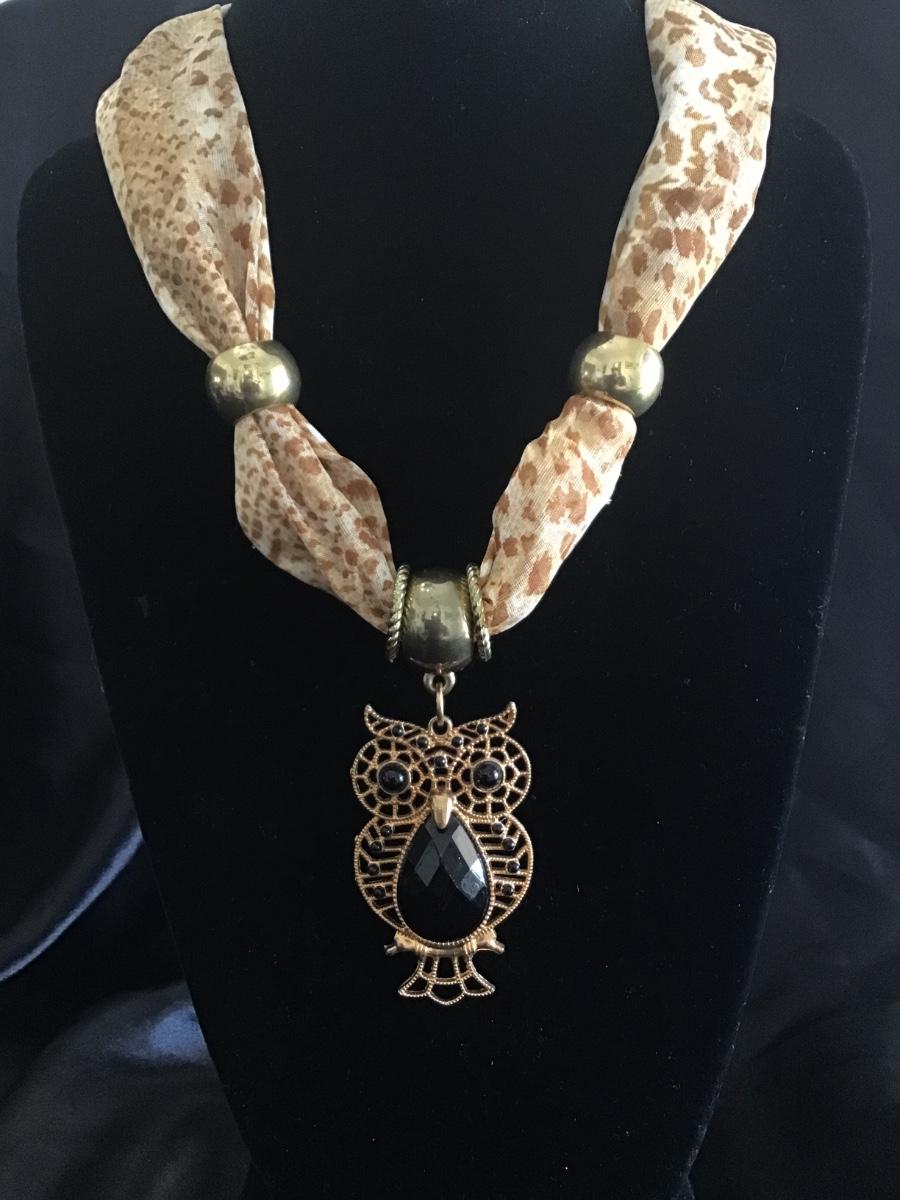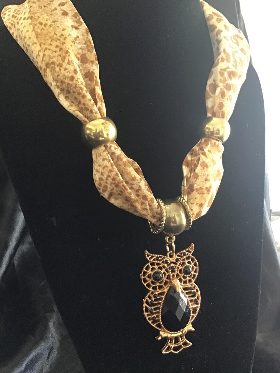 Vintage owl, scarf, like necklace