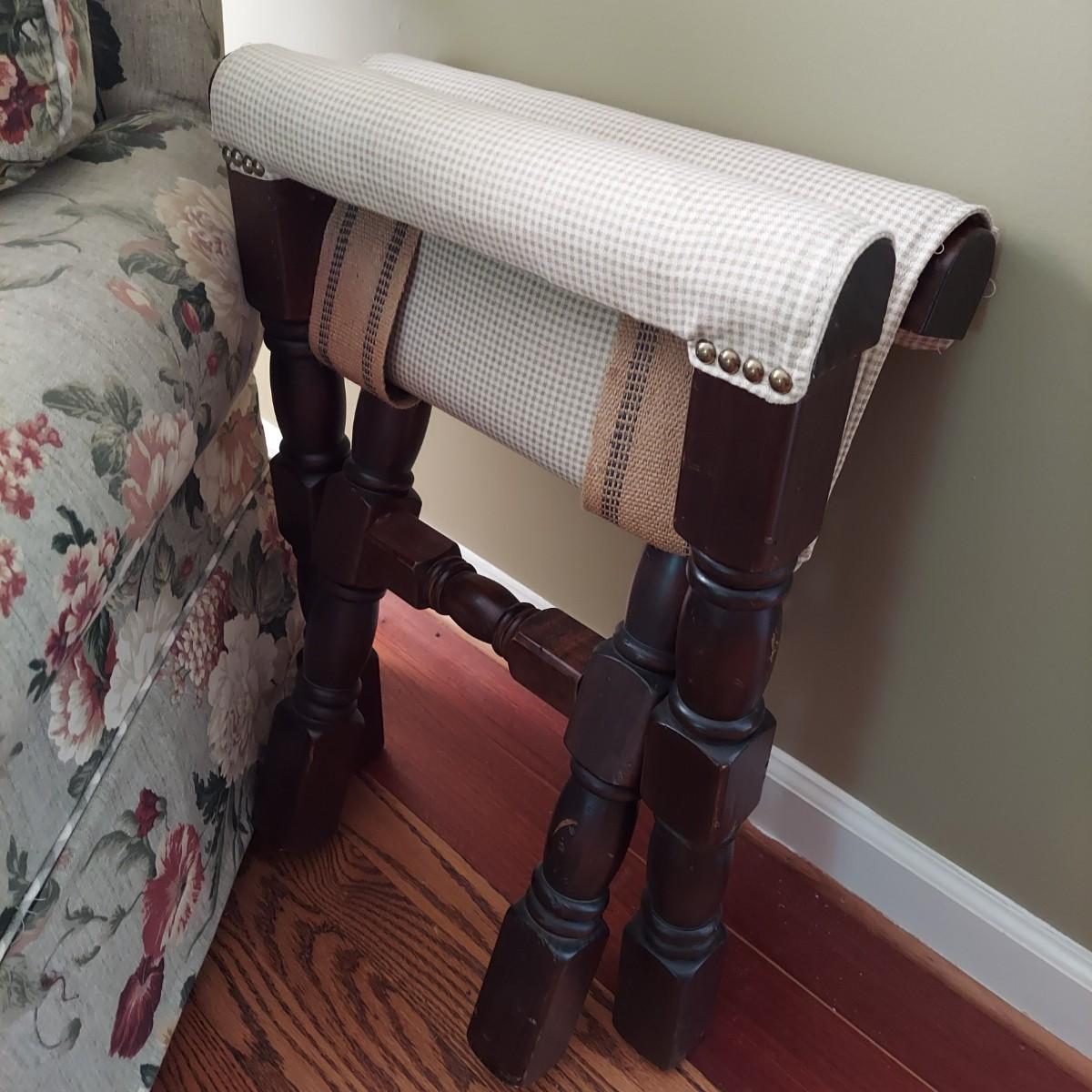 This vintage umbrella urn has a 3D owl and branch detail all the way around. The material appears to be a chalkware material. Lot also includes a wooden folding luggage stand that's 18" x 18" x 19"H. Local Pickup Only