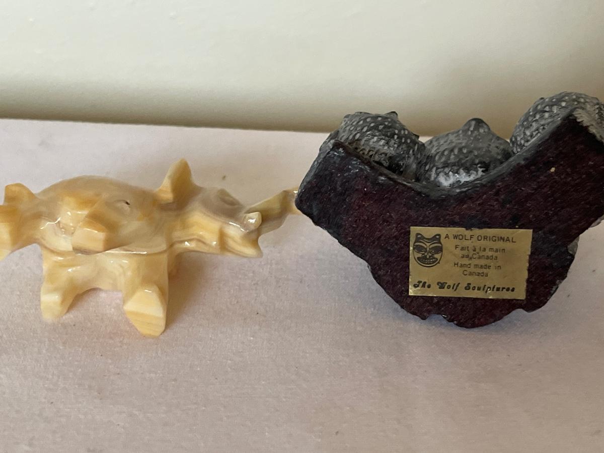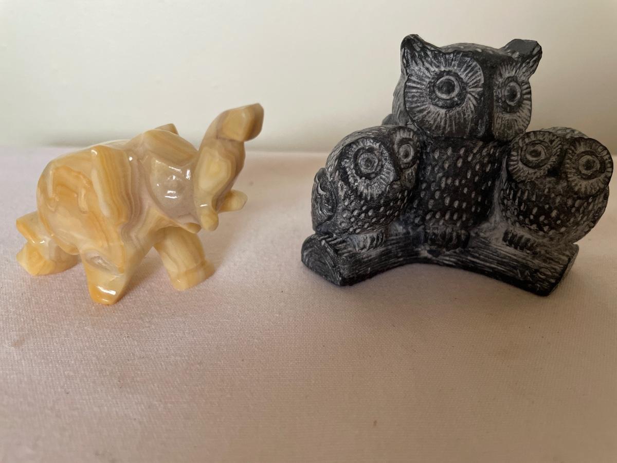 Vintage Owls on a branch by Wolf Sculptures & marble elephant