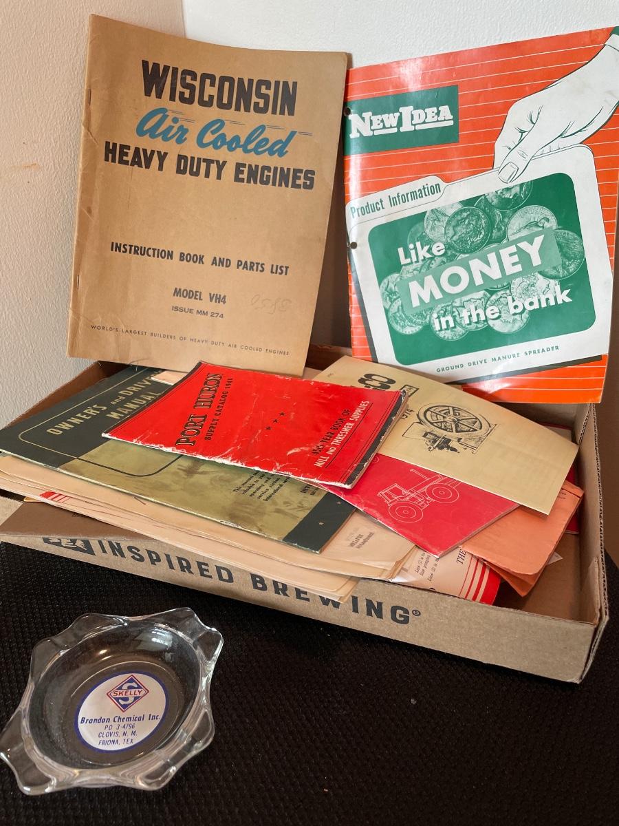 Vintage owners manuals and Skelly ashtray