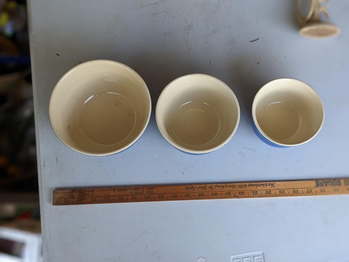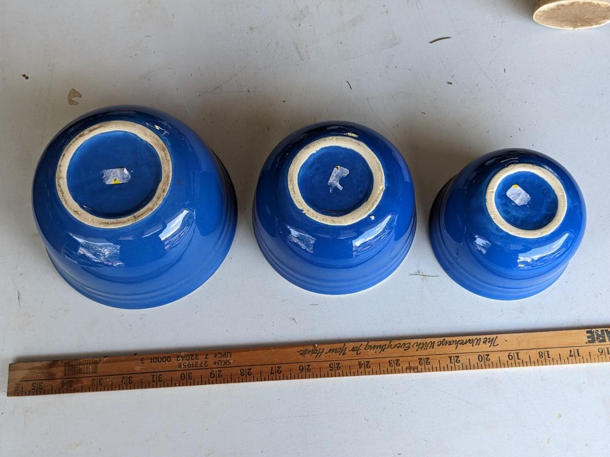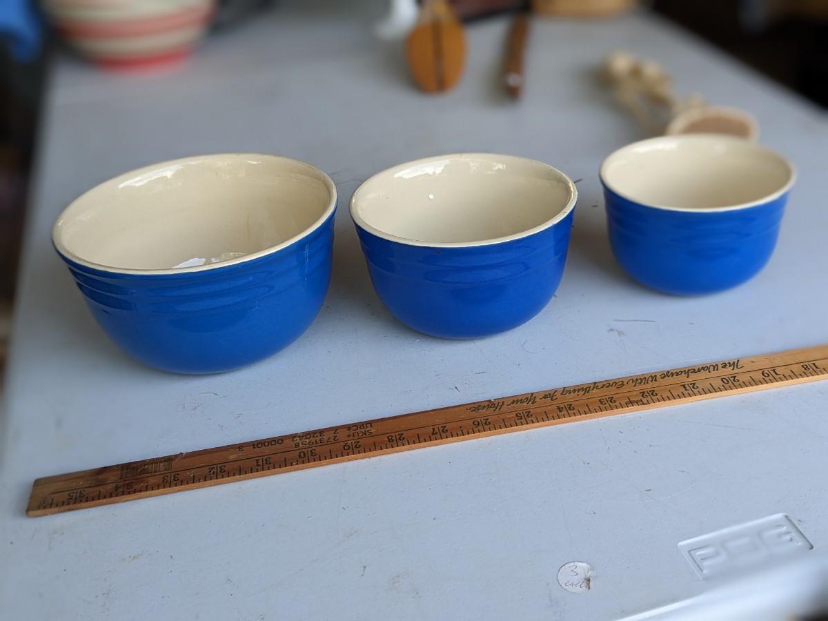 Vintage Oxford (?) Blue Stoneware 3 Bowl Set