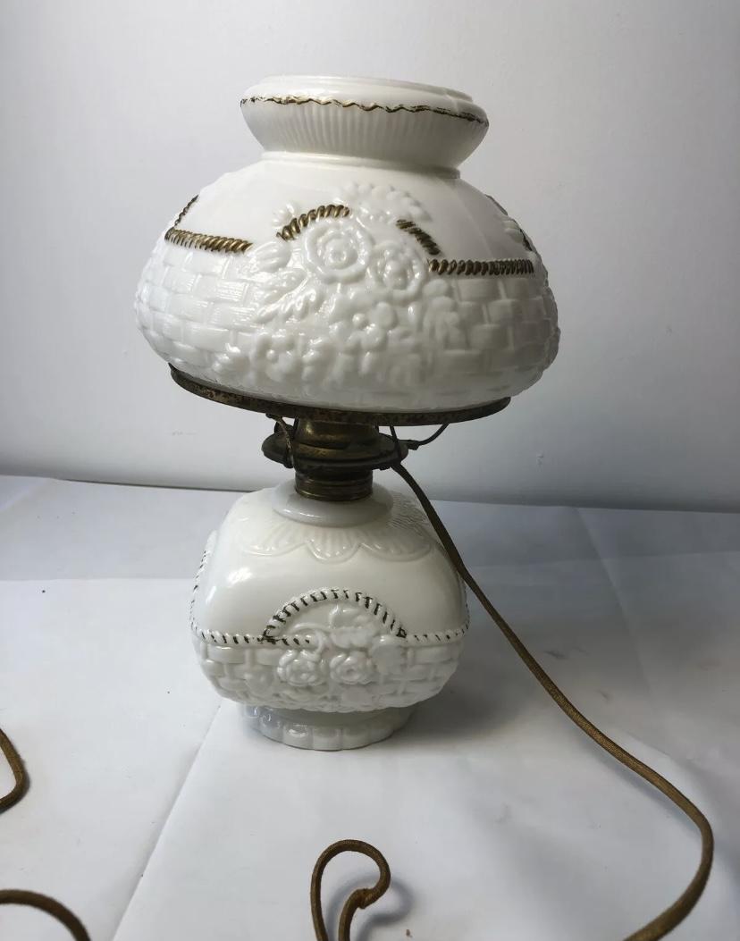 Vintage P & A Electrified GWTW Table Side Lamp Embossed Roses Basket Weave