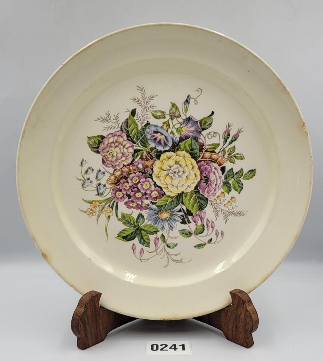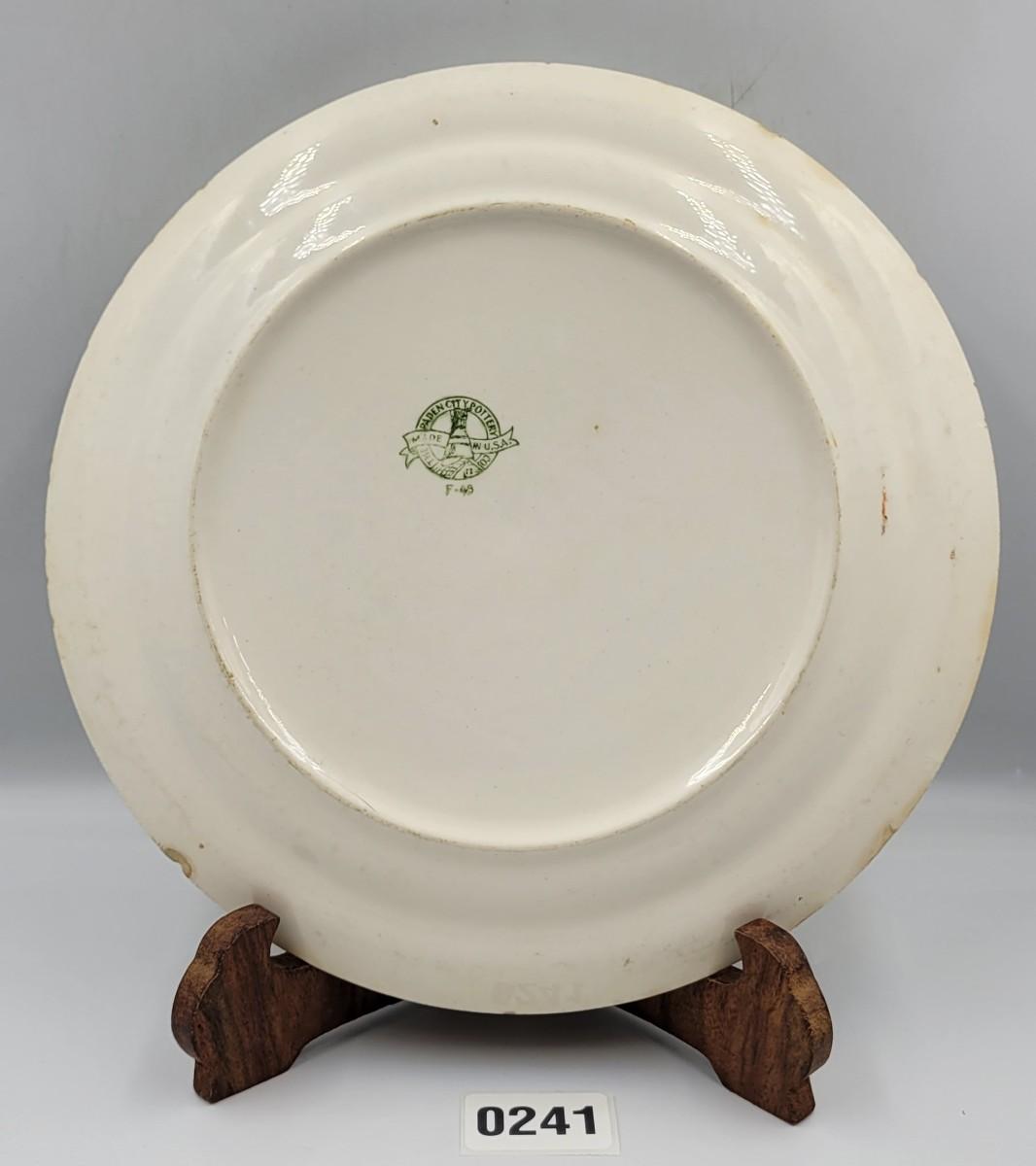 Vintage item that does have a couple of small (old) chips on the rim. These are seen where the darker discolorations are located on the outer aspect of the plate rim.