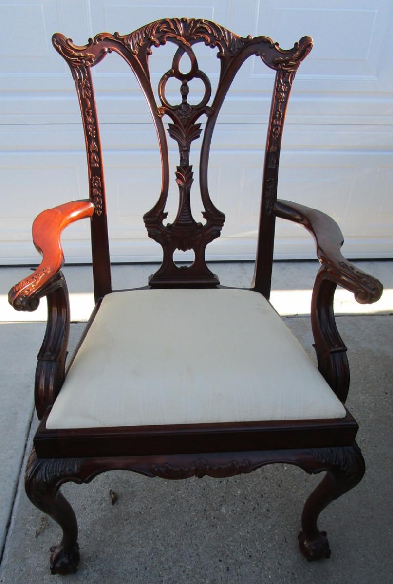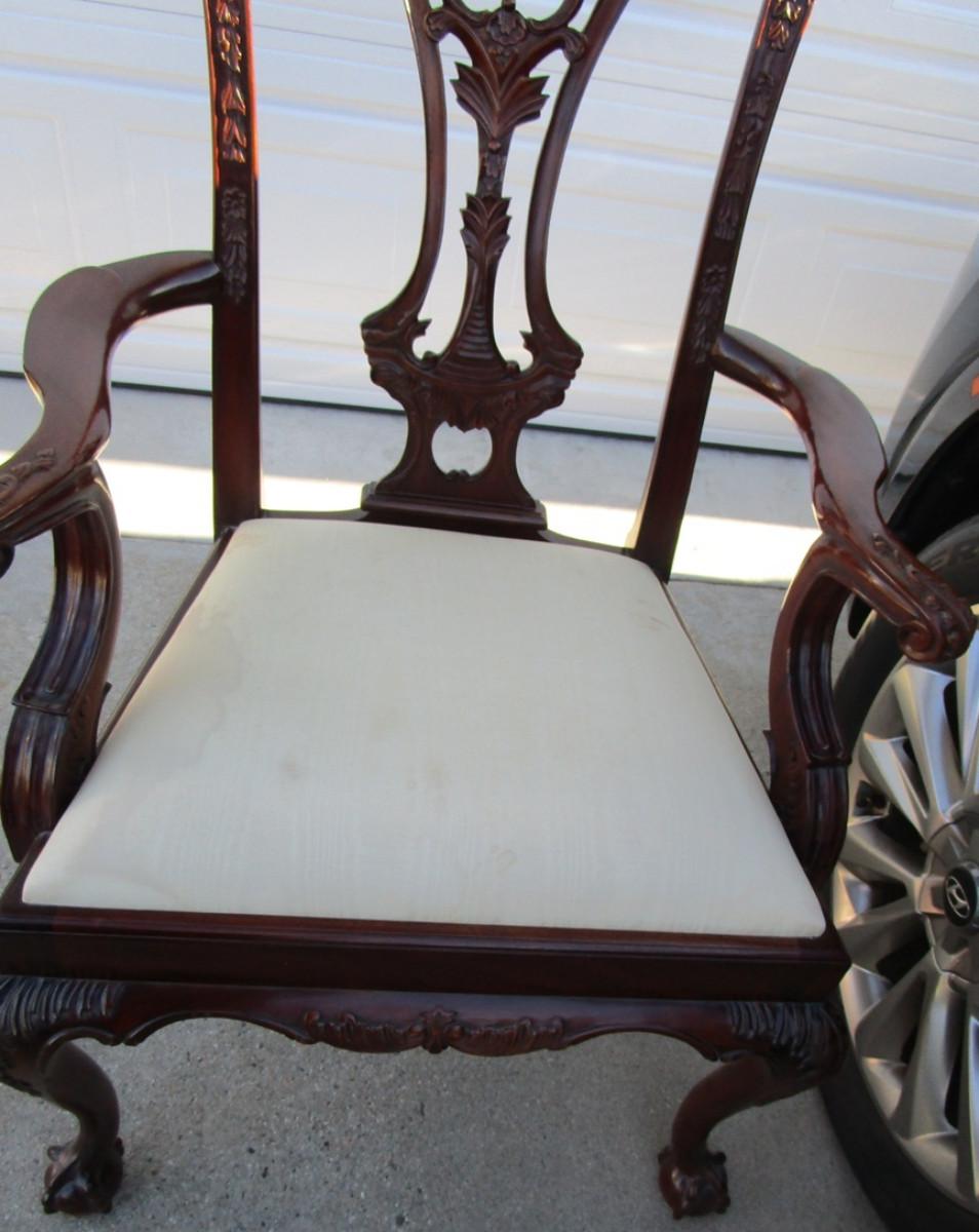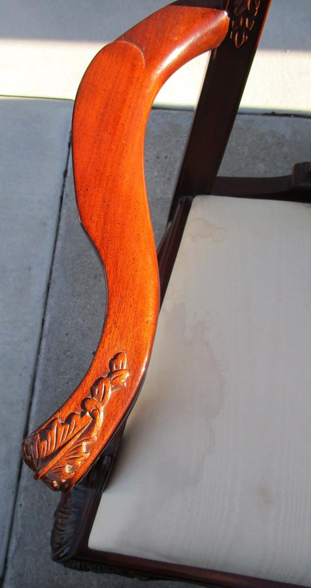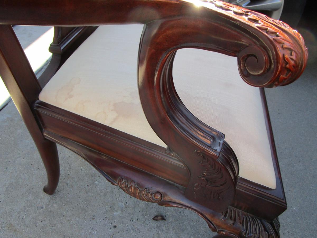 Vintage padded, carved wood captain's chair, needs upholstering