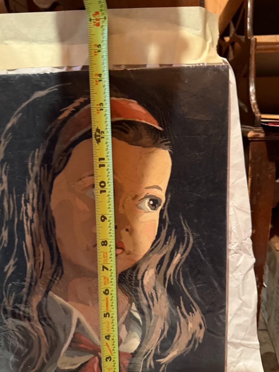 Vintage Paint By Number on Black Velvet Portrait of a Girl