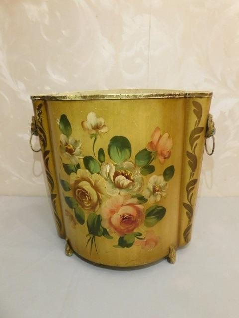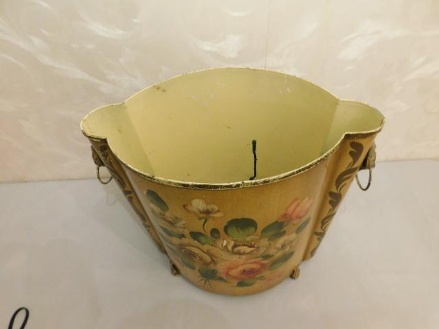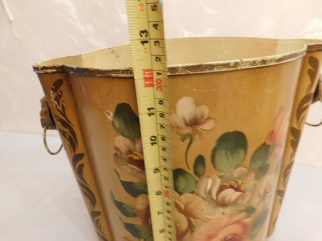 Vintage Painted Art Deco Metal Waste Bin 12"