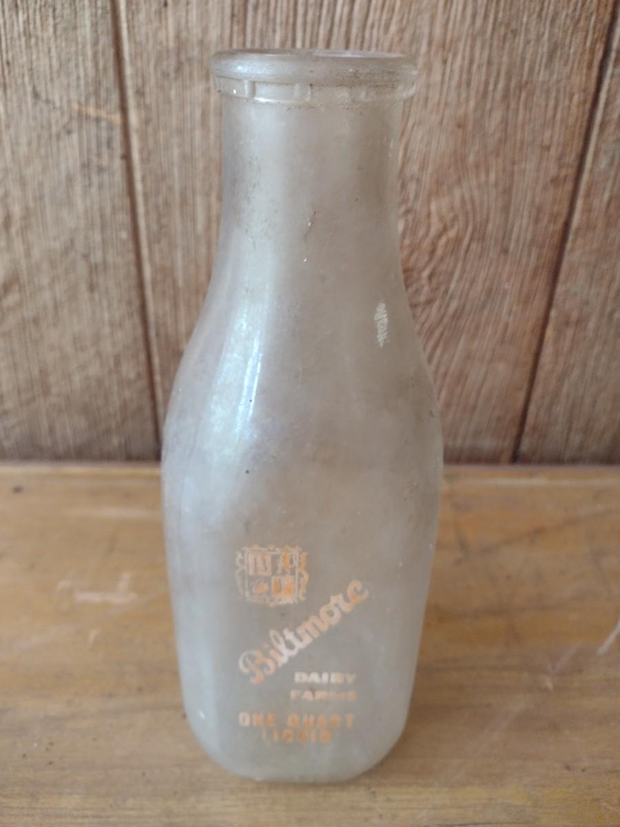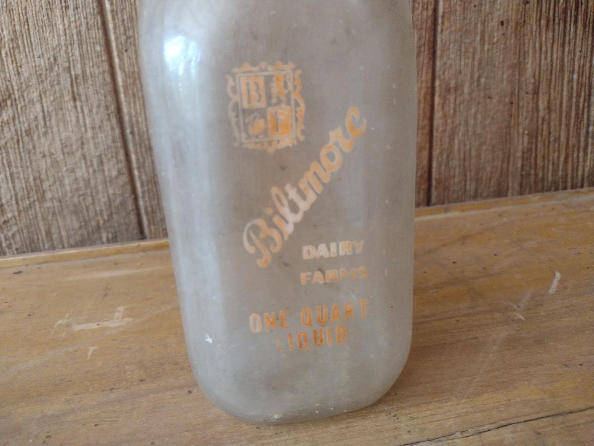 Vintage Painted Biltmore Dairy Farms Quart Sized Glass Milk Bottle (#12)