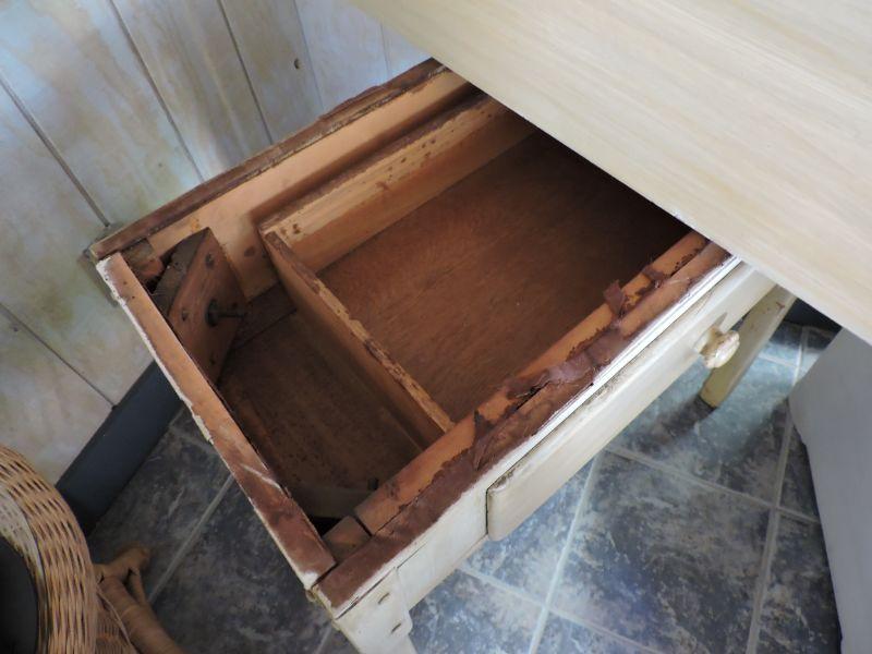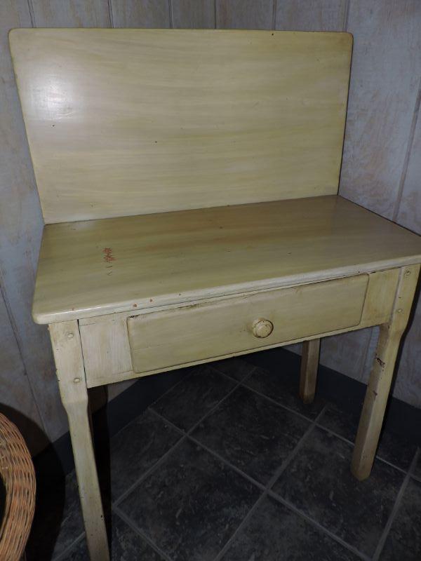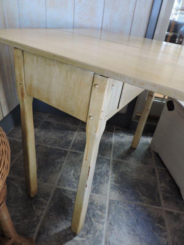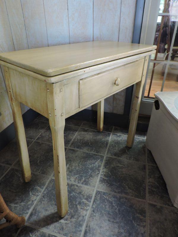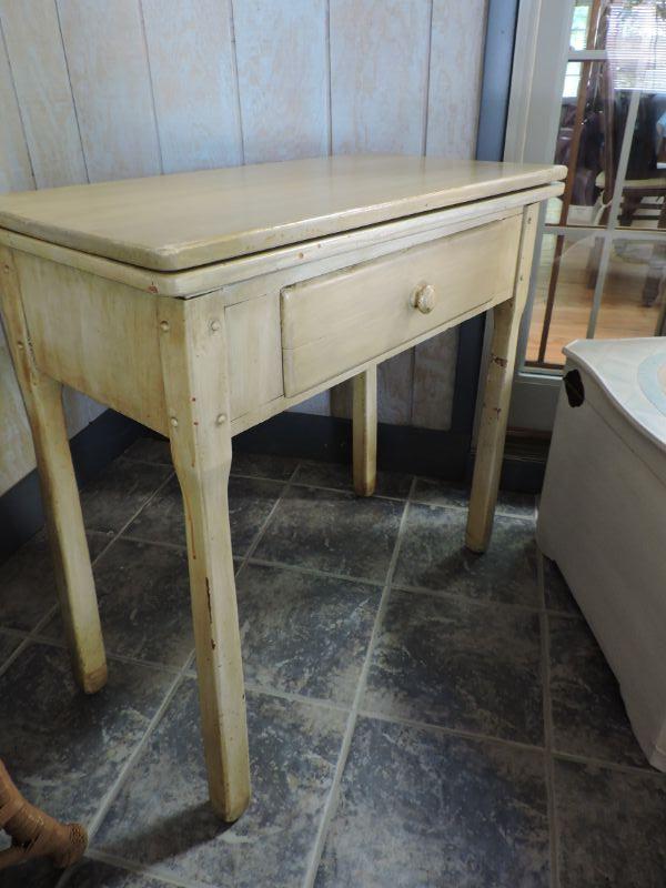 Vintage Painted Fold Over Card Table with Drawer **Please read Terms and Conditions before placing a bid. Pick up is Sunday, September 15, 2019 from 11am to 4pm and Tuesday, September 17 from 4pm-7pm in Sicklerville. All sales are final. All sales are as is, where is. Please review all photos. Any props included in photos are not included in listing. All measurements are approximate.