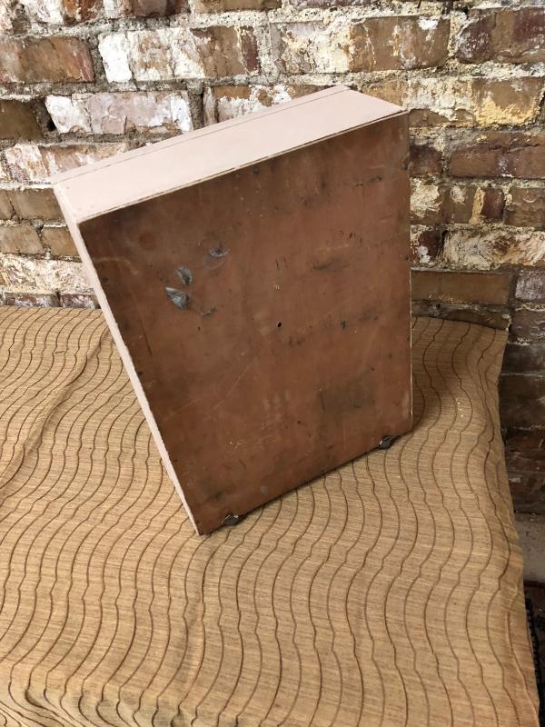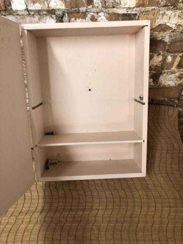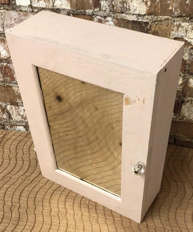 Cabinet measures 12"x16"x5" painted pink, glass knob.
