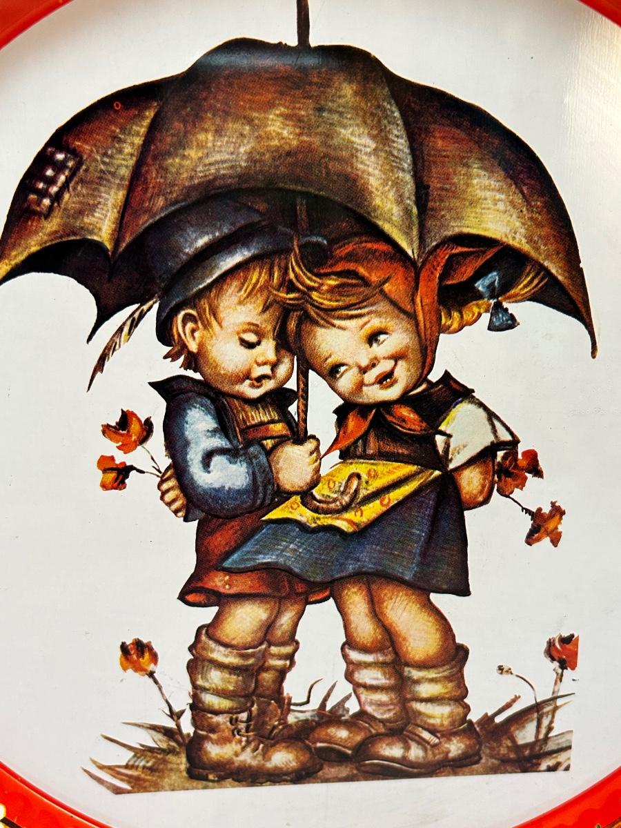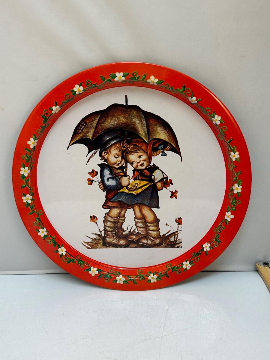 Vintage Painted Metal Serving Tray Hummel Like Design Giftco Hong Kong