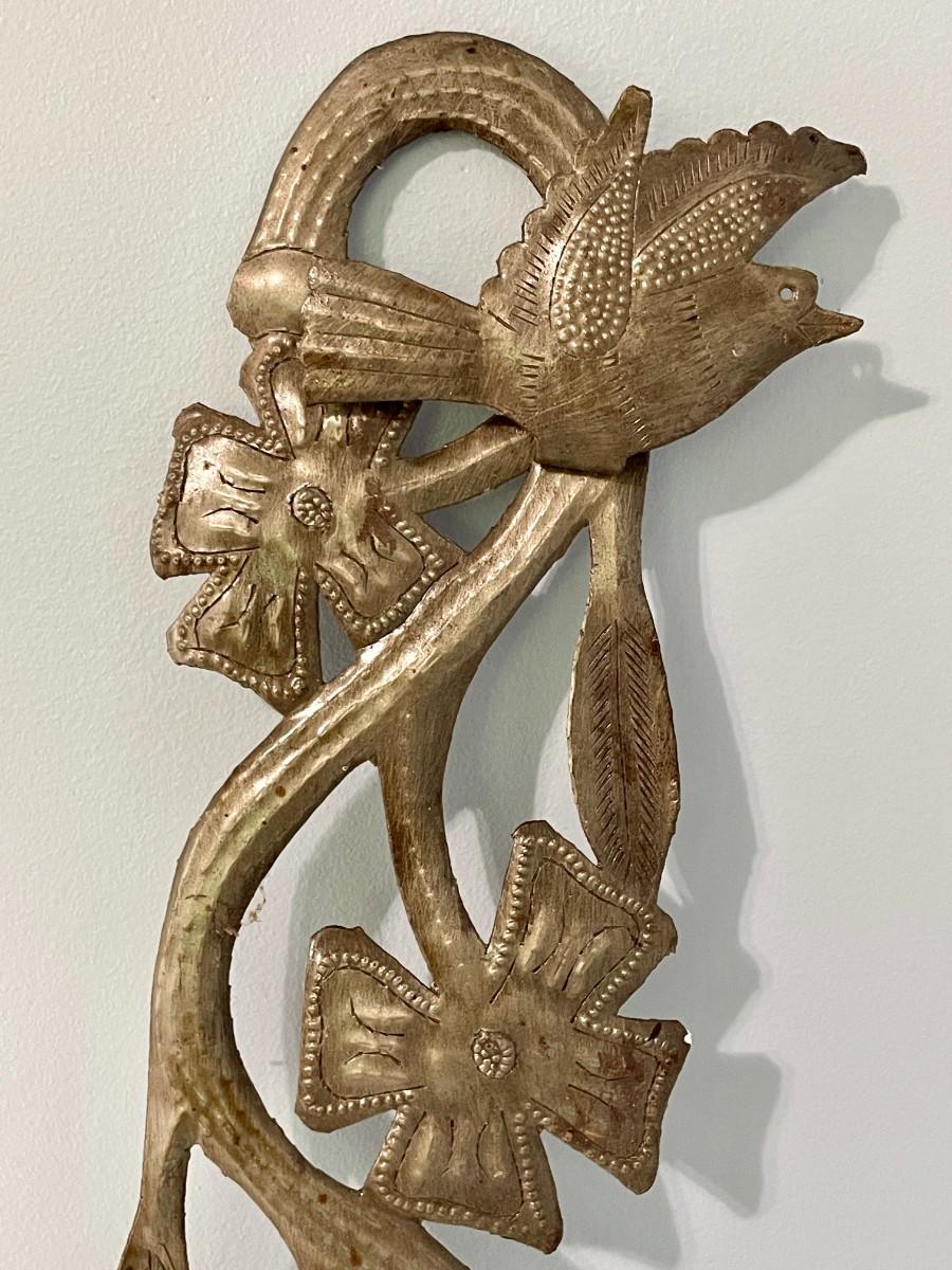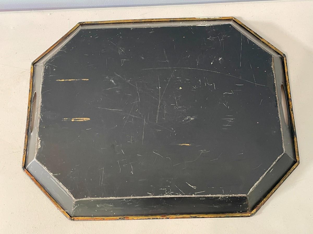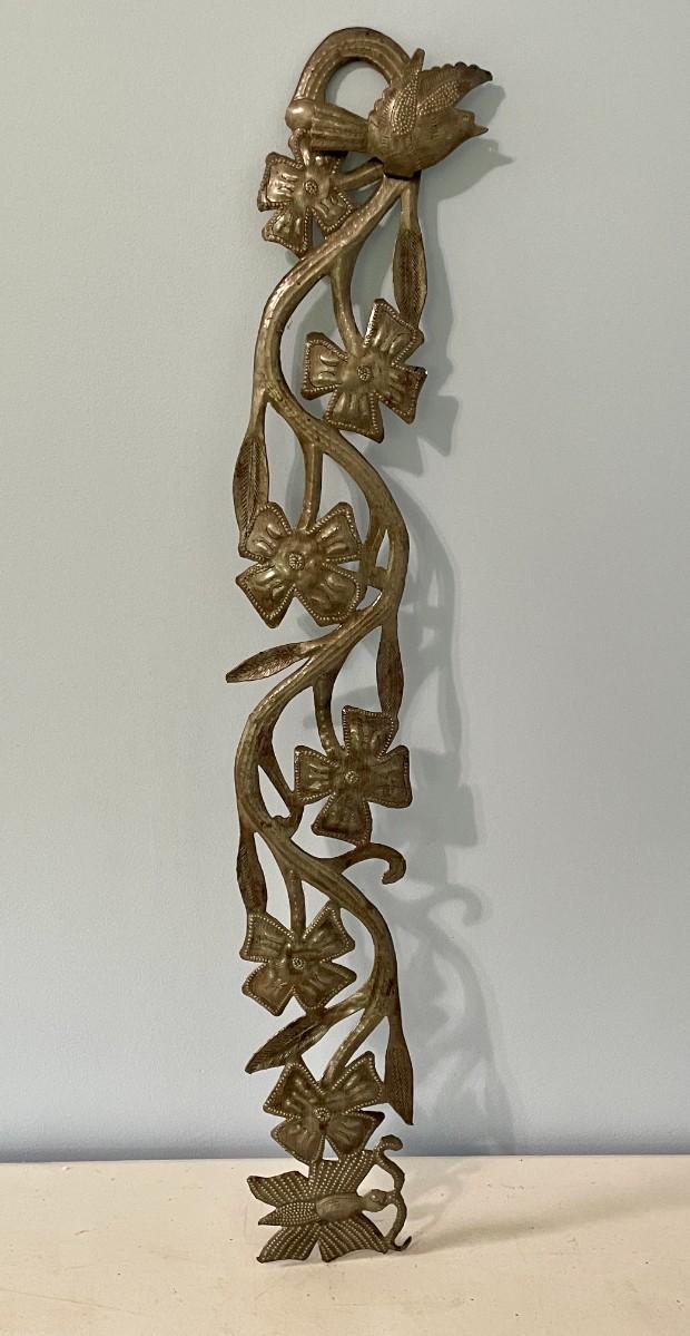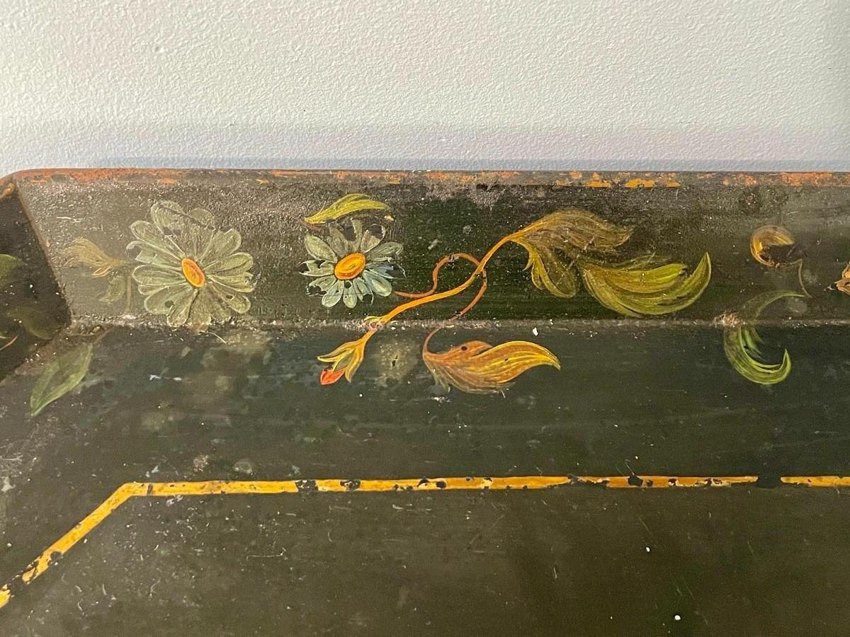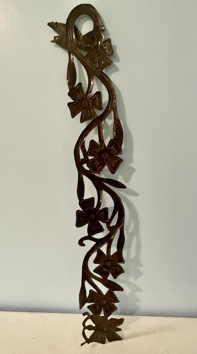Vintage painted metal toile tray + punched metal wall hanging