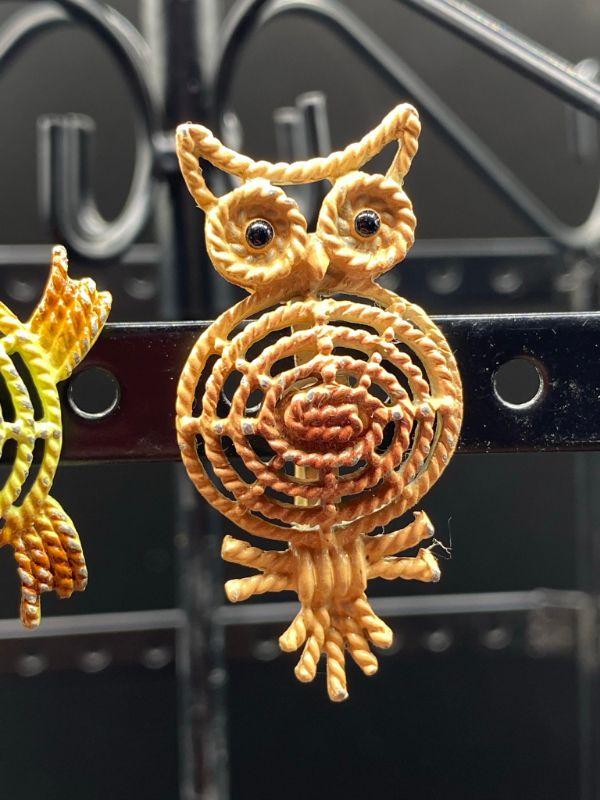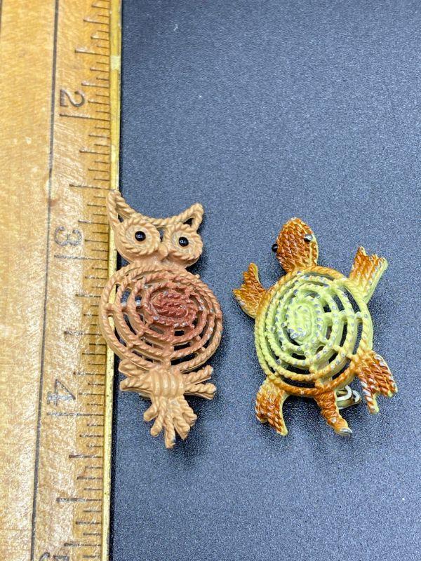 Vintage Painted Metal Turtle and Owl Pins from Mamselle