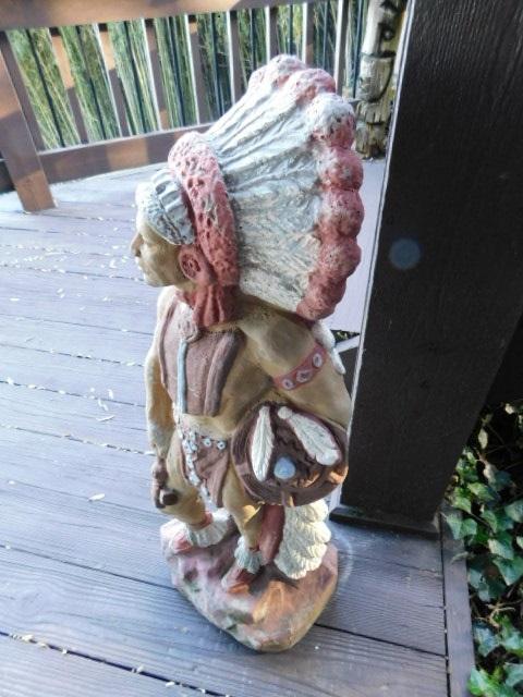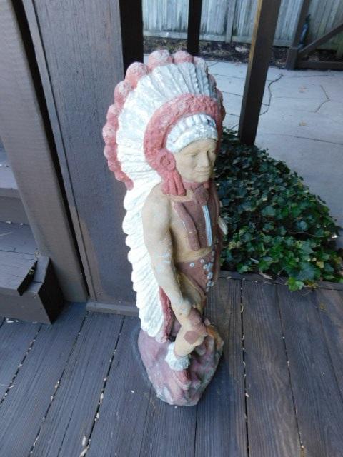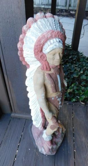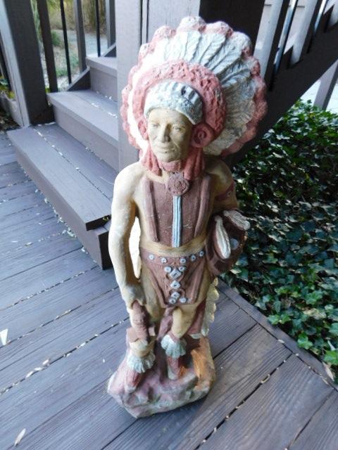Vintage Painted Native American Concrete Statue 34"x12" in good condition. Intact with little to no weathering or staining. Very nice piece.