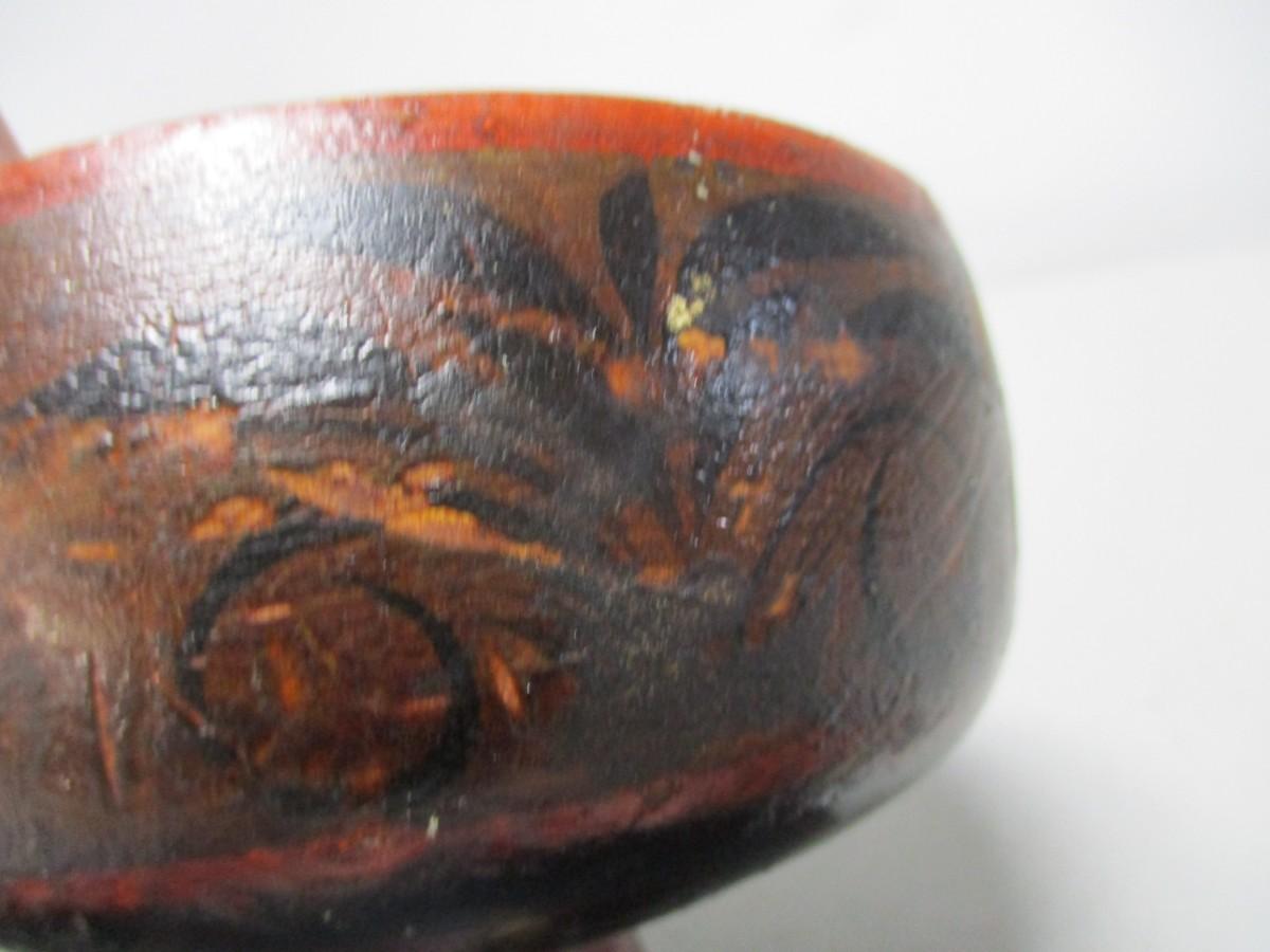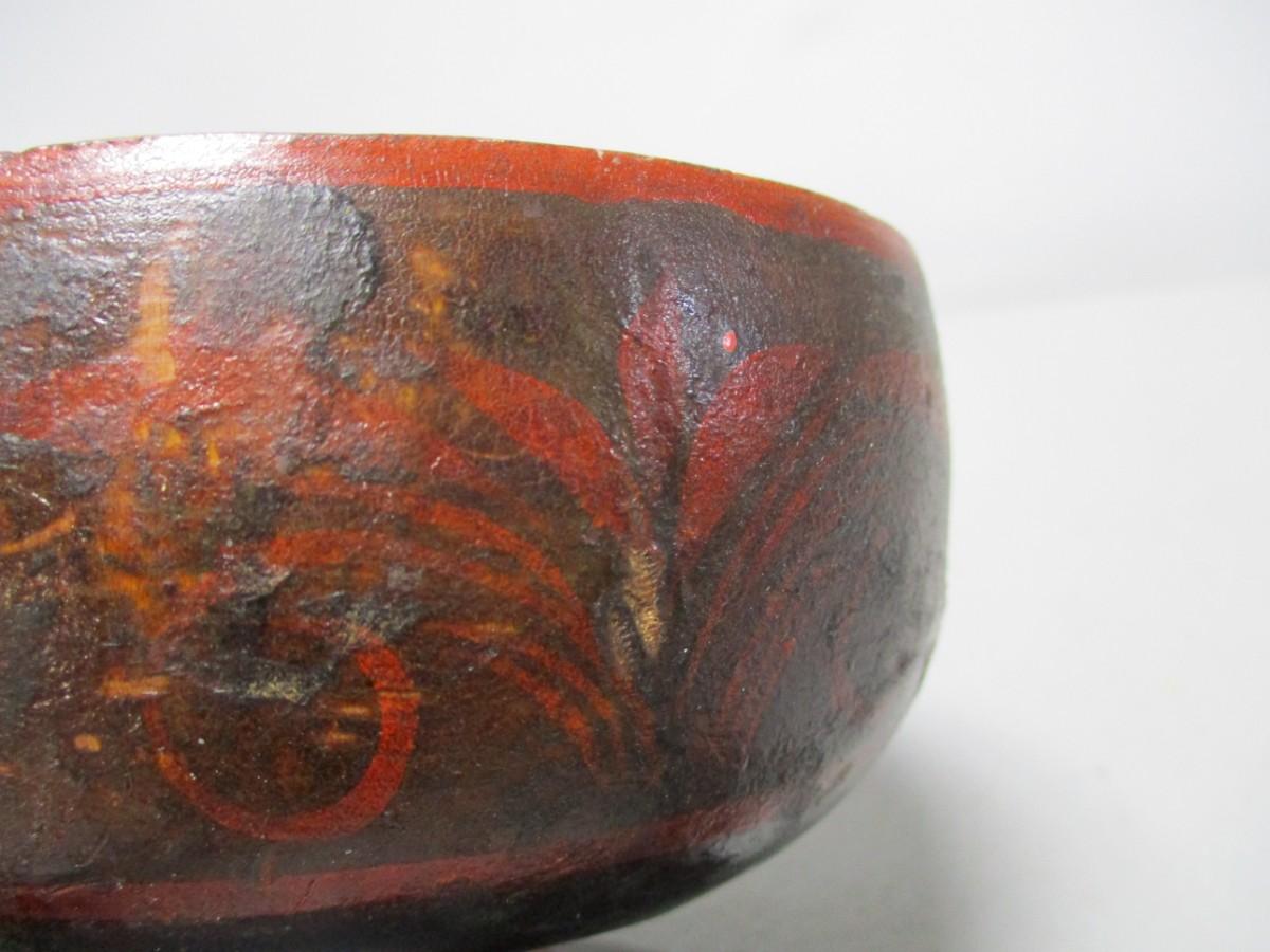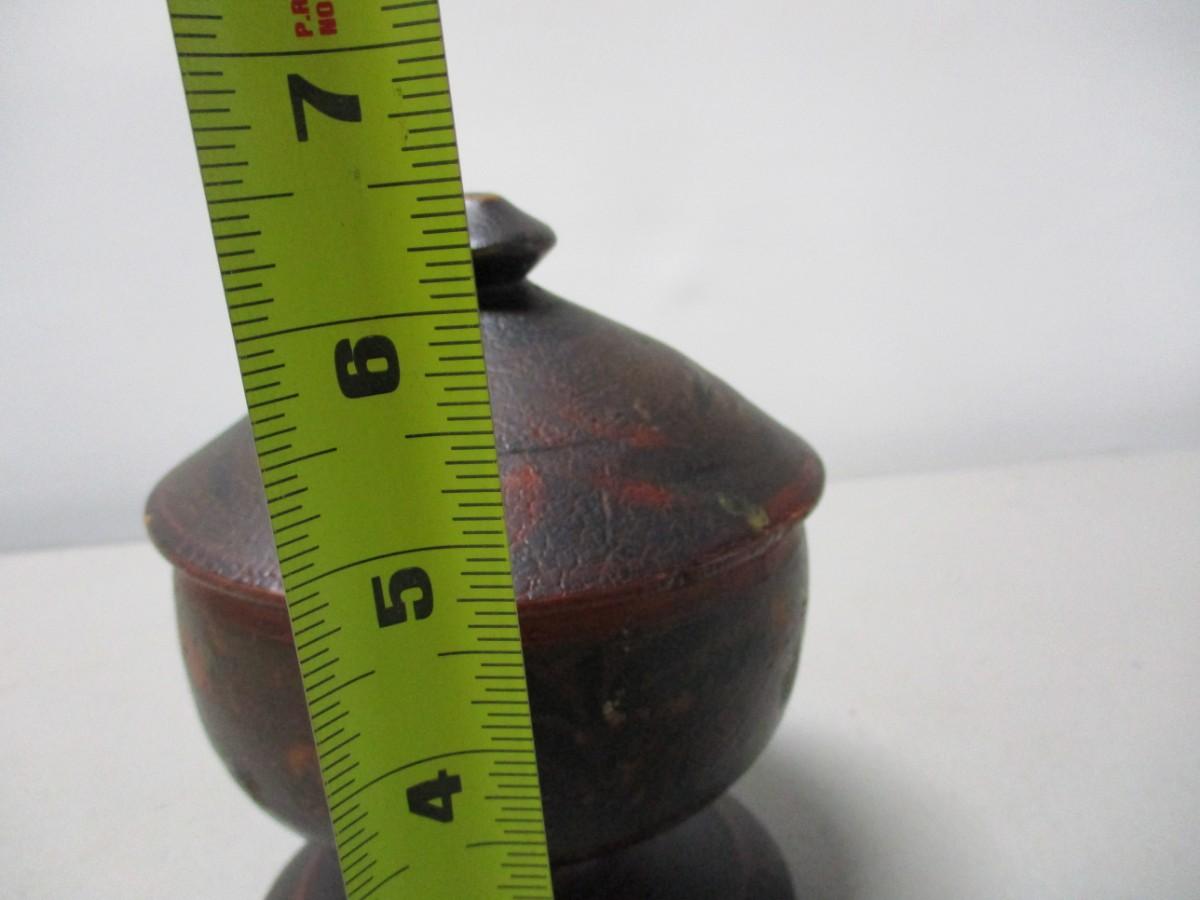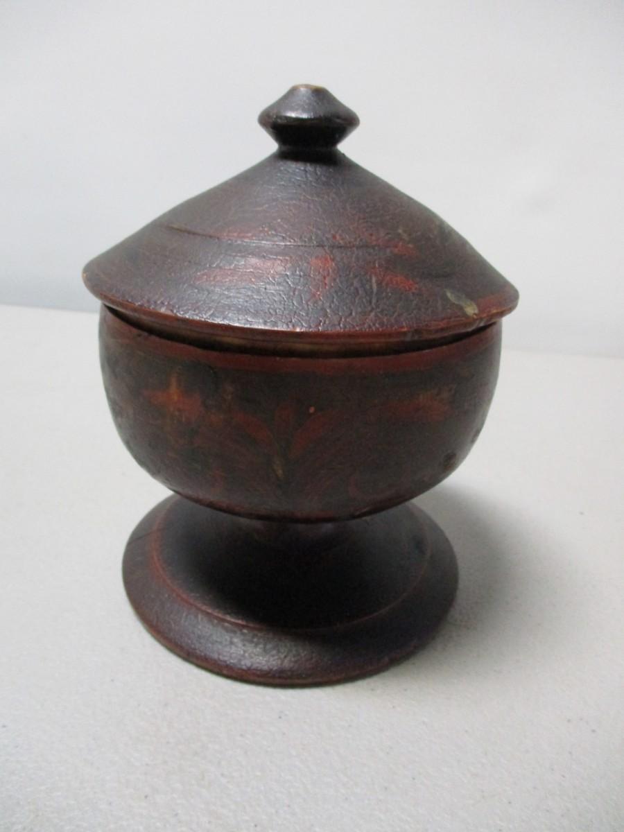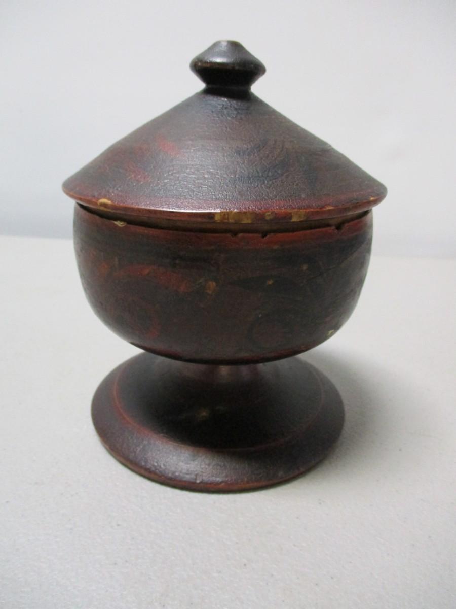Antique 1800s Painted Turned Wooden Treen Master Salt -Polychrome Paint