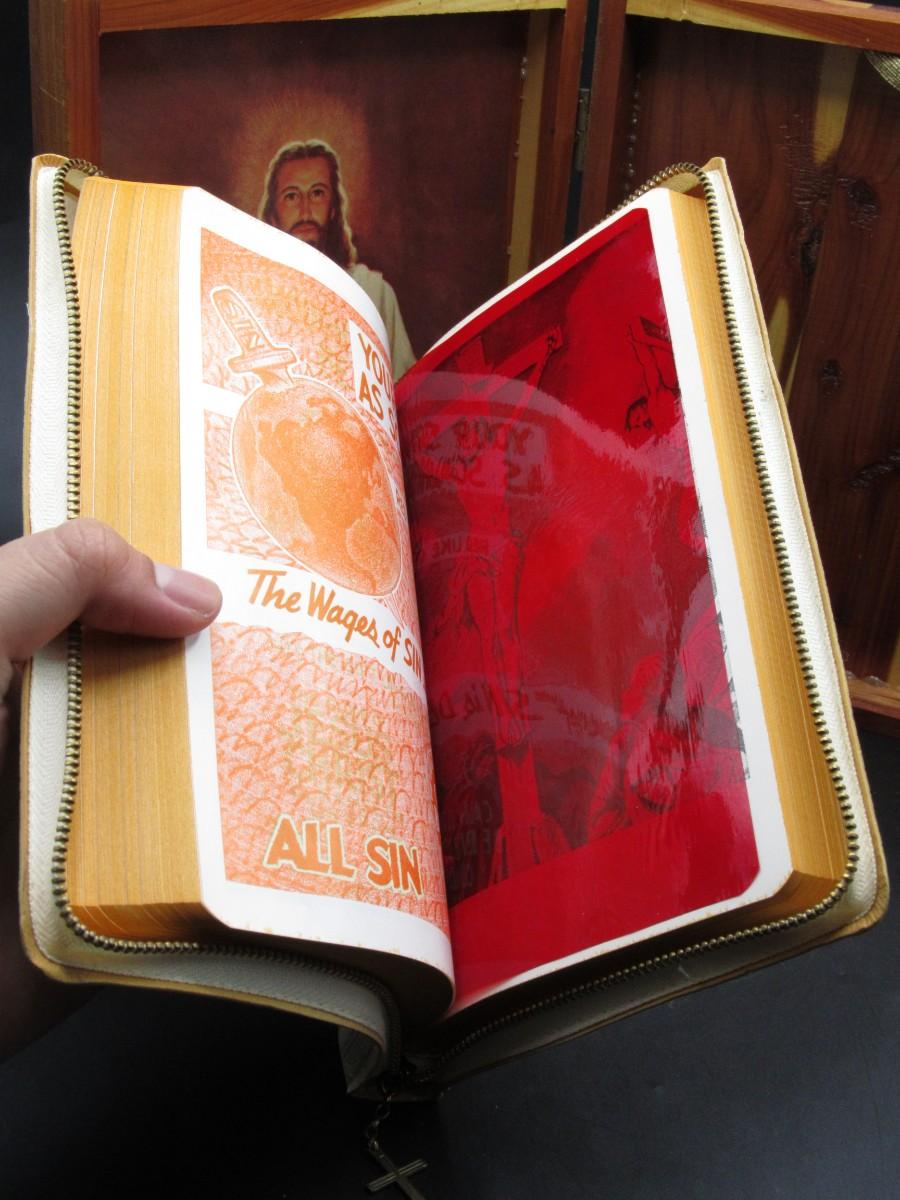 There is no damage to the bible and has not been used. Overall in good collectible condition. Check pictures for more details.