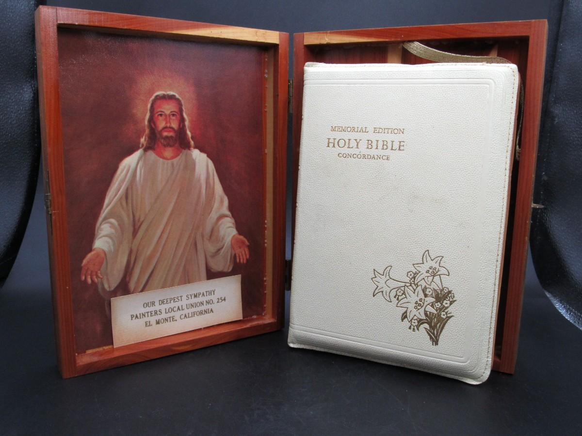 Vintage Memorial Edition Bible Presented in Cedar Box with Original Personal Inserts