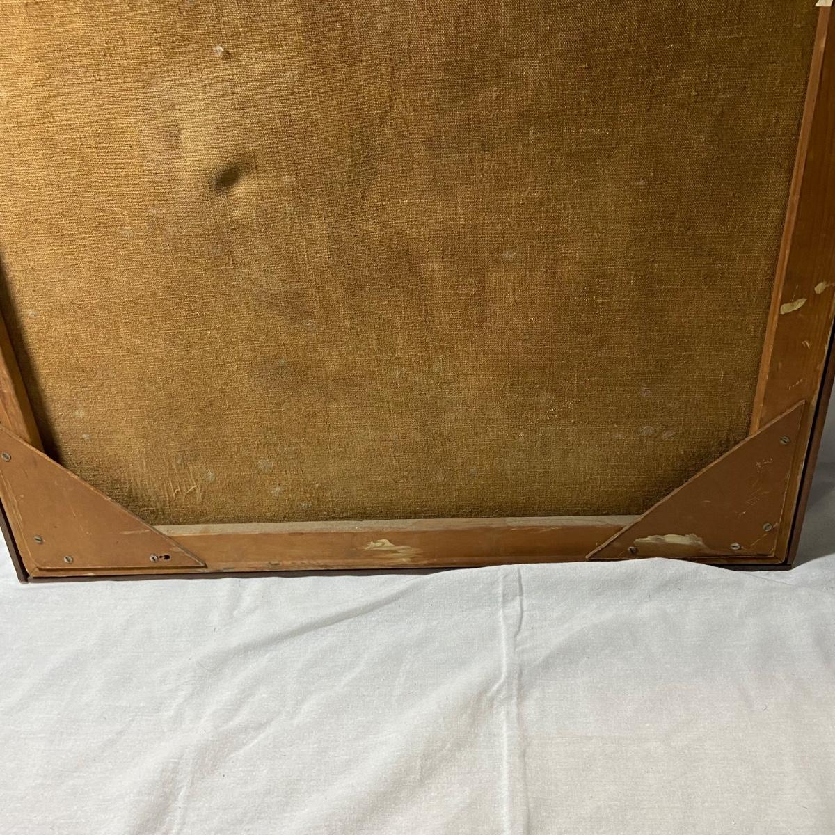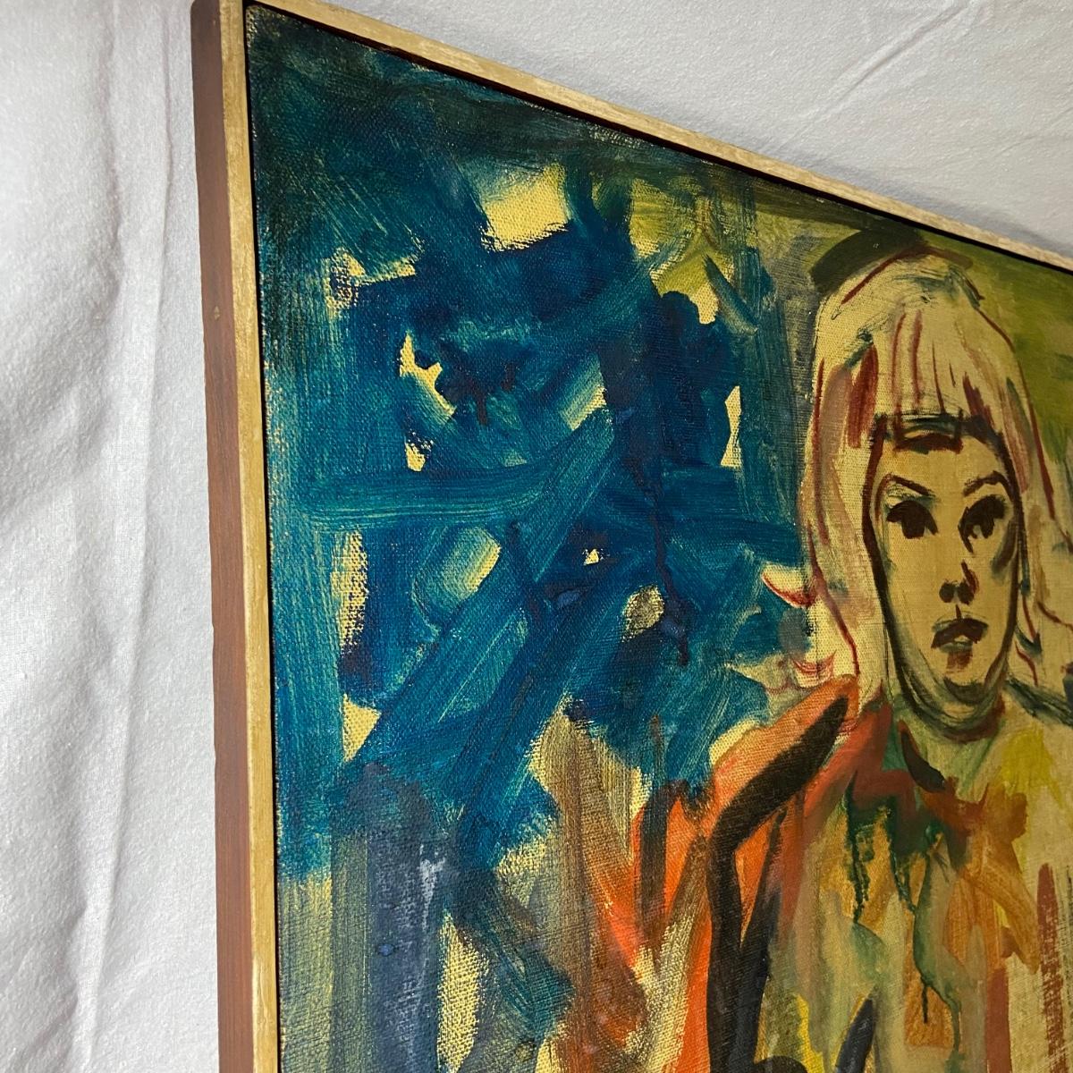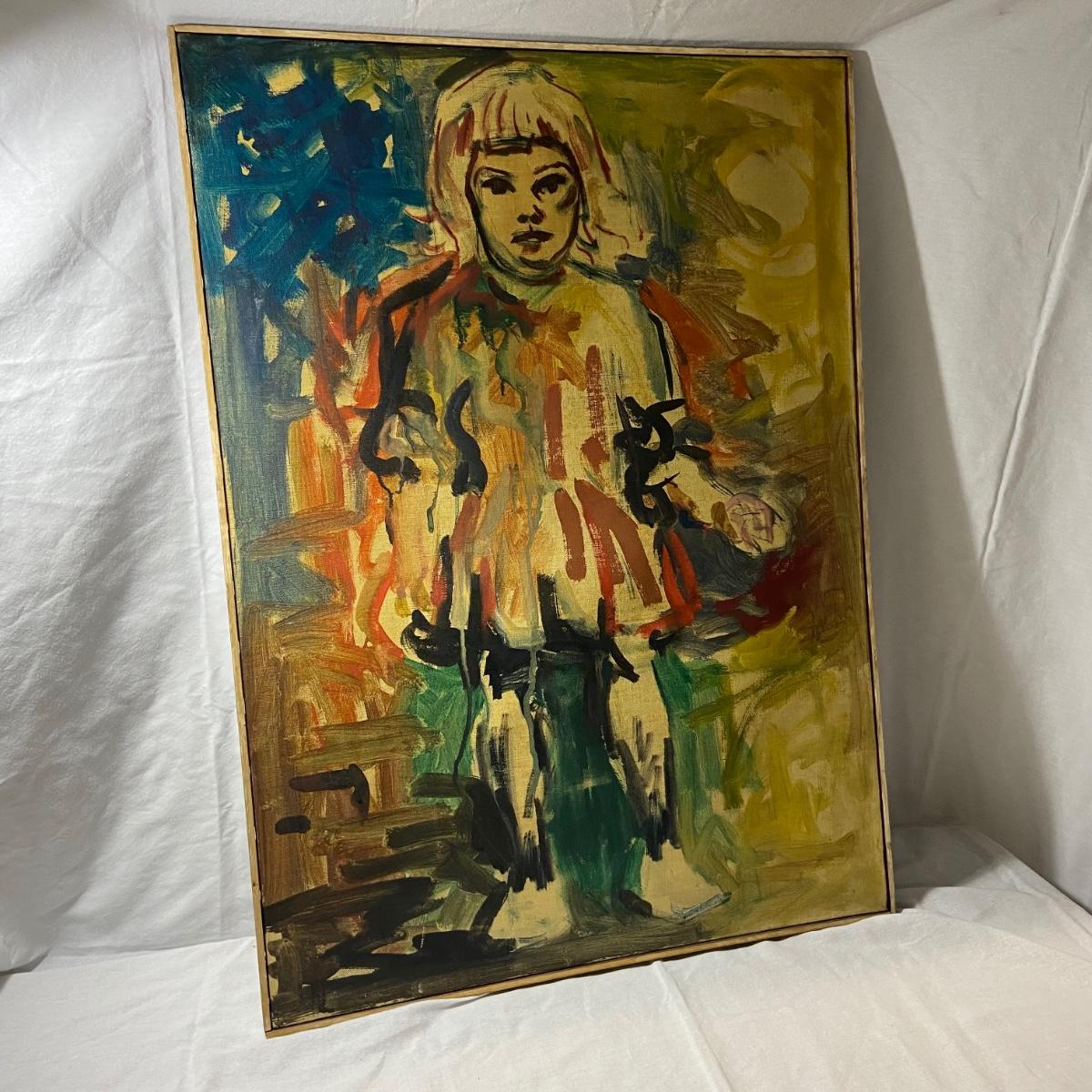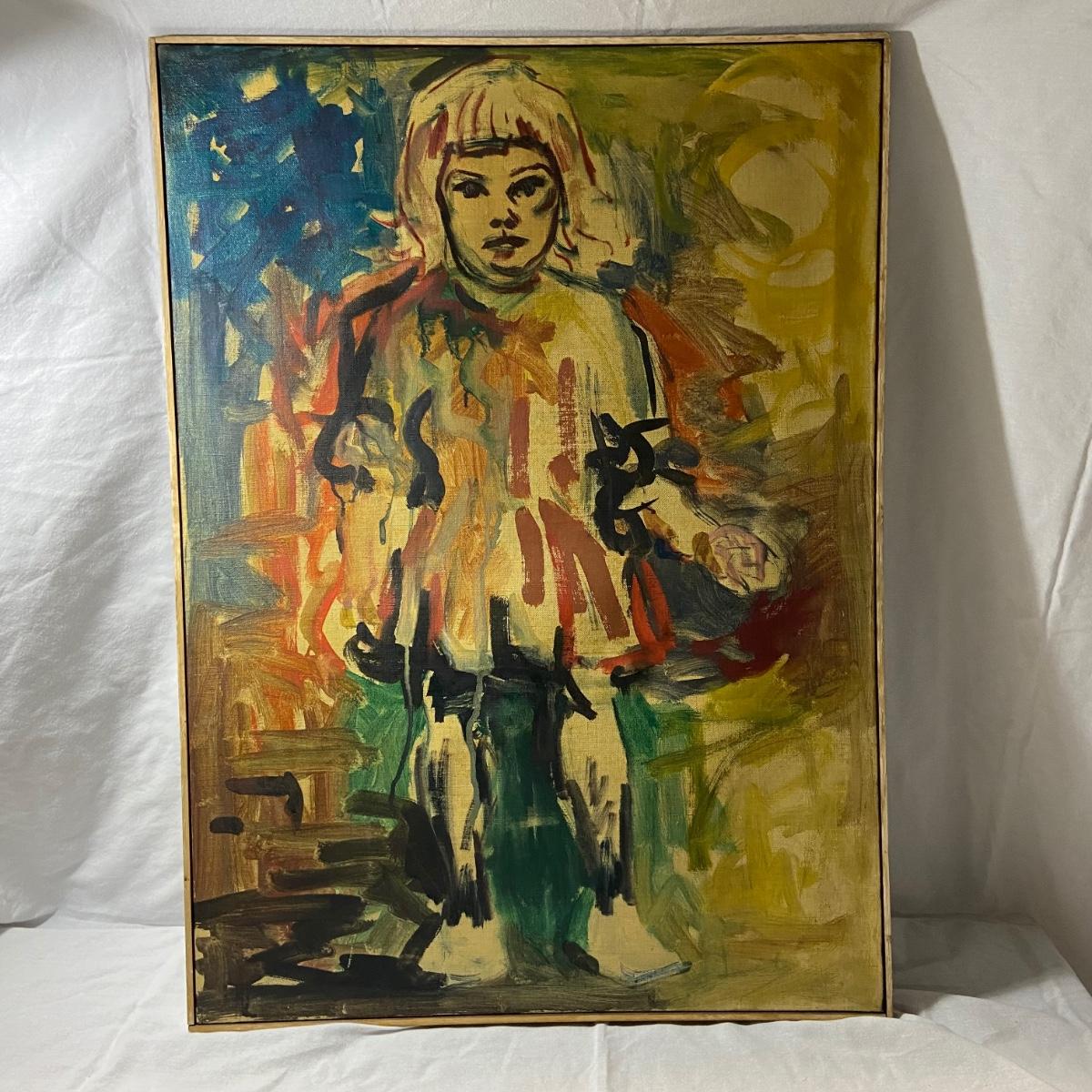 This rustic painting of a little girl does appear to be an original in a Expressionist style, however there is no signature or date on it. The piece measure 26.5” x 37”. The painting is on what appears to be natural or unbleached canvas and sits in a ‘rough’ wooden frame. There is hardware on the back to hang it. Shipping available. Shipping can be costly. We suggest contacting our preferred local shipping provider, Postage Express, with dimensions and getting an estimate before bidding: (828) 255-9250 or shipping@postageexpressnc.com.
