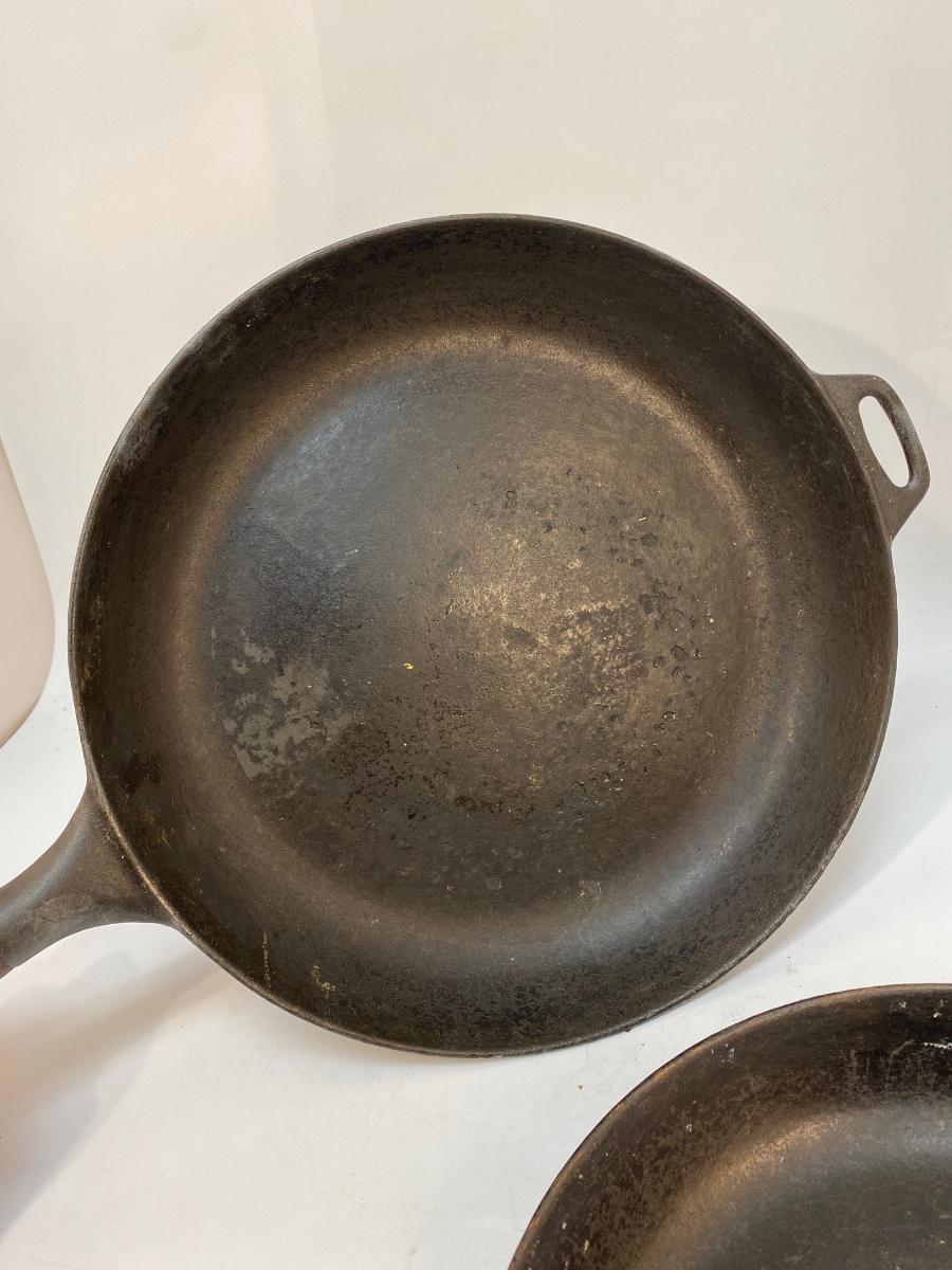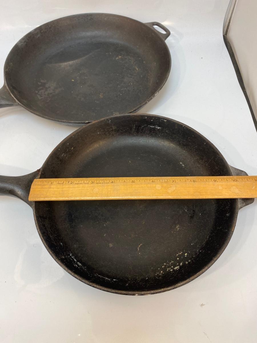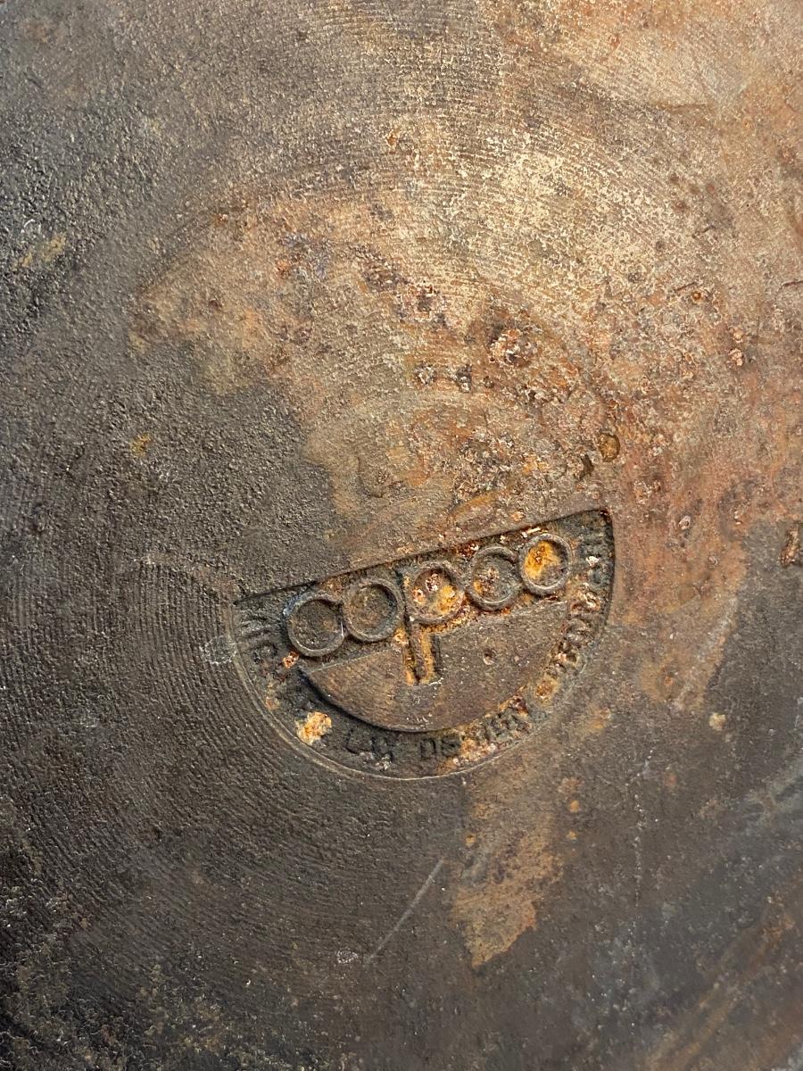 Vintage Pair COPCO Wood Handled Cast Iron Frying Pan Skillets 10" 12". In good vintage used condition. Minimal signs of age.